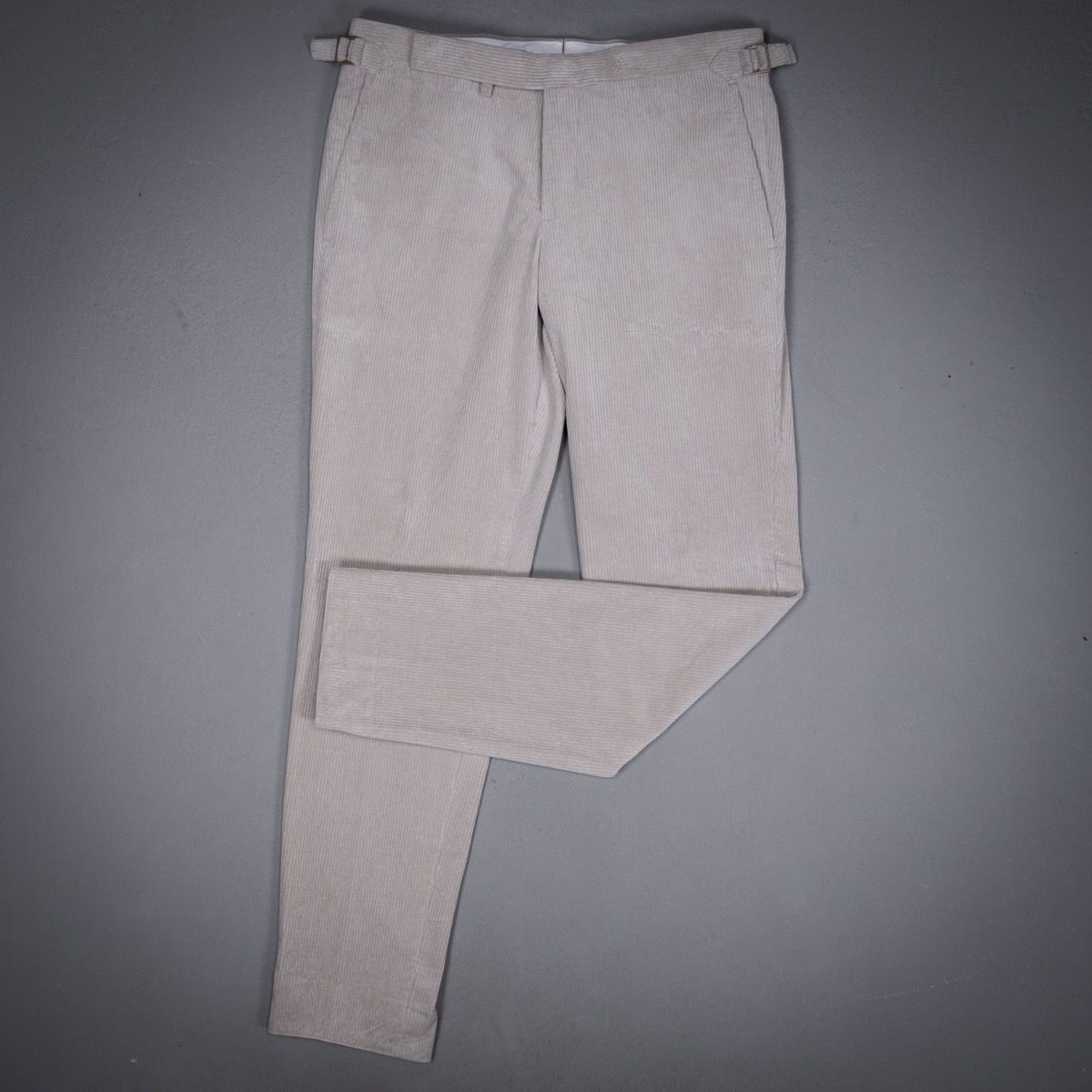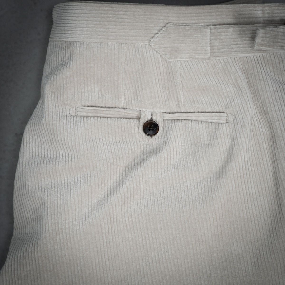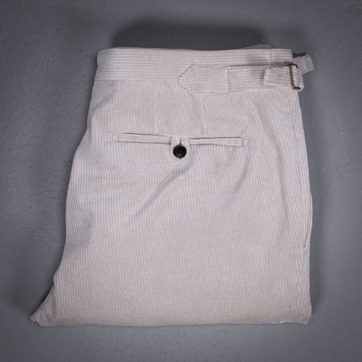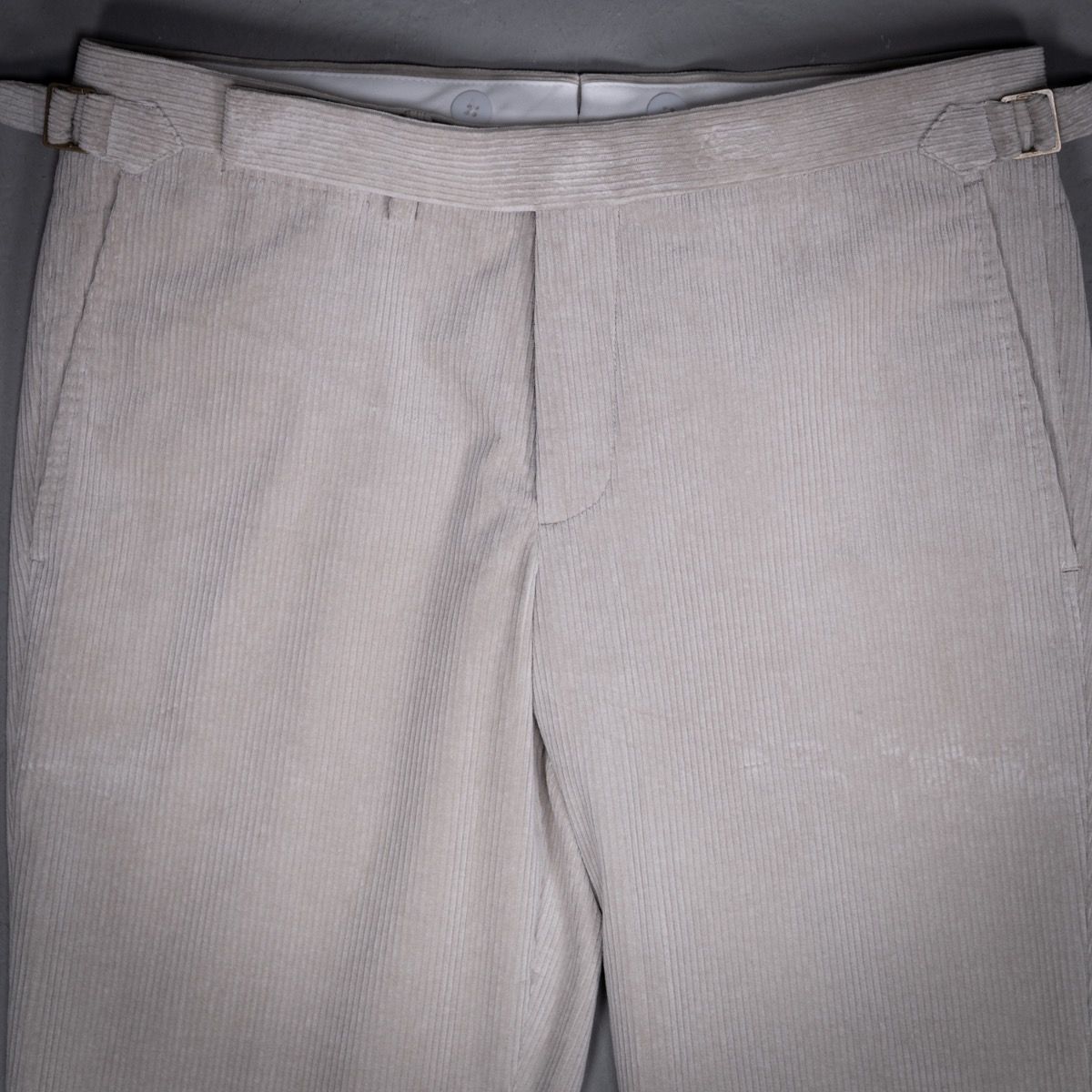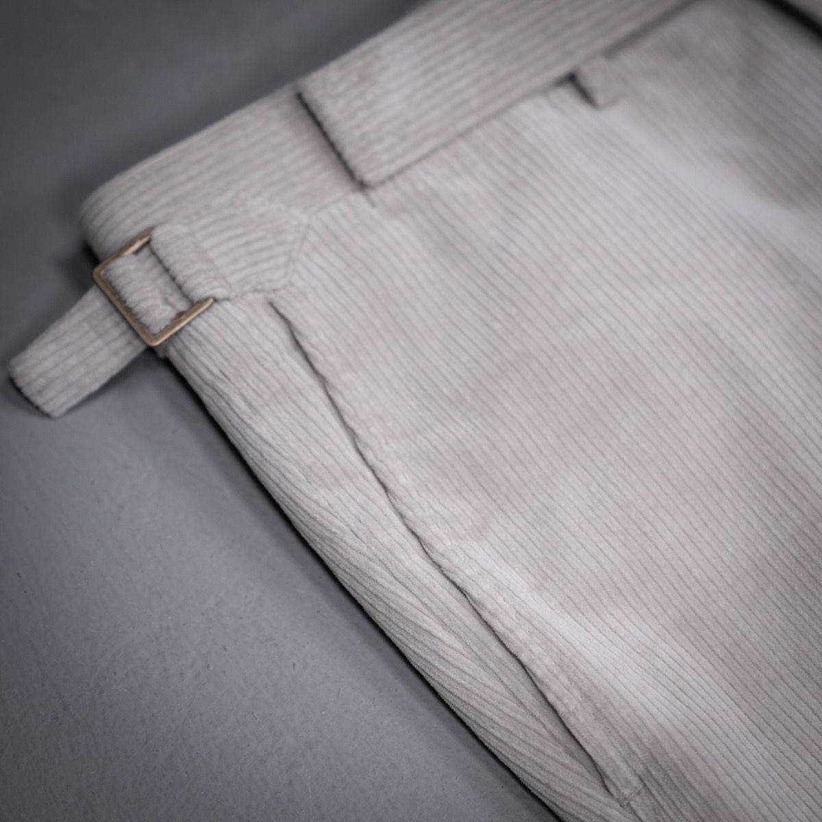Deze broek uit de AART collectie is gemaakt naar het traditionele model van de Londense Savile Row kleermakers. Een echt geklede broek met blinde sluiting en zijtrekkers zodat het silhouet clean en ingetogen is. De grove cord die gebruikt is voor deze broek is boterzacht. Dit is wat je noemt draagbare luxe. Door de mooie val van de stof, is het een nonchalant elegant te dragen, zeker in de juiste combinatie. Wij zouden de broek dragen bij het jasje in dezelfde stof dragen als een semi gekleed pak of met een luxe trui in een gelijkende, lichte kleur.