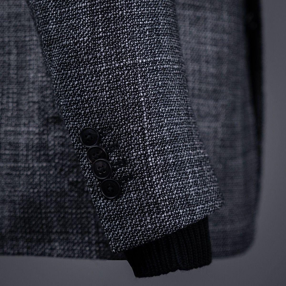 Dit jasje uit de AART collectie is gemaakt volgens de Napolitaanse school. Gesneden met een extreem dunne, zachte schouder en zonder kopwatte voor een ontspannen uitstraling. De structuurstof die gebruikt is, doet een beetje denken aan luxe meubels; typisch Italiaans. Wij zouden het combineren met een licht grijze denim en een zwarte coltrui, maar een chino en wit shirt past perfect voor een iets formelere look.