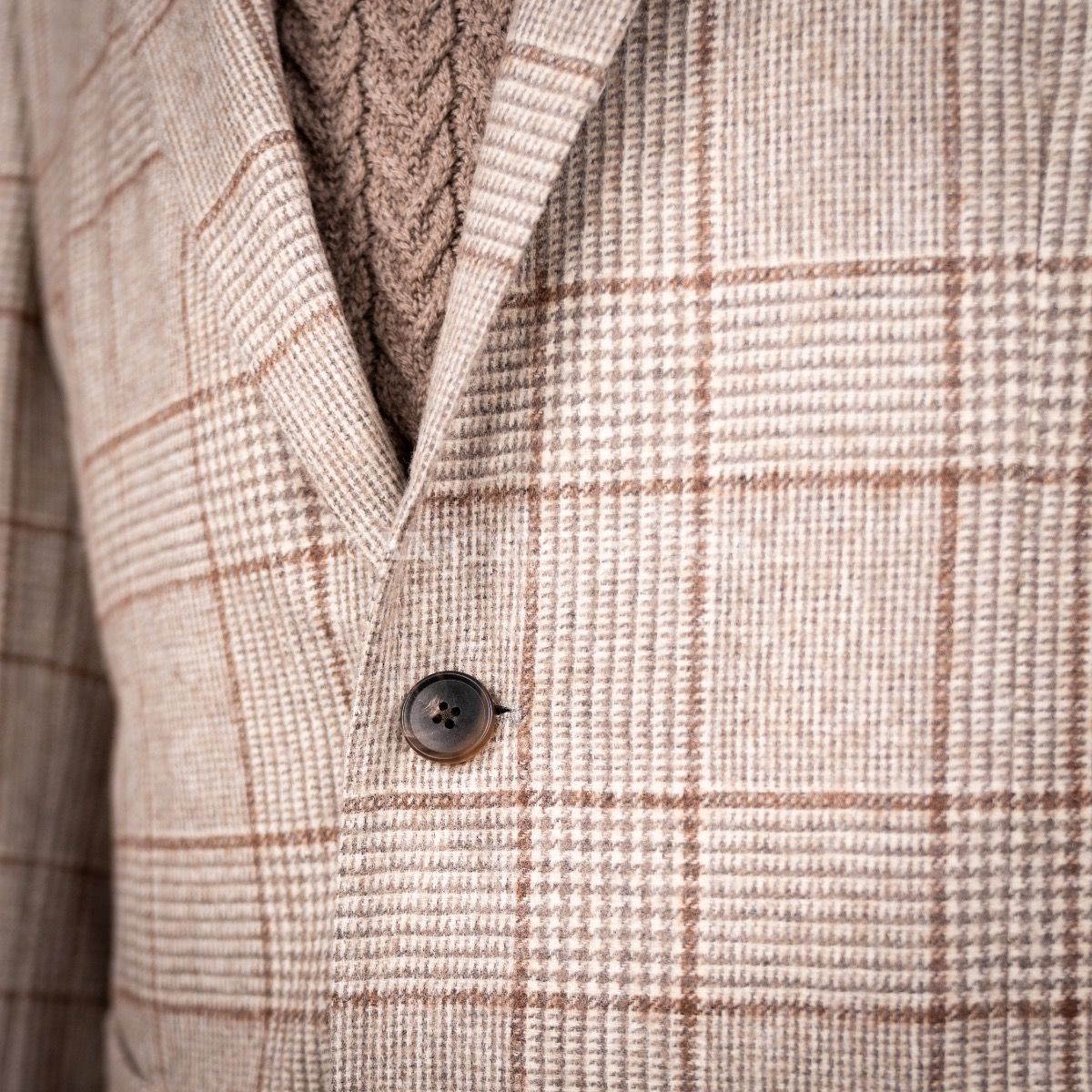 Italiaanse stoffenhuis is de specialist in structuurstoffen. Bijzonder aan dit jasje is de combinatie van de traditionele glenncheck, de gebruikte Alpaca wol en natuurlijk het natuurlijke kleurenpalet. Wij vinden dit jasje prachtig in combinatie met een winterwitte chino/jeans en een coltrui, lekker winters. Maar natuurlijk is het ook mooi op een donkere cord en een denim shirt.