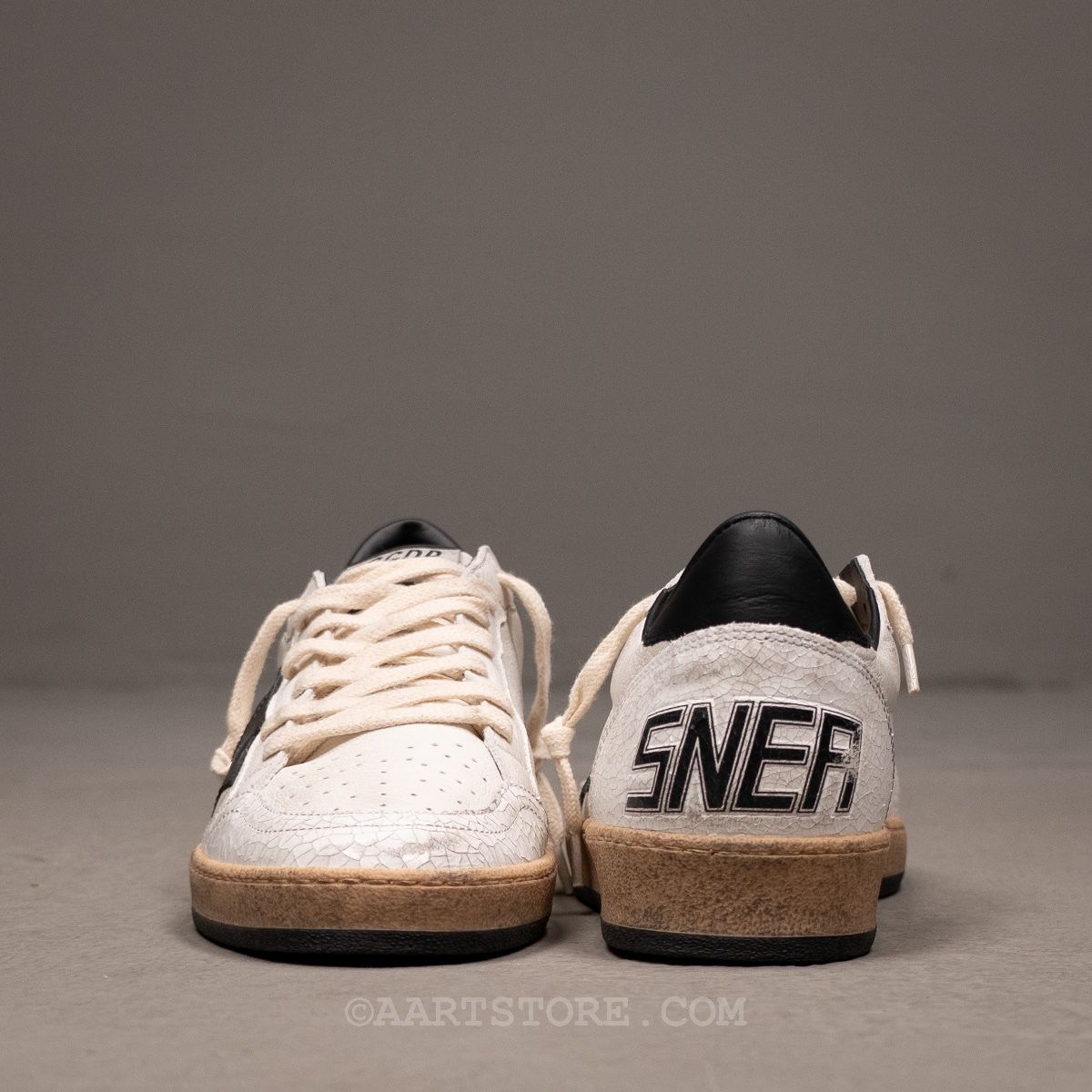 Golden Goose is een van de coolste (insider) merken. Geïnspireerd op de Californische skateboard cultuur van de jaren ’80 heeft het een vintage achtige uitstraling, maar met een modern kleur en materiaalgebruik. De Ballstar is gebaseerd op de lage basketbalschoenen die aan het eind van de twintigste eeuw in beeld kwamen. Met het woord sneakers uitgeschreven over de achterkant van beide schoenen, een klein grapje. Dit is een coole schoen die met zijn vorm ook ruimte biedt aan de iets bredere voet. De tijdloze combinatie van zwart en wit maken deze Ballstar extreem bruikbaar en breed inzetbaar.