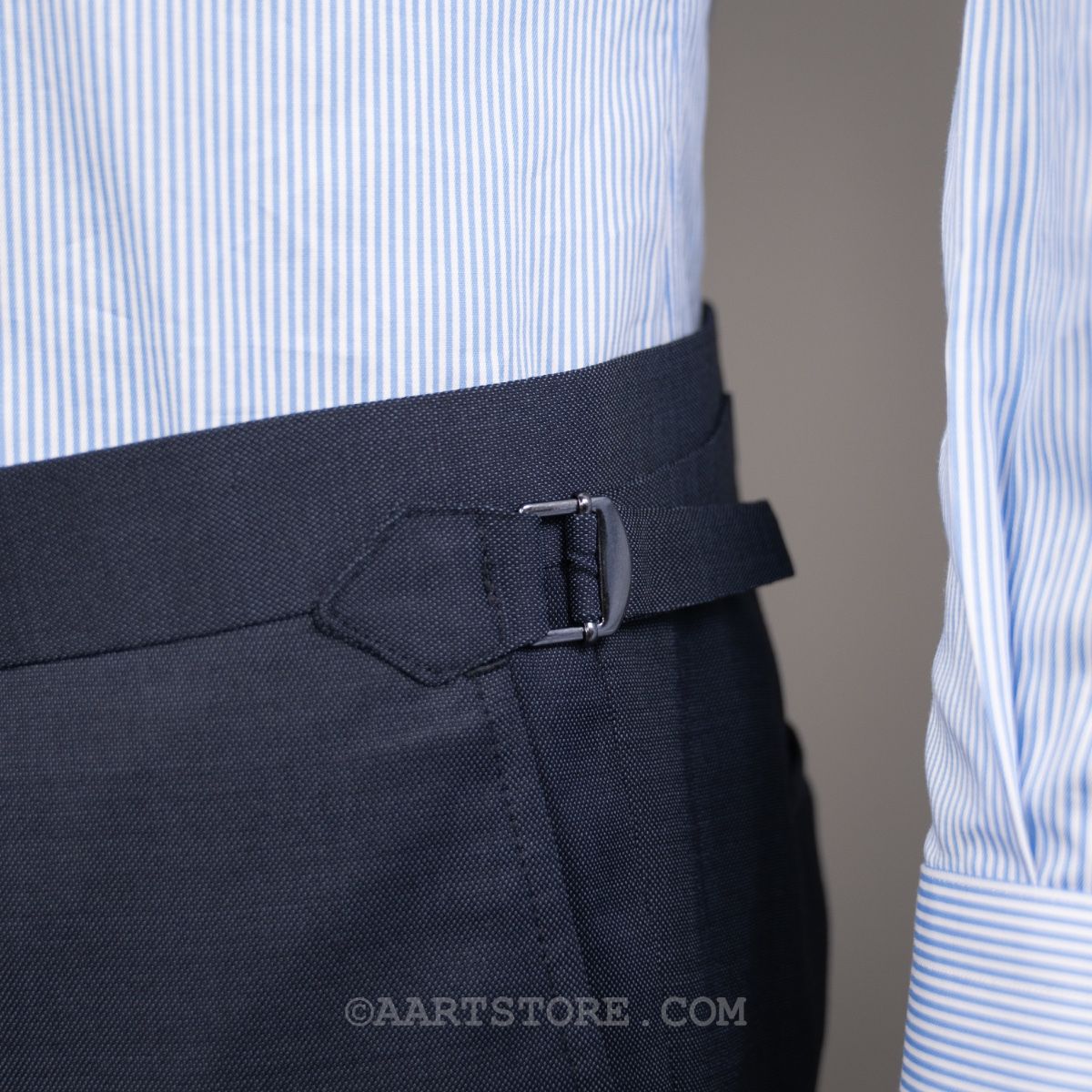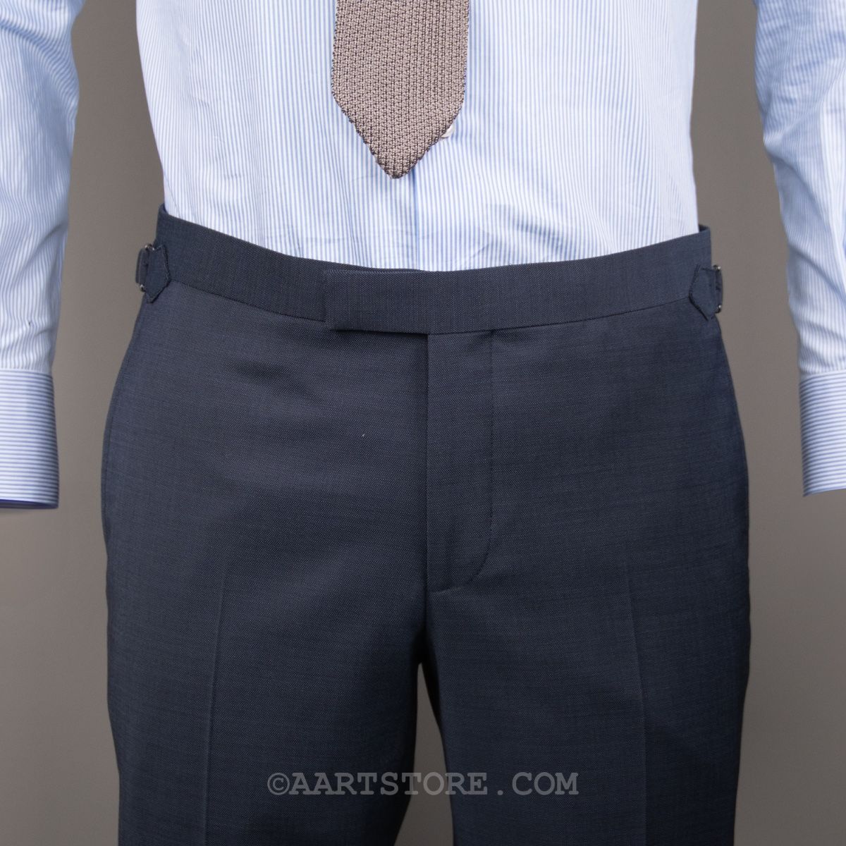 Het AART Bateman pak is een traditioneel gemaakt pak dat het formele van Britse tailoring combineert met Italiaanse flair en val. Gemaakt van wol met een hoge yarncount, zodat het kreukherstellend is en er gewoon heel goed uitziet. De broek heeft zijtrekker voor een meer elegante kleermakers uitstraling. Deze blauwgrijze kleur mag niet onvermeld blijven, net iets frisser dan navy, maar zeker zo inzetbaar.