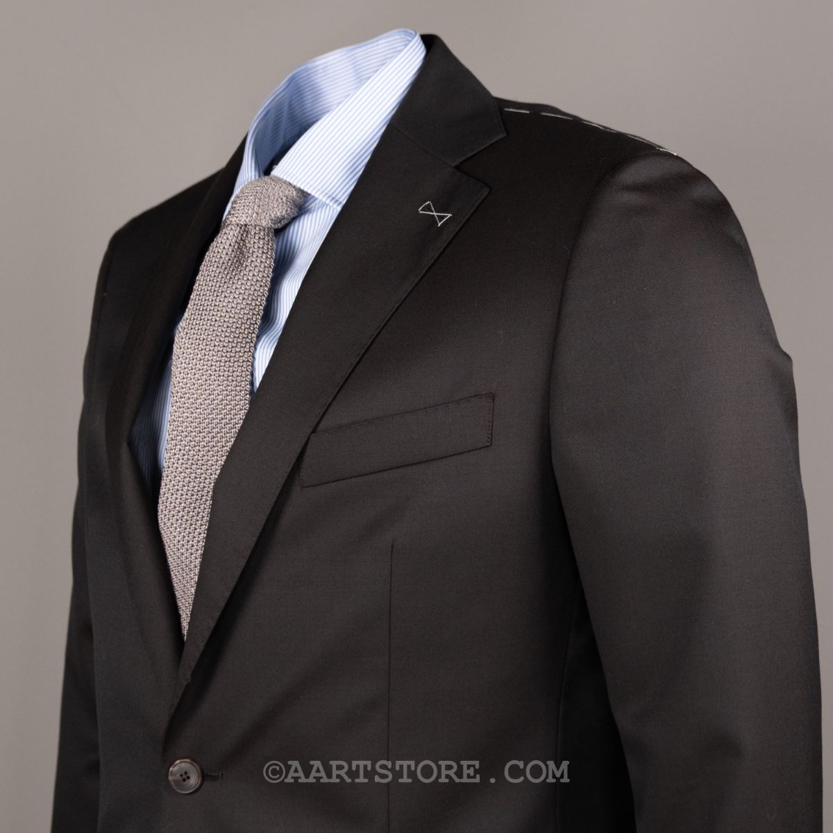 Het AART Bateman pak is een traditioneel gemaakt pak dat het formele van Britse tailoring combineert met Italiaanse flair en val. Gemaakt van wol met een hoge yarncount, zodat het kreukherstellend is en er gewoon heel goed uitziet. De broek heeft zijtrekker voor een meer elegante kleermakers uitstraling. Deze donkerbruine kleur mag niet onvermeld blijven, het is modisch maar toch tijdloos en de kleur is zo donker dat je het bruine alleen van dichtbij ziet; onopvallend elegant.