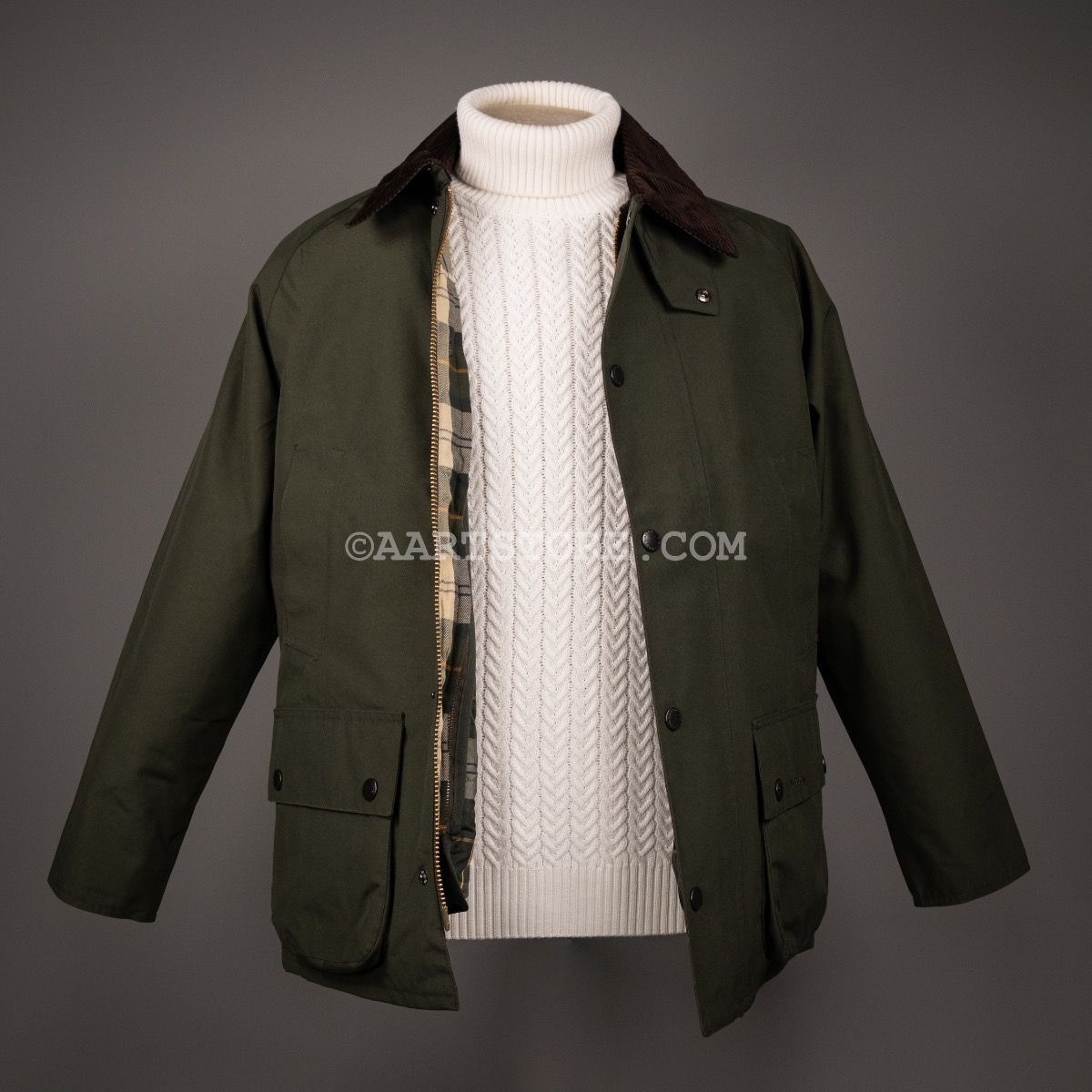 Barbour is een Brits icoon, geliefd bij burgers, buitenlui en het Britse koningshuis. Gesticht in 1894 in South Shields door John Barbour, staat vandaag de dag de 5e generatie aan het roer. Hoe een eenvoudig idee is uitgegroeid tot een wereldspeler. De combinatie van parafine wax en een 100% katoenen canvas maken van Barbour the best British clothing for the worst British weather. Vandaag de dag omvat de collectie ook modernere materialen, zoals deze Bedale Tech coat; een traditioneel model in een technisch materiaal. Dit showerproof doek zal je beschermen tegen de elementen terwijl het wel ademend draagcomfort biedt. Dit model was oorspronkelijk bedoeld voor ruiters met twee splitten (met drukknoop) om in het zadel te zitten én gebreide manchetten voor comfort als het waait en regent. De Bedale Techno komt met een uitritsbare dons bodywarmer die ook los te dragen is. (NB. De genoemde maten zijn Europese maten, trek 10 af voor de UK maat, dus onze 48 is een UK 38 etc.)