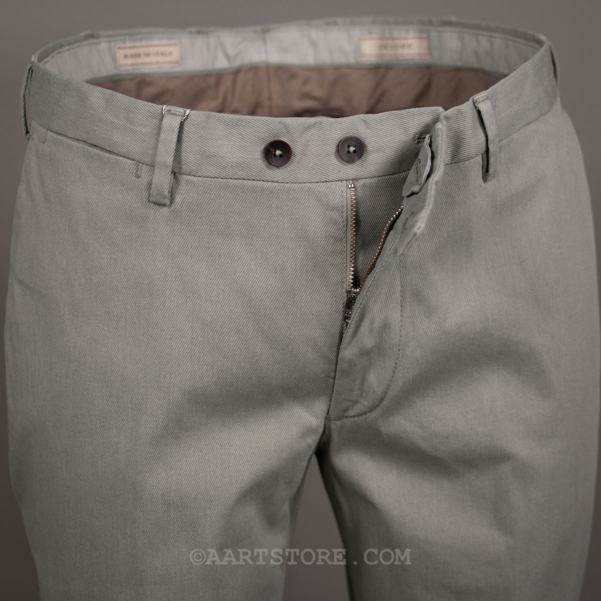 DEVORE is een Napolitaanse broekenspecialist. Jarenlang maakte dit familiebedrijf vooral broeken voor andere partijen en hierdoor staan ze in de business bekend als een uiterst vakkundige en betrouwbare partner. Sinds een paar jaar maakt Devore hun eigen collectie; bijzonder mooi gemaakte broeken voor een alleszins redelijke prijs. De constructie is prachtig gemaakt van verschillende materialen waardoor een speels effect ontstaat. De broekband is een uitvinding van Devore, de Flexowaist geeft extra comfort bij bewegen en zitten zonder dat de broek afzakt. Het model is eigentijds, met iets meer ruimte en een pasvorm die toeloopt naar de voet. Deze tinto twill chino is een fijne, dunne stof met een lichte keperstructuur. Deze broek biedt heel veel comfort, met veel bewegingsvrijheid. Deze chino is clean genoeg om hem te dragen bij een jasje, maar een linnen shirt of polo past ook naadloos.