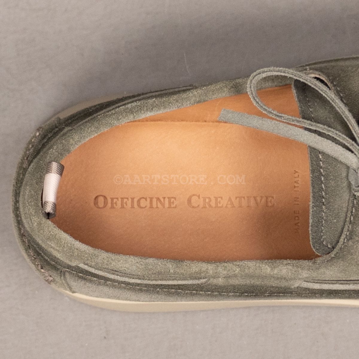 Officine Creative is een Noord-Italiaanse schoenmaker die de dingen op een traditionele manier net anders doet. De schoenen worden met de hand gemaakt op de traditionele (correcte) manier, maar de modellen en de finishing maakt dit juist eigentijds en cool. De Bones is Officine’s versie van de weer helemaal in de mode zijnde bootschoen. Gemaakt van fijne ‘cashmire’ suède, een kwaliteit die een rijke uitstraling combineert met zachtheid. Het hand geverfde kleureffect geeft de schoen een casual effect dat perfect past bij vintage denims of linnen. Er is gekozen voor een lichte zool die soepel is en heel veel draagcomfort biedt, met of zonder sok.