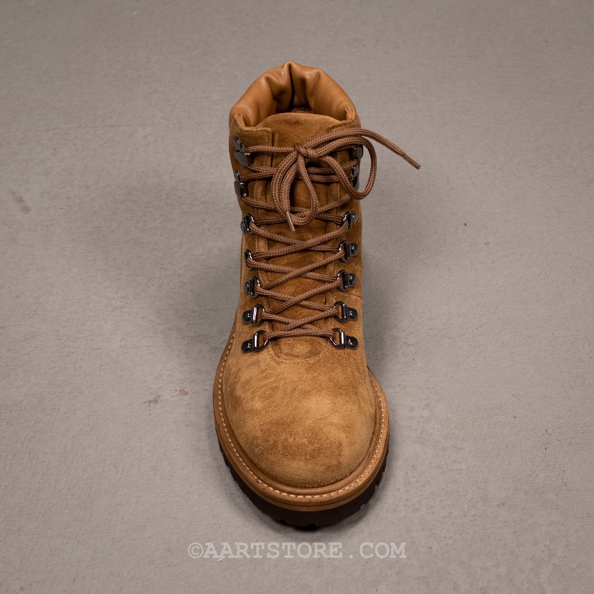 Officine Creative is een Noord-Italiaanse schoenmaker die de dingen op een traditionele manier net anders doet. De schoenen worden met de hand gemaakt op de traditionele (correcte) manier, maar de modellen en de finishing maakt dit juist eigentijds en cool. De Boss is een typisch Italiaanse winterschoen. Het lijkt een beetje op een bergschoen en ook op een legerkistje, maar dan op een sophisticated manier. De kleur in combinatie met het rijke suède maken dit een bijzonder en bijzonder stoer-elegante schoen. Om te dragen is dit een genot, zacht en niet zwaar, anders dan je misschien zou verwachten. Als je deze Boss (de naam zegt alles) draagt met een lichte broek en een lekker stevige trui dan ben je de ultieme versie van stealth wealth.