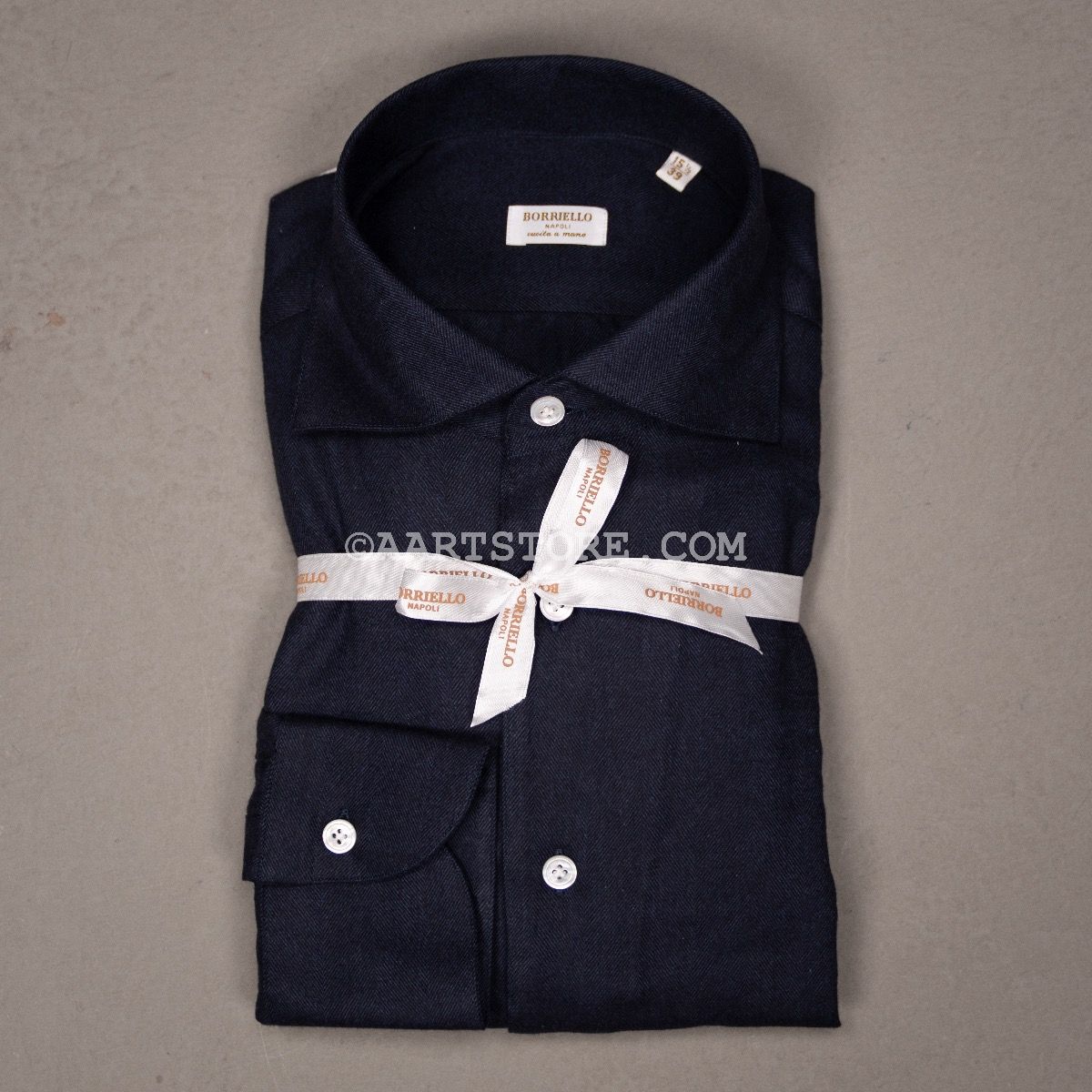 Borriello is een vakkundige shirtmaker uit Napels. De fijne stitching, de parelmoeren knopen en natuurlijk de pasvorm maken het een heerlijk shirt. De combinatie van een traditionele, hand gestikte maakwijze met rijke stoffen maken het een bijzonder shirt en een perfecte manier om kennis te maken met de shirts volgens de Napolitaanse school. Dit shirt is gesneden uit een een luxe kwaliteit van katoen met cashmere met een compacte visgraat. Dit maakt het shirt geschikt voor zowel zakelijk als casual gebruik. Het boord verdient een bijzondere vermelding: de Capri. Ons eigen ontwerp, samen met Borriello ontwikkeld. Het is een kruising tussen een one piece en een normaal boord, waardoor het prachtig valt als het open gedragen wordt, maar nog steeds goed te combineren is met een jasje.