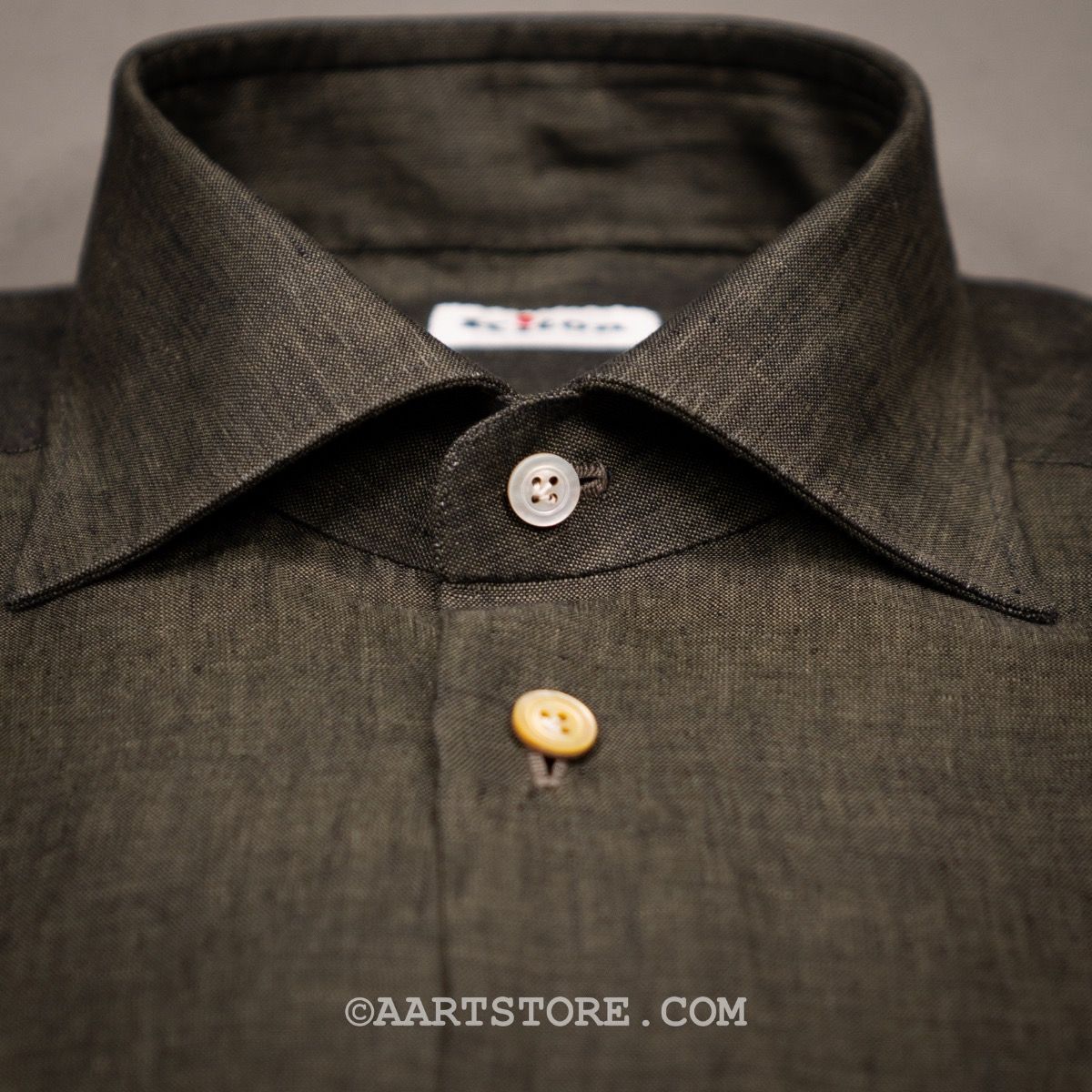 KITON is simpelweg het mooiste (merk) dat je als man kunt dragen. Dit Napolitaanse label heeft als motto: the best of the best +1, en dat is precies wat men doet. Bij ieder stuk is het uitgangspunt om simpelweg de best mogelijke versie te maken, alles met de hand. Dat zie je zeker bij de sublieme shirts van het label: deze zijn helemaal met de hand gestikt, artisanale kunst. Dit linnen shirt heeft een chambray effect waardoor er subtiele variaties in de kleur zitten. Dit geeft het hemd een nonchalante uitstraling. Dit past perfect op een korte broek, maar wel net zo mooi onder een jasje. stoer maar ook heel zacht om te voelen en rijk en daarmee draagt het comfortabel. Een Kiton shirt is daarmee misschien wel het beste shirt dat je ooit zult bezitten.