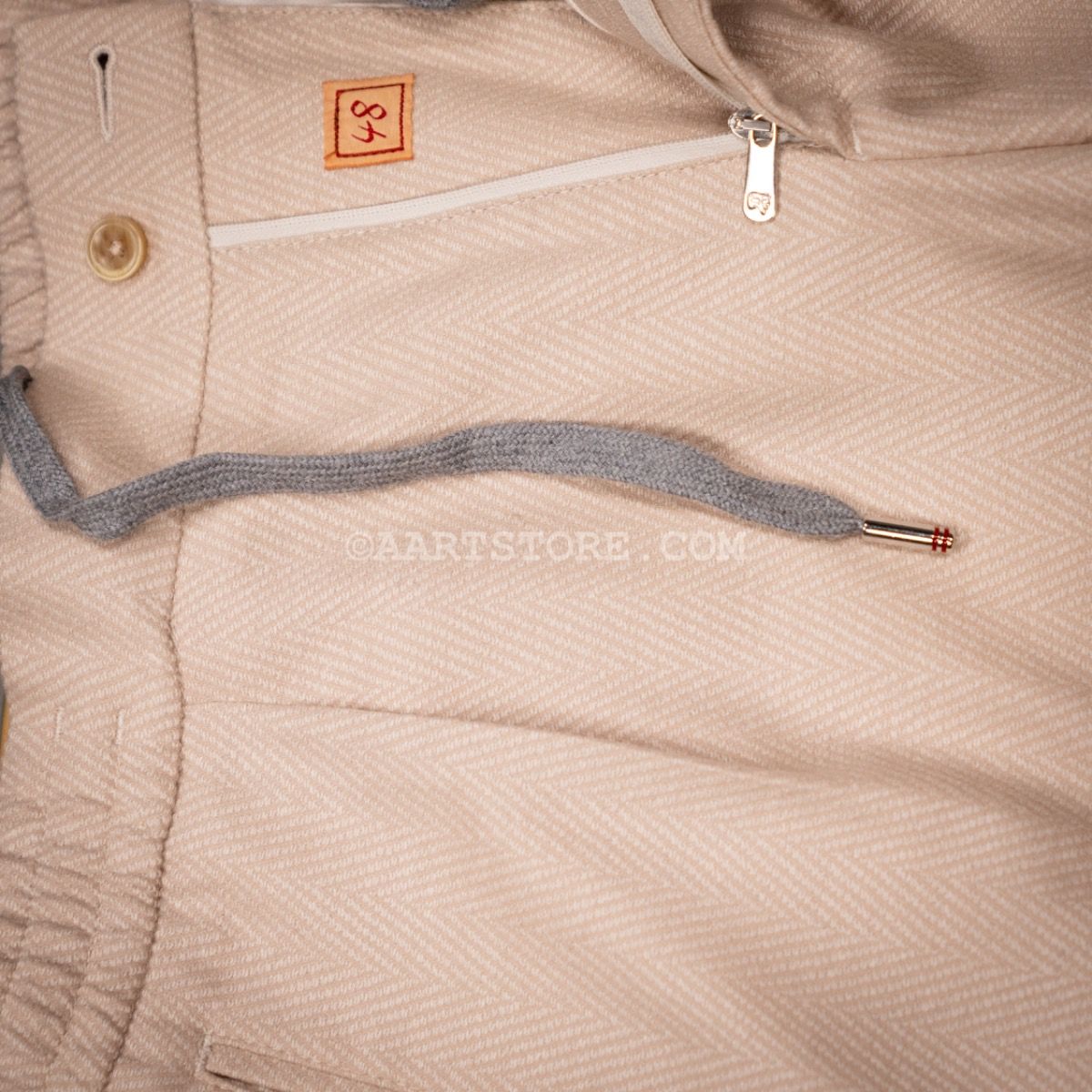 Pescarolo is een Napolitaanse broekenmaker die luxe combineert met een geheel eigen visie op hoe een broek moet zitten en vallen. Een prachtig bedrijf van twee (jonge) mannen die in staat zijn kunsten en stijlen van voorbije generaties te vertalen naar het nu. De Chiaia is het nieuwste model uit Napels. Het is een kruising van een relaxte drawstring en nette pantalon met een iets wijdere pasvorm op het bovenbeen en met een bandplooi. Dat geeft de Chiaia een hip en eigentijds silhouet dat zowel past bij een jasje als bij een stevige trui of lekker vest. Dat laatste zou overigens onze voorkeur hebben. Dit Jersey materiaal bestaat uit een mix van wol, cashmere en zijde en is uitermate comfortabel en door de visgraat heeft het een chique uitstraling.