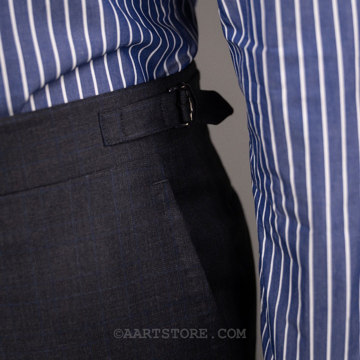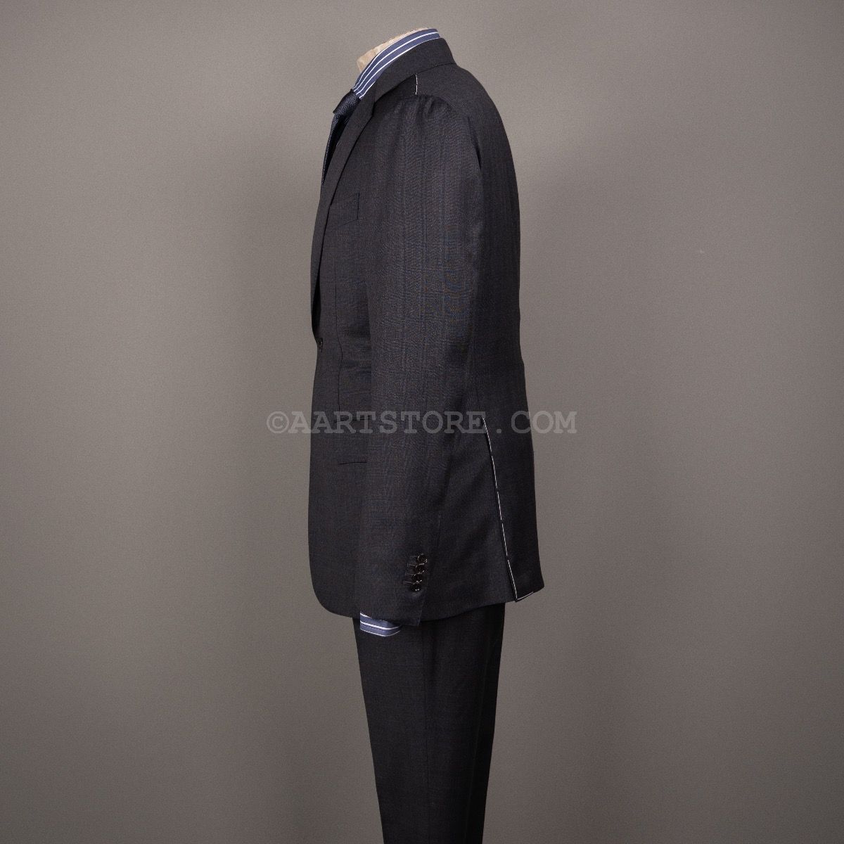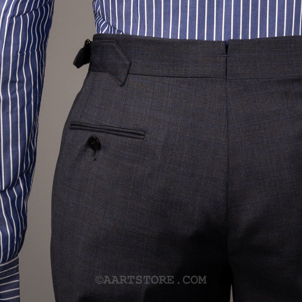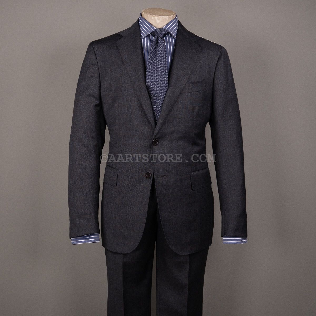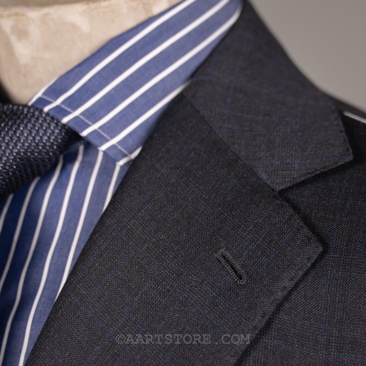 Stile Latino is het label van Vincenzo Attolini en zijn zoon Cesare. Deze telgen van deze beroemde kleermakersfamilie zijn hun label 15 jaar geleden begonnen met maar 1 idee: de allerbeste Napolitaanse tailoring combineren met een eigentijdse, sexy fit. Dat zie je duidelijk terug in dit pak met vage glenncheck. Wat bij de meeste pakkenmakers een uitzondering is, mag je bij Stile Latino als vanzelfsprekend beschouwen: de stof is een super 140 die zelfs nog rijker voelt en in een heel elegante grijstint. De pasvorm is aan het lichaam, maar zonder belemmering en het is een pak dat je iedere dag kunt dragen zonder dat het alledaags is. Kijk ook nog even naar alle details en je bent verkocht. Dit is simpelweg een van de mooiste en mooist gemaakte pakken die je kunt bezitten.