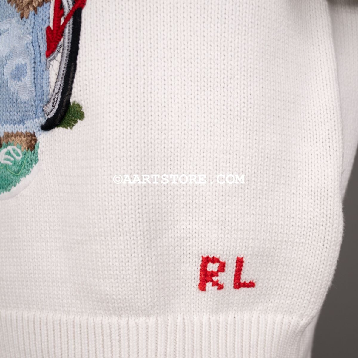 Ralph Lauren behoeft geen enkele introductie. Sinds de geboorte van het Polo label in 1967 is het merk uitgegroeid tot een wereldwijde speler en het baken van de Anglo-Amerikaanse stijl en smaak. De Polo bear werd in 1991 geïntroduceerd als een daadwerkelijke teddybeer, gemaakt door de Duitse berenspecialist Steiff. Sindsdien is de Polo bear niet meer weg te denken uit de collectie. Dit is een van de kroonjuwelen van de Polo bear collectie; een gebreide polo met een handmatig ingeslagen zomerse beer.