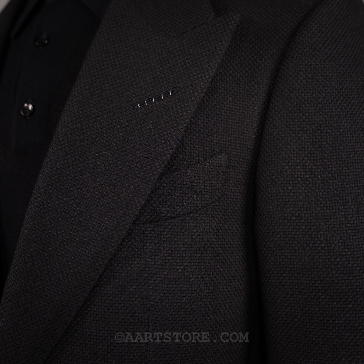 Tom Ford weet als geen ander zijn eigen draai te geven aan de manier waarop mannen zich kleden. Met zowel technische, traditionele én high fashion invloeden is zijn label uitgegroeid tot een begrip op het gebied van draagbare luxe. Zijn jasjes behoren tot de absolute wereldtop met een strenge, businesslike uitstraling. Niet voor niets dat Tom Ford jarenlang de huisleverancier was van Daniel Craig in zijn rol als James Bond. Dit hopsac jasje is een echte Tom Ford klassieker. Een van origine Britse stof, maar dan met Italiaanse verfijning en coolness. Een van de aardige dingen van dit jasje is natuurlijk de kleur; zwart maar niet hard, door de structuur in de stof gebeurt er veel en is het een breed inzetbaar colbert. Wil je er op en top casual chique uitzien, combineer het dan met een grijze denim en een wit shirt.