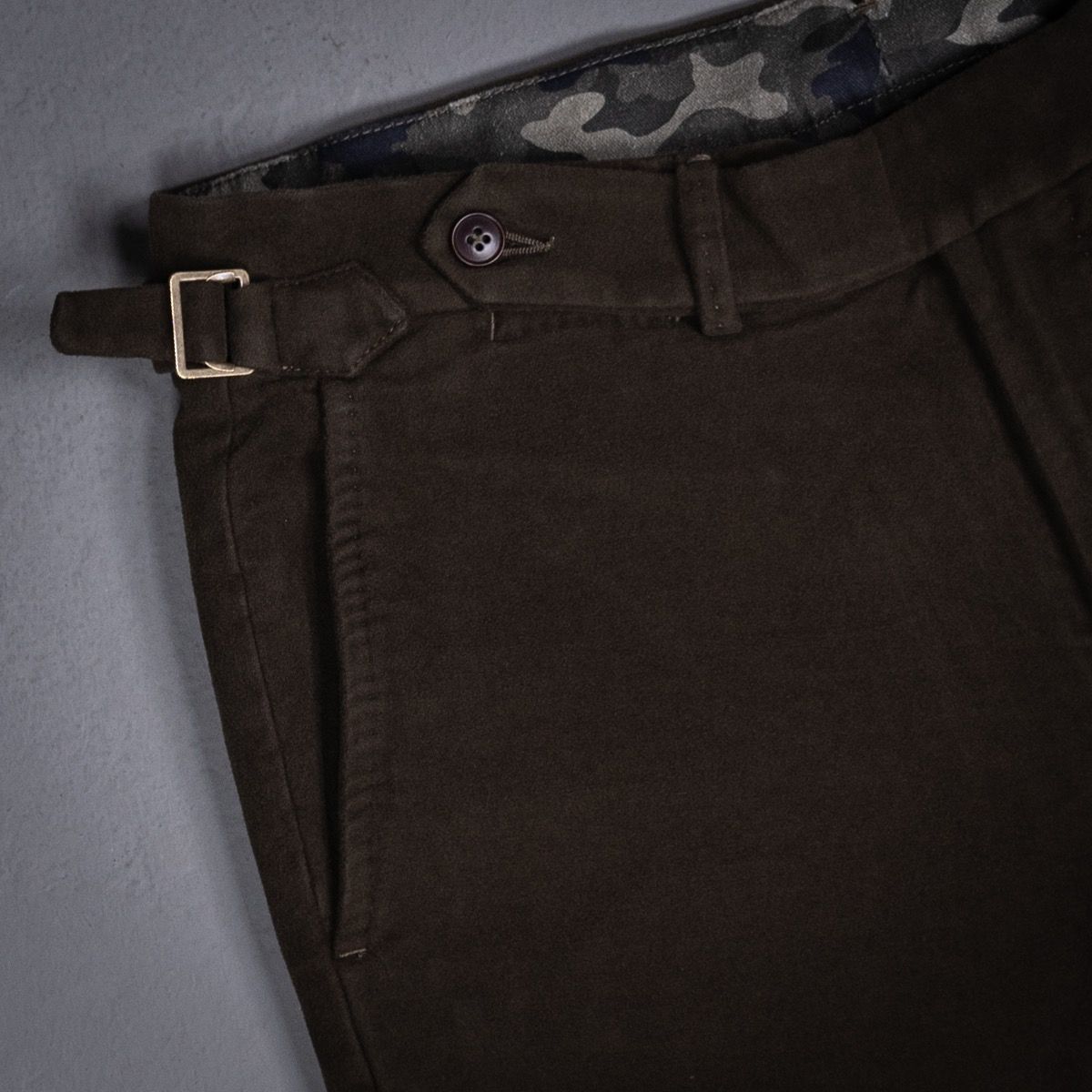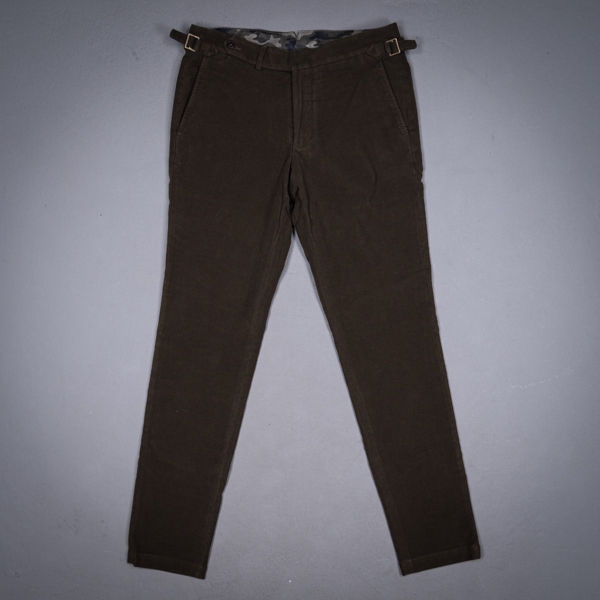Deze chino uit de AART collectie is de Italiaanse versie van de Britse stijl. Moleskin is een stevige katoen die wel voldoende draagcomfort biedt. De broek is gemaakt met Napolitaanse details zoals de verlengde band en de zijtrekkers. Het is een sportieve broek die heel goed gekleed gedragenm kan worden, bij een luxe knit of jasje. De pasvorm van de chino is geïnspireerd op onze favoriete jeans: slank maar met voldoende wijdte op het bovenbeen en een comfortabele lijfhoogte.