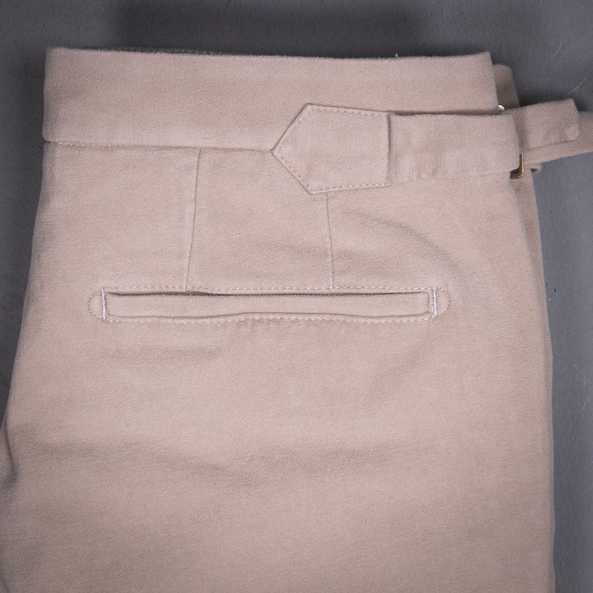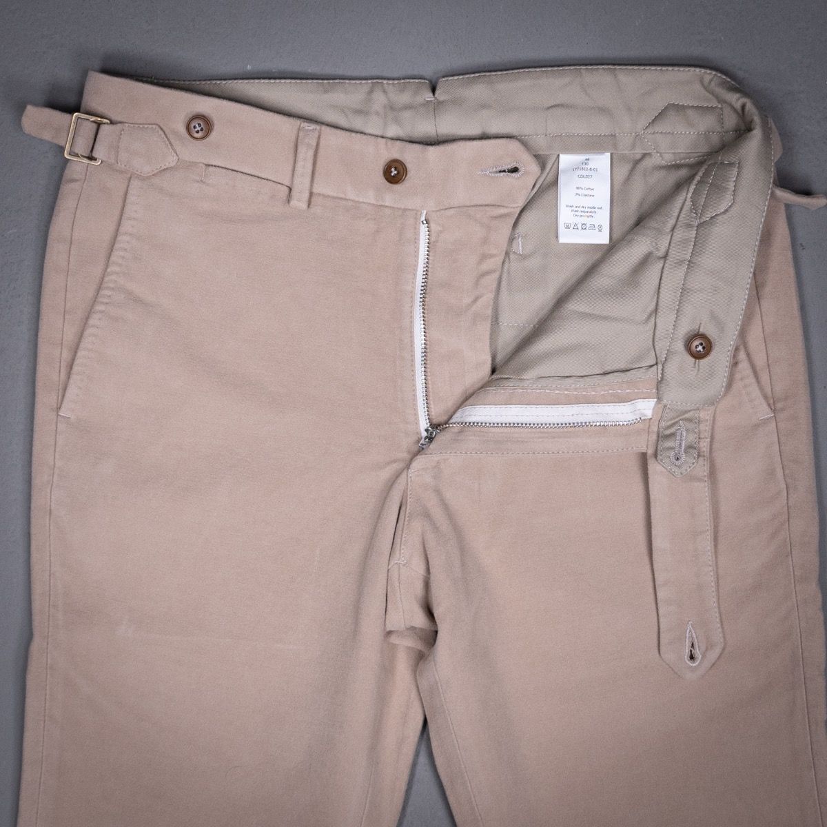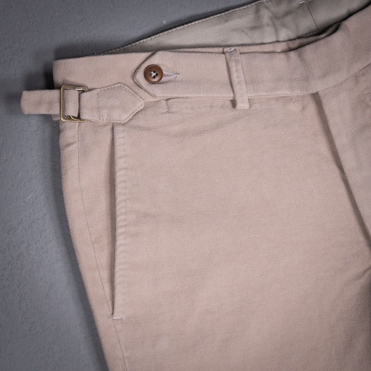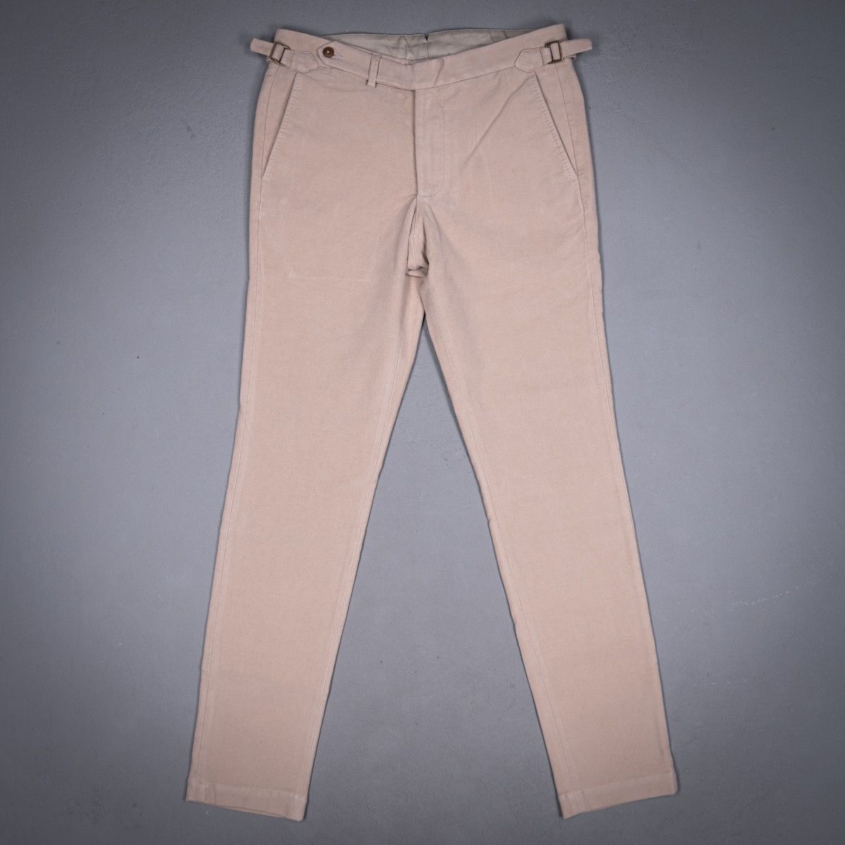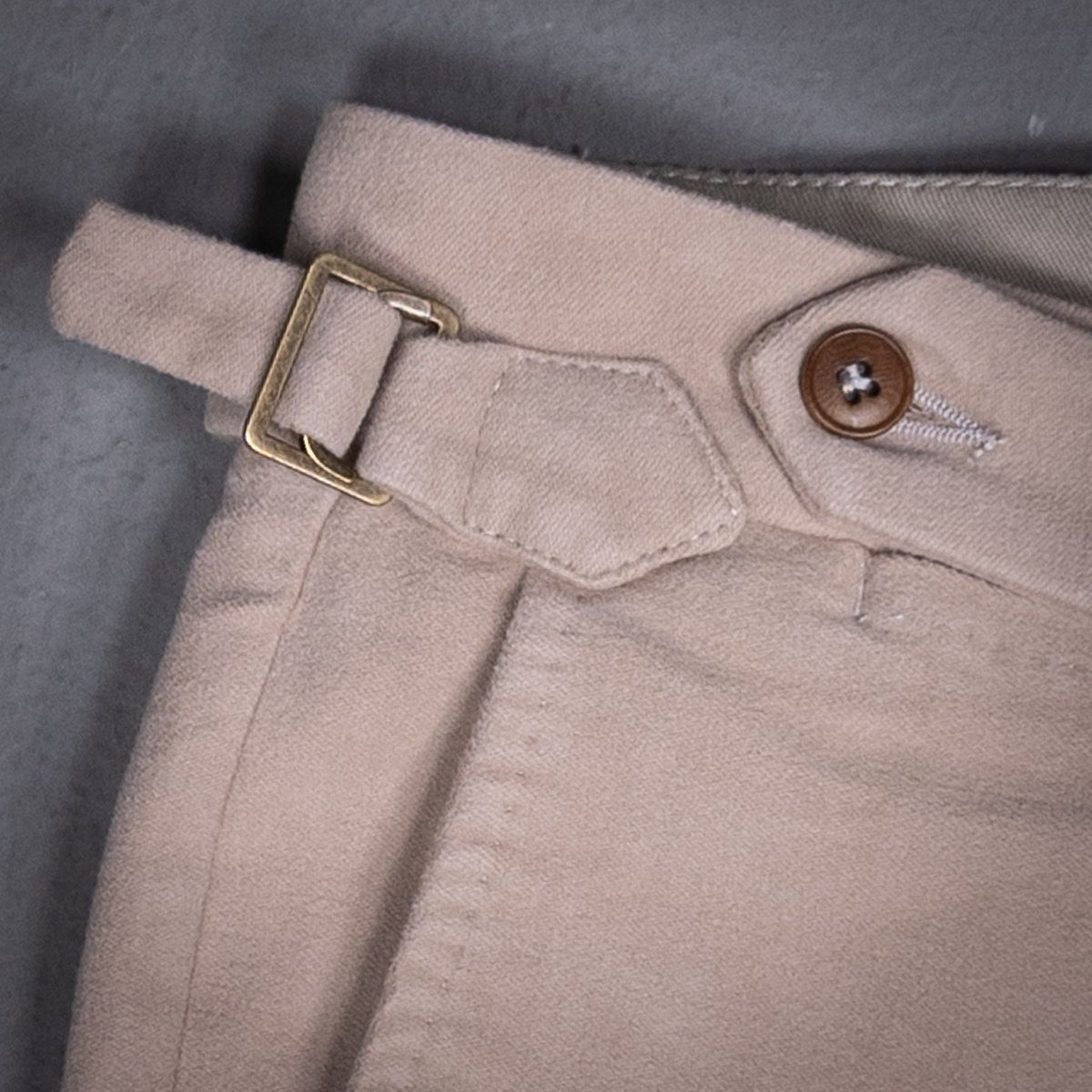 Deze chino uit de AART collectie is de Italiaanse versie van de Britse stijl. Moleskin is een stevige katoen die wel voldoende draagcomfort biedt. De broek is gemaakt met Napolitaanse details zoals de verlengde band en de zijtrekkers. Het is een sportieve broek die heel goed gekleed gedragenm kan worden, bij een luxe knit of jasje. De pasvorm van de chino is geïnspireerd op onze favoriete jeans: slank maar met voldoende wijdte op het bovenbeen en een comfortabele lijfhoogte.