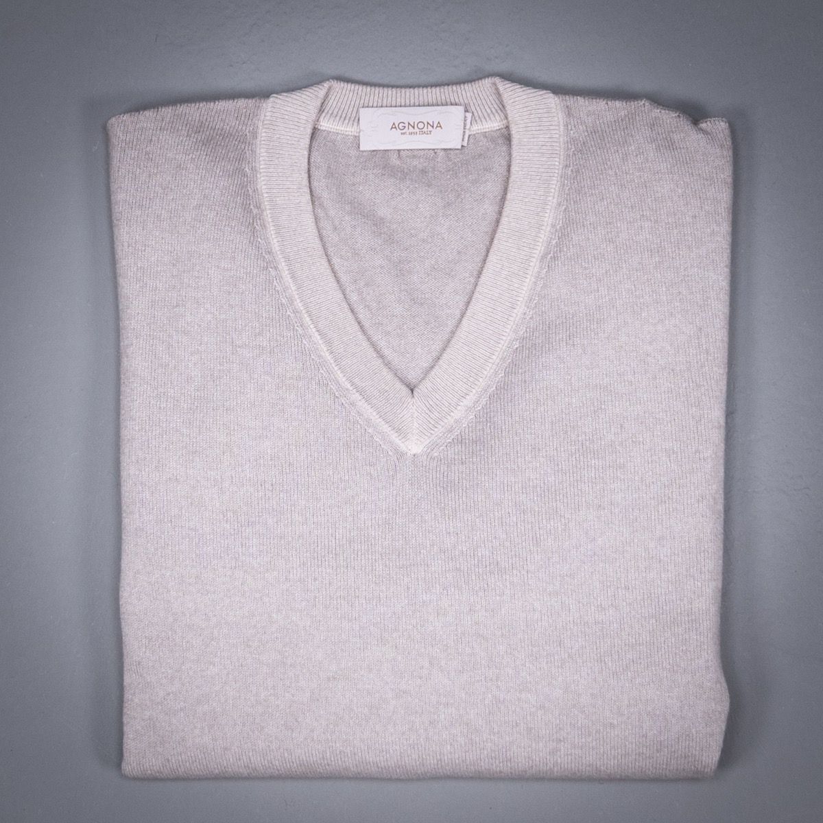 Agnona is de vergeten parel onder de Italiaanse brei- en stoffenhuizen. Begonnen in 1953 als een leverancier van cashmere, Vicuna en Alpacca wol aan huizen als Hermes en Chanel is het merk in de jaren ’60 van de vorige eeuw een synoniem geworden met Italiaanse luxe. Sinds een jaar of twee is Agnona terug en AART-Rotterdam is het enige adres in Nederland waar dit iconische merk verkocht wordt. Deze V-hals is een moderne interpretatie van een klassiek silhouet. Deze V-hals is heerlijk zacht door de combinatie van cashmere en pima katoen, licht en toch met een stevige uitstraling. Tijdloos op ene wit shirt maar ook perfect over een T-shirt voor een relaxte cool.