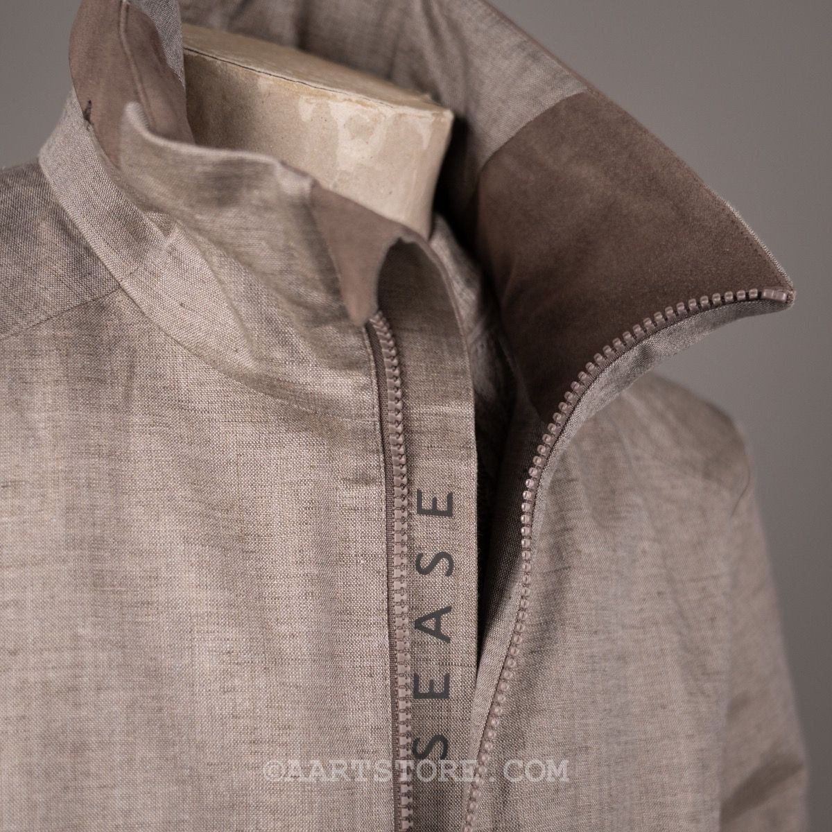 Sease is een nieuw merk maar wel met een rijke heritage. Dit merk is het geesteskind van de familie Loro Piana, dat zij begonnen zijn na de verkoop van hun gelijknamige bedrijf. De naam is een samentrekking van ‘ease’ en ‘sea’; naar de combinatie van het relaxte gevoel en het gebruik van hoogwaardige materialen uit de zeilsport. Sease brengt technische hoogwaardigheid samen met absolute luxe. De Cruise jacket is een van de pronkstukken uit de zomercollectie. De linnen buitenkant is gecombineerd met een technische laminatie. Dit maakt dat deze jas er chique uitziet en luxe voelt maar wel waterdicht is en je beschermd tegen alle elementen: een unieke combinatie.