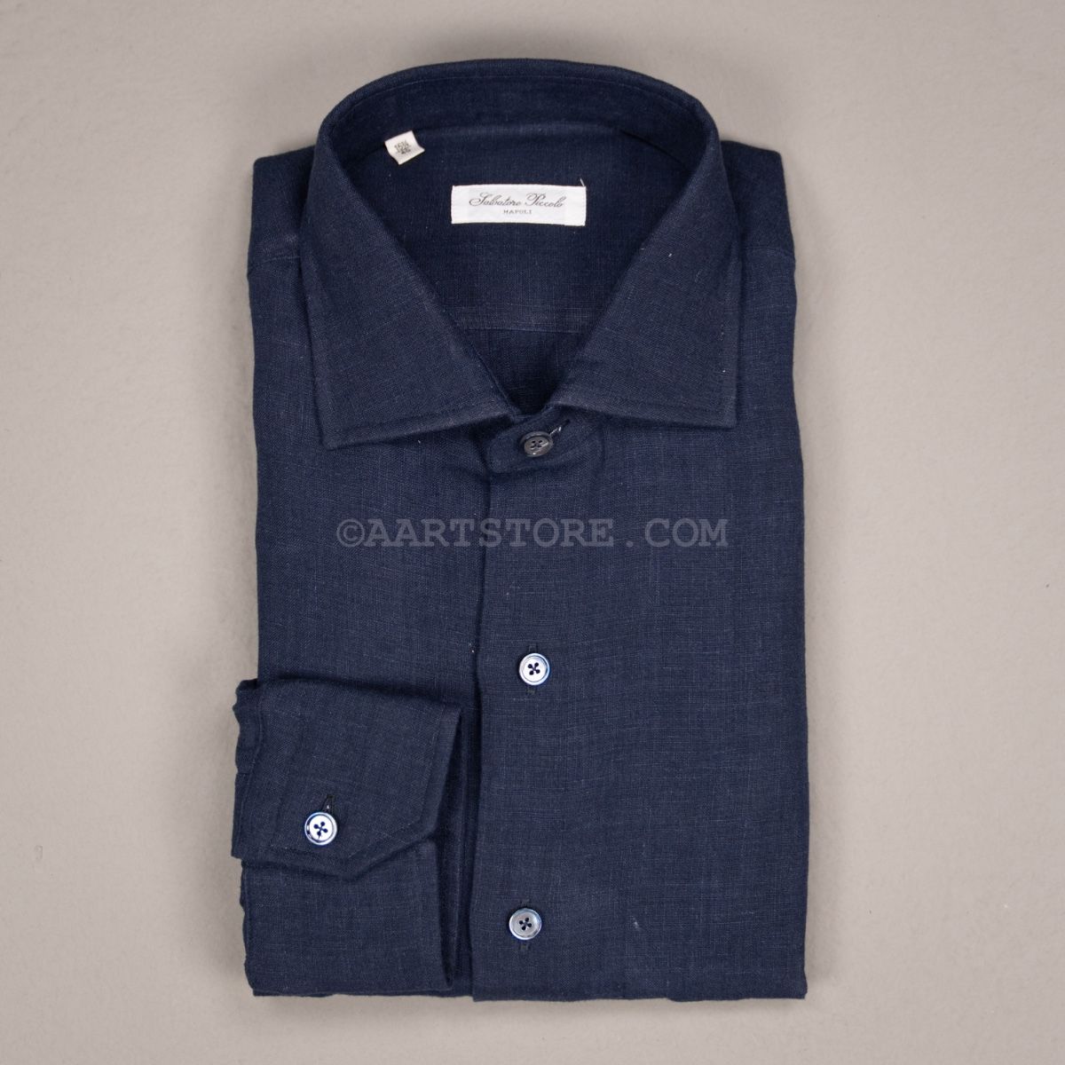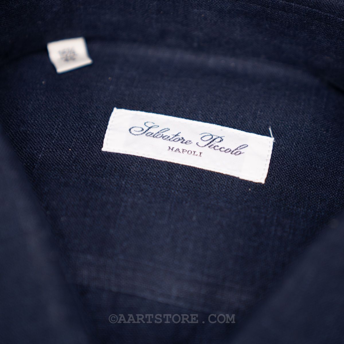 Salvatore Piccolo is een Napolitaanse shirtkunstenaar. Hij maakt een uniek en bijzonder rijk shirt dat zich onderscheidt van de massa. Het zijn handgemaakte hemden gesneden uit niet alledaagse stoffen die vaak speciaal voor Salvatore geweven worden. Dit shirt zit vol met details, maar mijn favoriet is wel de extra coupnaad in de mouw waardoor deze de natuurlijke kromming van de arm beter volgt. De linnen die Slvatore gebruikt voor dit shirt komt uit Japan en is opvallend stevig en compact geweven. Hierbij blijft de luchtige nonchalance van linnen wel behouden, maar het geeft het shirt wel body. Hierdoor heeft dit Piccolo shirt iets stevigs dat heel goed past bij afgewassen zomerdenims en sneakers.