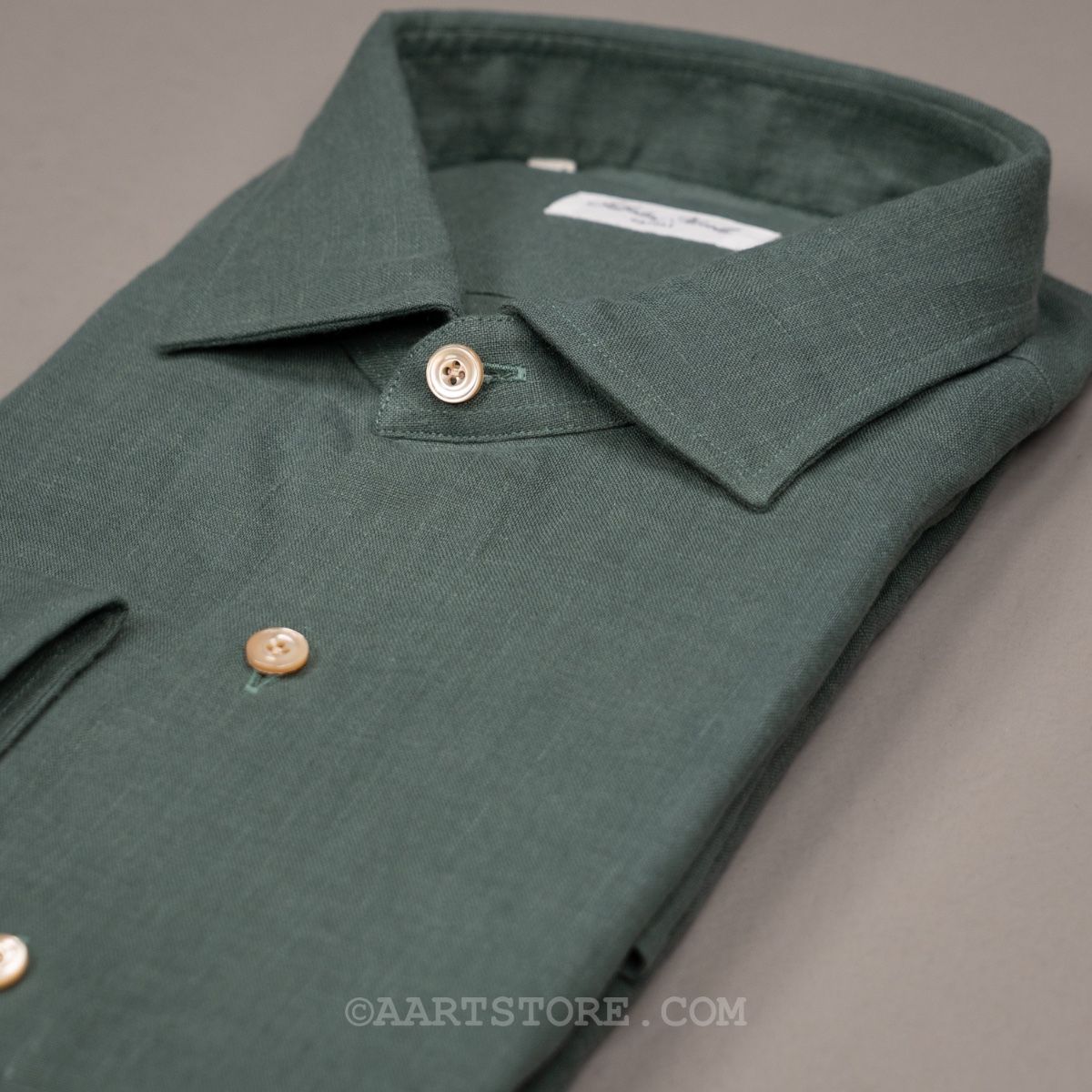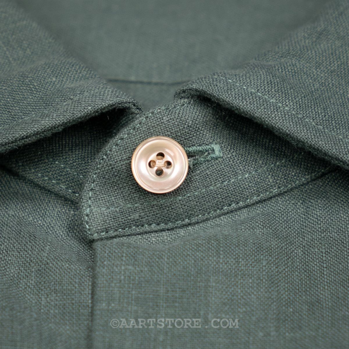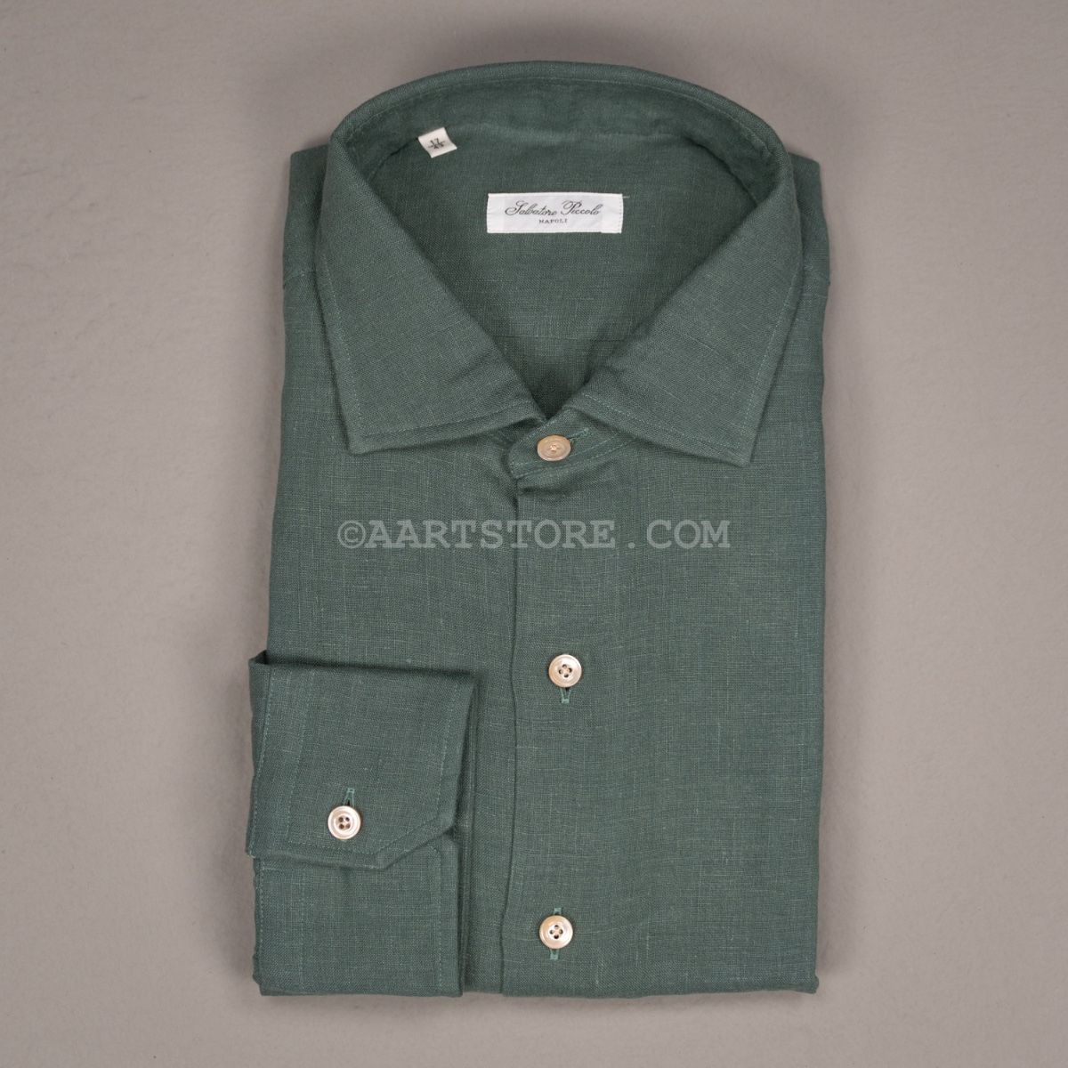 Salvatore Piccolo is een Napolitaanse shirtkunstenaar. Hij maakt een uniek en bijzonder rijk shirt dat zich onderscheidt van de massa. Het zijn handgemaakte hemden gesneden uit niet alledaagse stoffen die vaak speciaal voor Salvatore geweven worden. Dit shirt zit vol met details, maar mijn favoriet is wel de extra coupnaad in de mouw waardoor deze de natuurlijke kromming van de arm beter volgt. De linnen die Slvatore gebruikt voor dit shirt komt uit Japan en is opvallend stevig en compact geweven. Hierbij blijft de luchtige nonchalance van linnen wel behouden, maar het geeft het shirt wel body. Hierdoor heeft dit Piccolo shirt iets stevigs dat heel goed past bij afgewassen zomerdenims en sneakers.