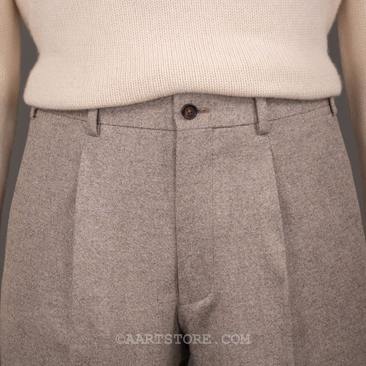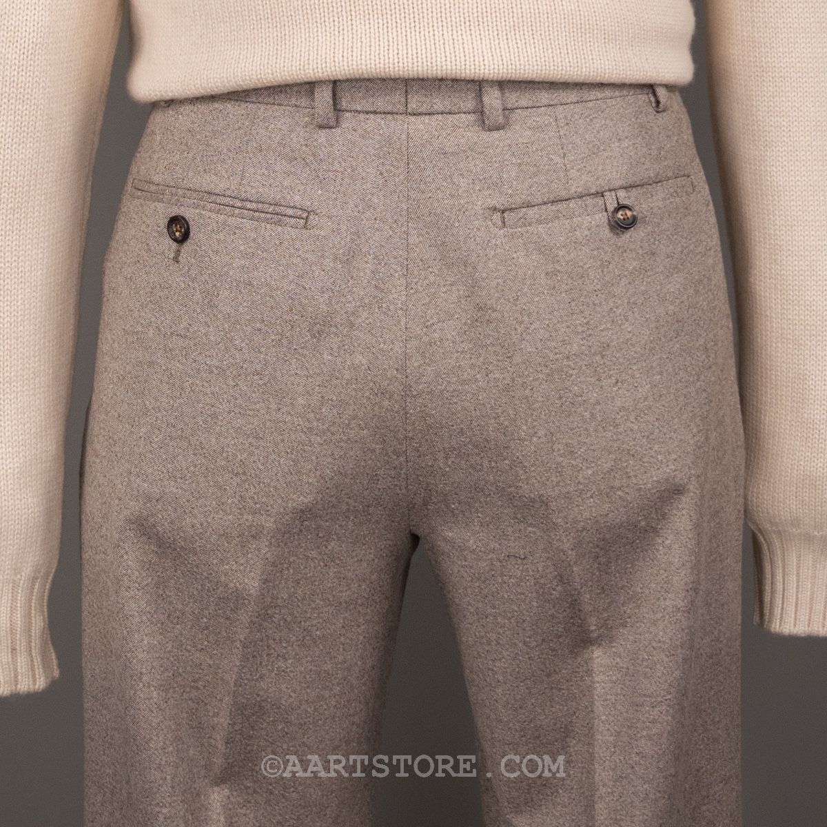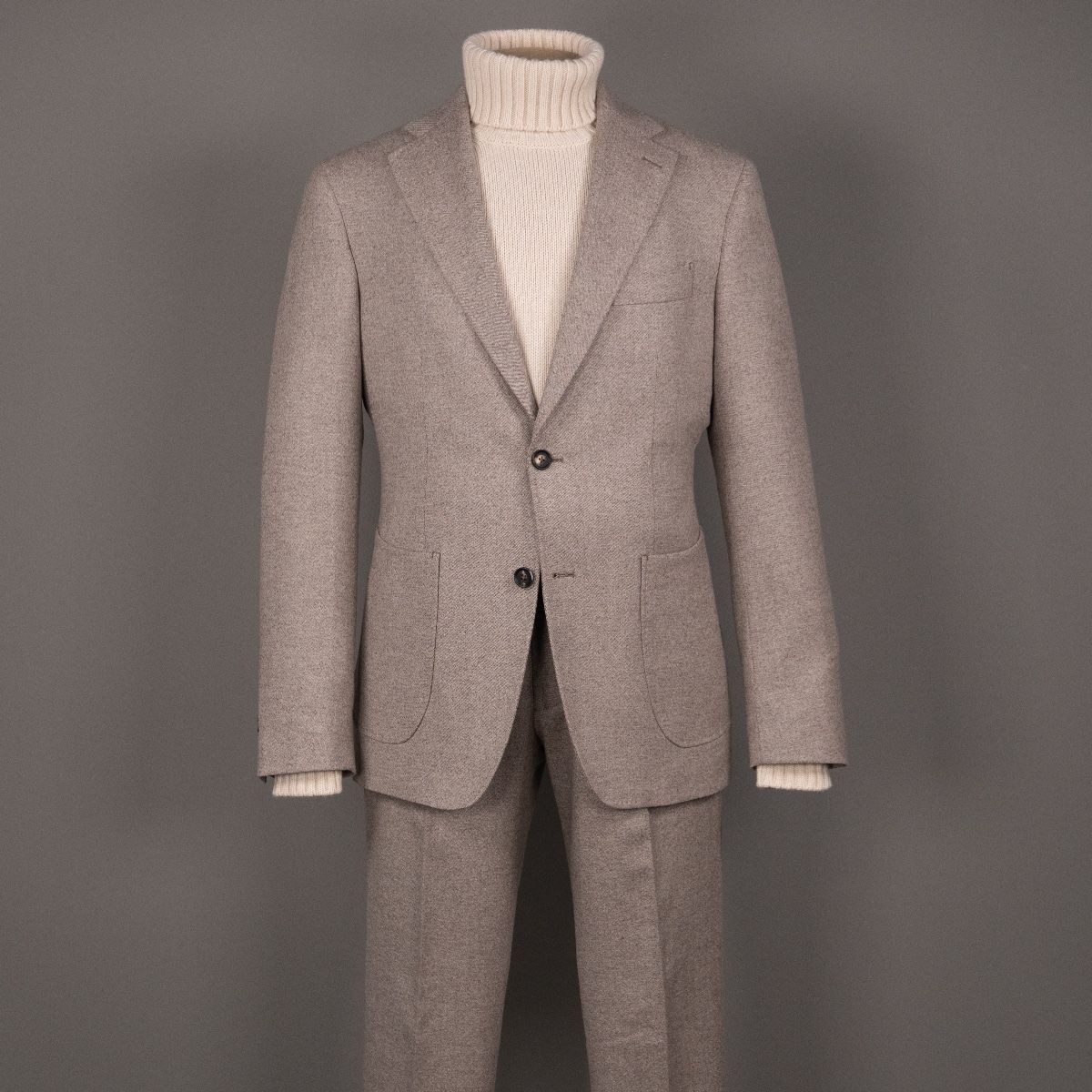 Dit nieuwe AART pak is een stevige evolutie van ons eerdere werk. Gemaakt met een super lichte maar wel full canvas constructie zweeft het jasje om je heen. Daar past het iets bredere revers en de napolitaanse schouder perfect bij.Net iets meer casual dan standaard is het prima te dragen als formeel pak, maar ook mooi met een trui of zelfs als los jasje. De broek heeft de uitstraling van een chino, met een in stof gemaakte binnenband en doorgestikte zoom. Door de pasvorm met één bandplooi is de broek moderner en iets losser, zonder dat het een Volendammer wordt. Elegant is hier het sleutelwoord. Gemaakt van Drago (een Italiaanse top-wever) flanel die door stretch iets meer comfort biedt dan je zou verwachten. En dan tot slot de kleur, die kan ik proberen te omschrijven maar die moet je gewoon ervaren en aanzien…