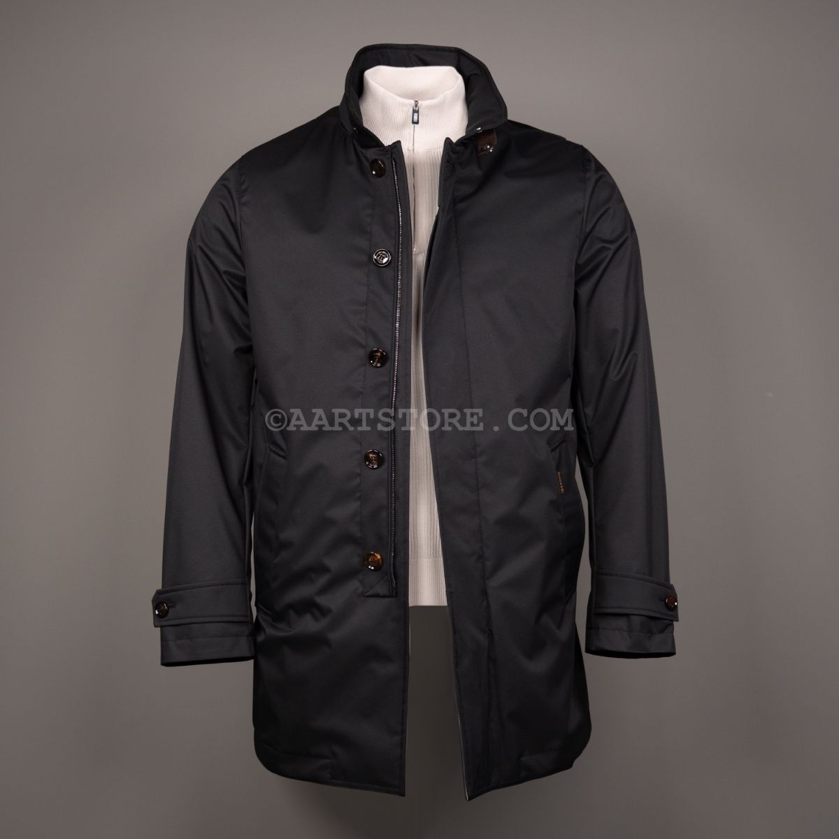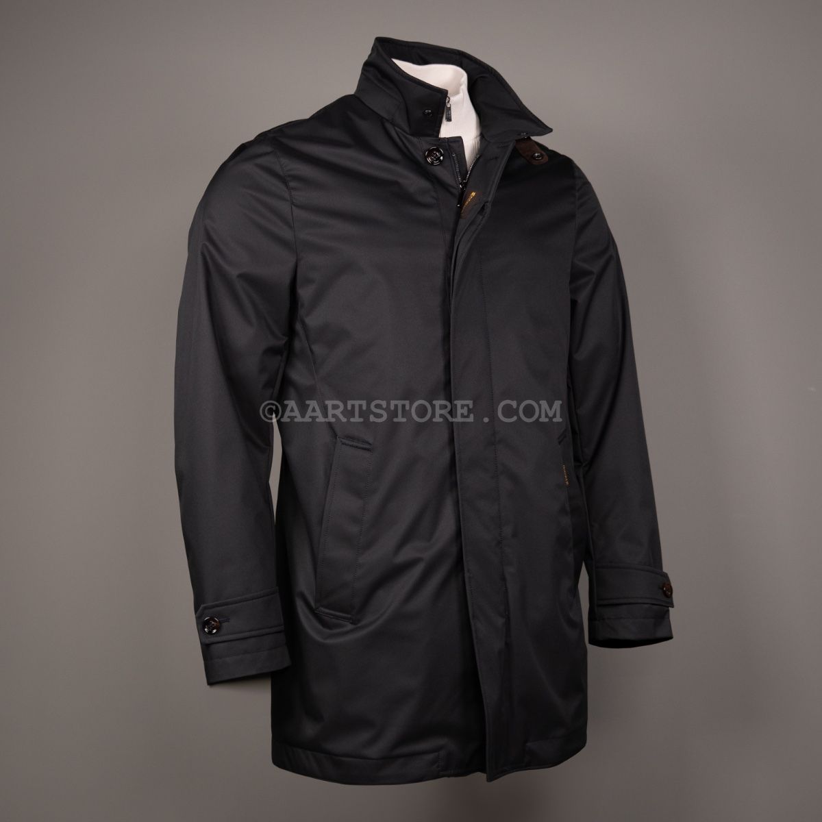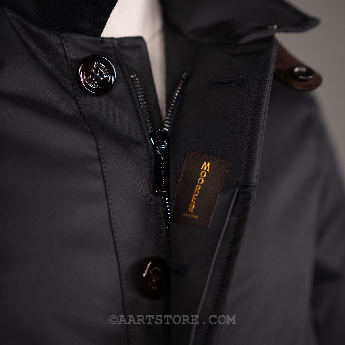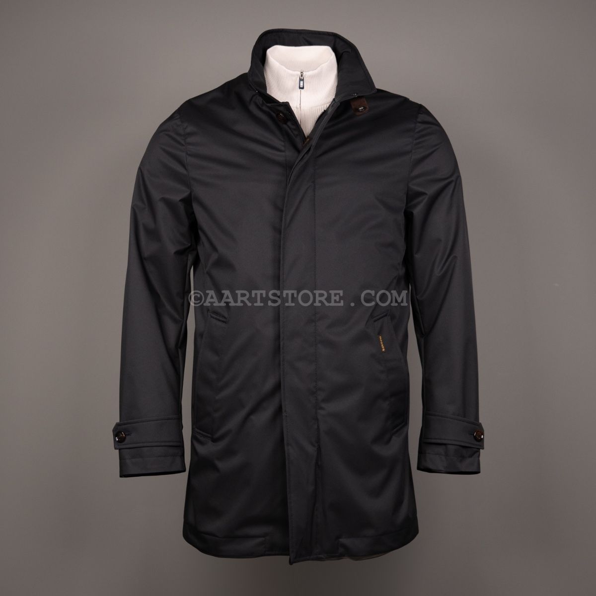 Bij MooRER is het de combinatie van design, de gebruikte materialen én de aandacht voor details waarmee het merk zich onderscheidt van de rest. Dit merk uit Verona behoort tot de absolute top op het gebied van jassen en dat zie en voel je. De Duca is een technische regenjas zoals de Italiaanse man graag draagt op de scooter. Gemaakt van waterafstotend materiaal dat tegen een stootje kan, gesloten met een ritssluiting en met rugplooien voor extra bewegingsruimte. Dit is een jas voor bij en over ongeveer iedere outfit. Wij zouden de Duca dragen bij een chino, instappers, shirt en dun truitje voor de moderne business look.
