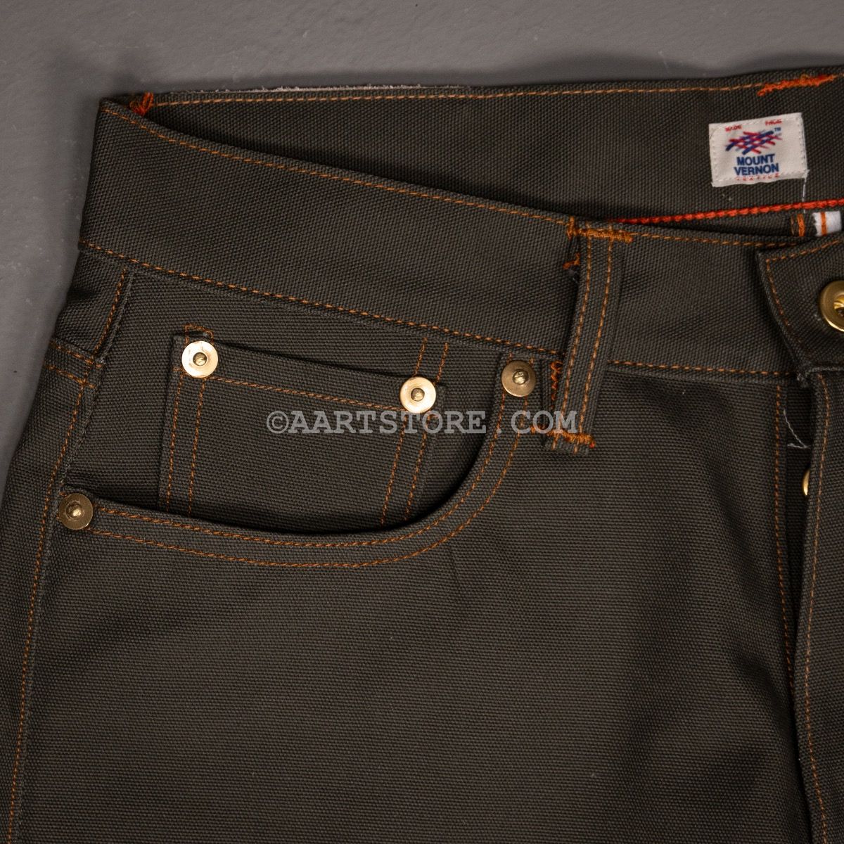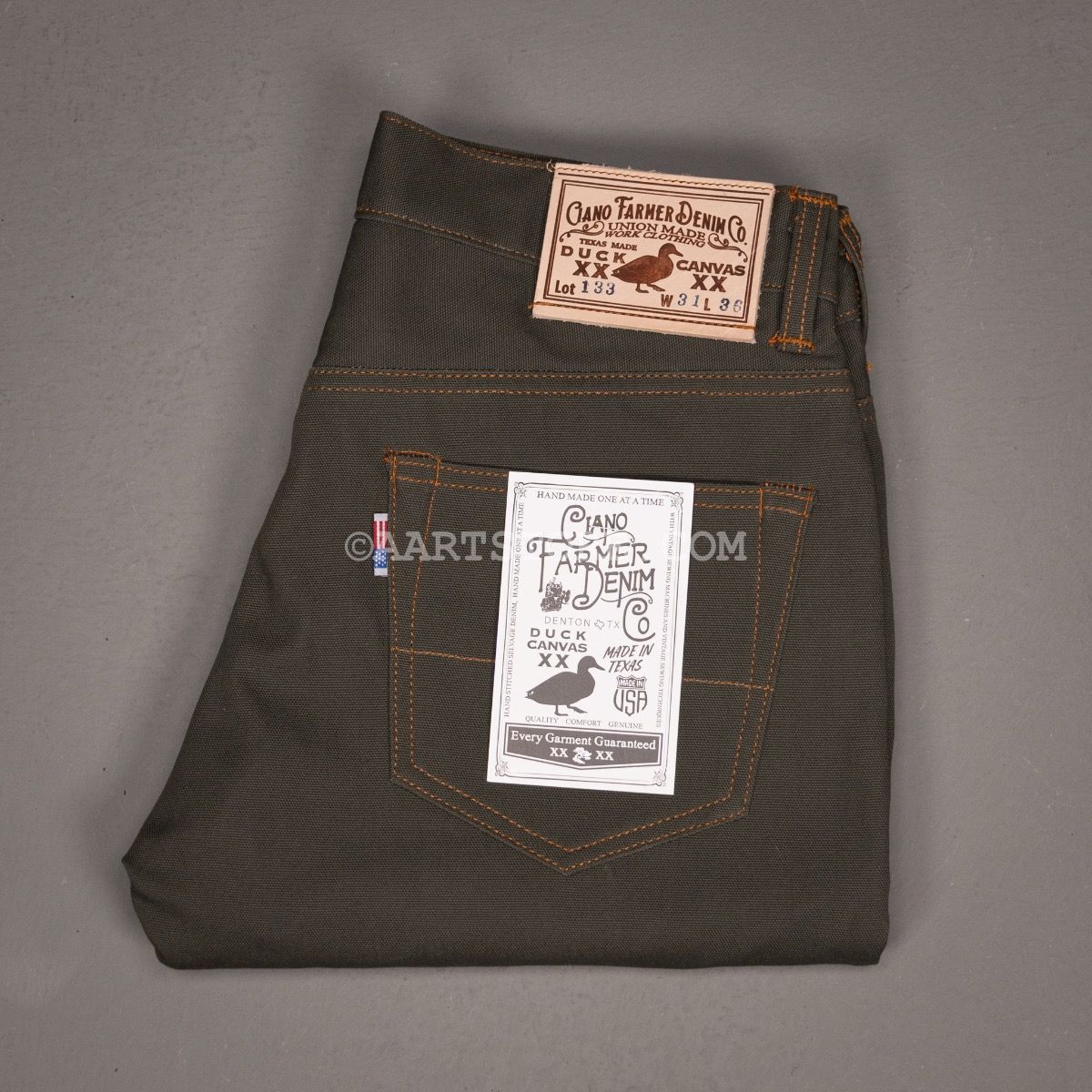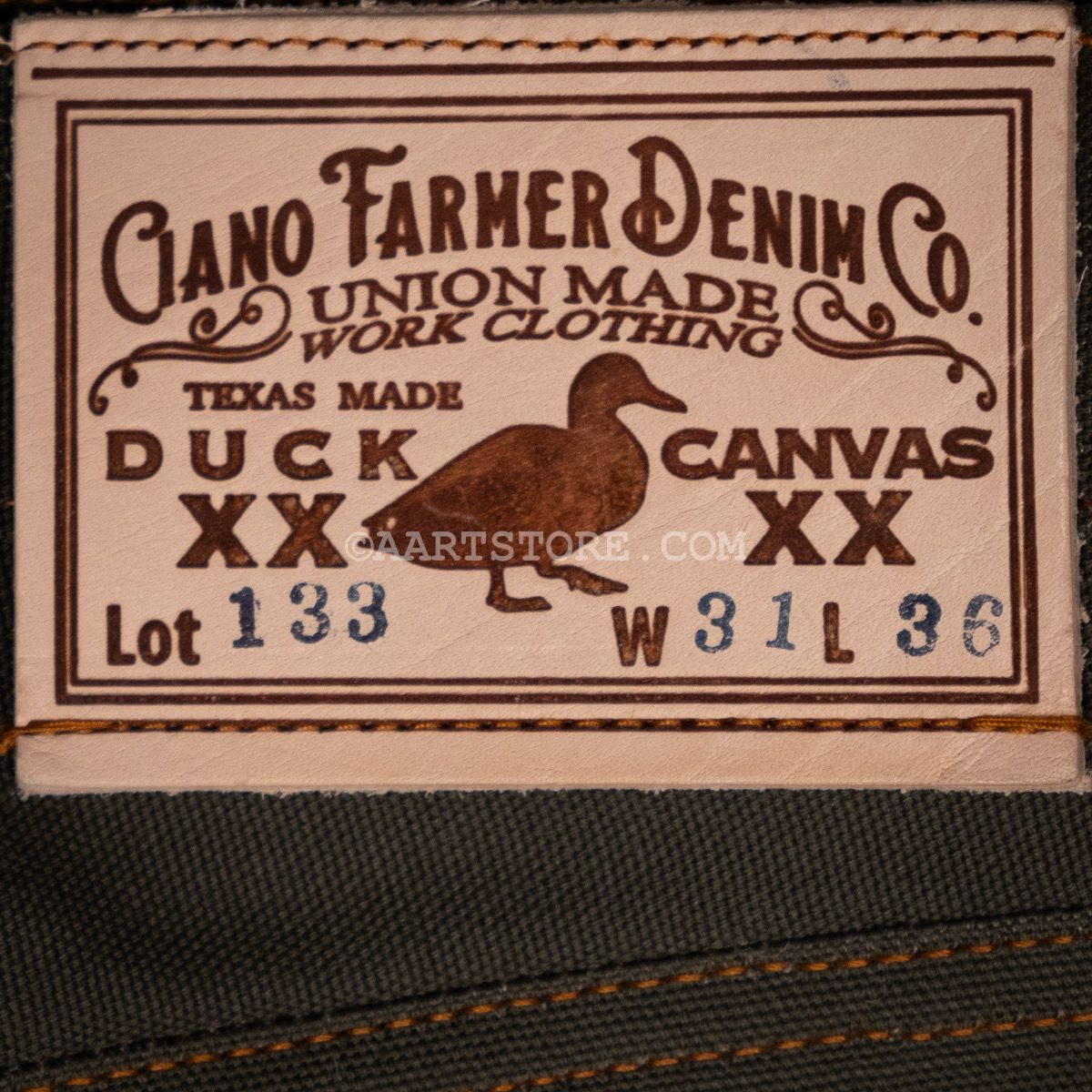 Onze vriend Ciano Farmer maakt jeans zoals 100 jaar gelden in zijn kleine werkplaats in Denton, Texas, USA. Alles aan zijn jeans is handgemaakt met materialen en accessoires die 100% gemaakt zijn in de VS. Hij gebruikt doeken die niet meer gemaakt worden, deadstock rollen 'echte' denim die soms wel 60 jaar oud zijn. De knopen en rivets zijn ook afkomstig van oude voorraden, verzameld uit verlaten fabrieken. Daarmee zijn dit de laatste 100% Amerikaanse jeans, een unieke kans om een stuk draagbare geschiedenis te bezitten. Deze broek is gemaakt van Duck Canvas, een stevige stof met een andere (1x1) weving dan denim. Een heel stevige stof die ook gebruikt wordt voor werkkleding.