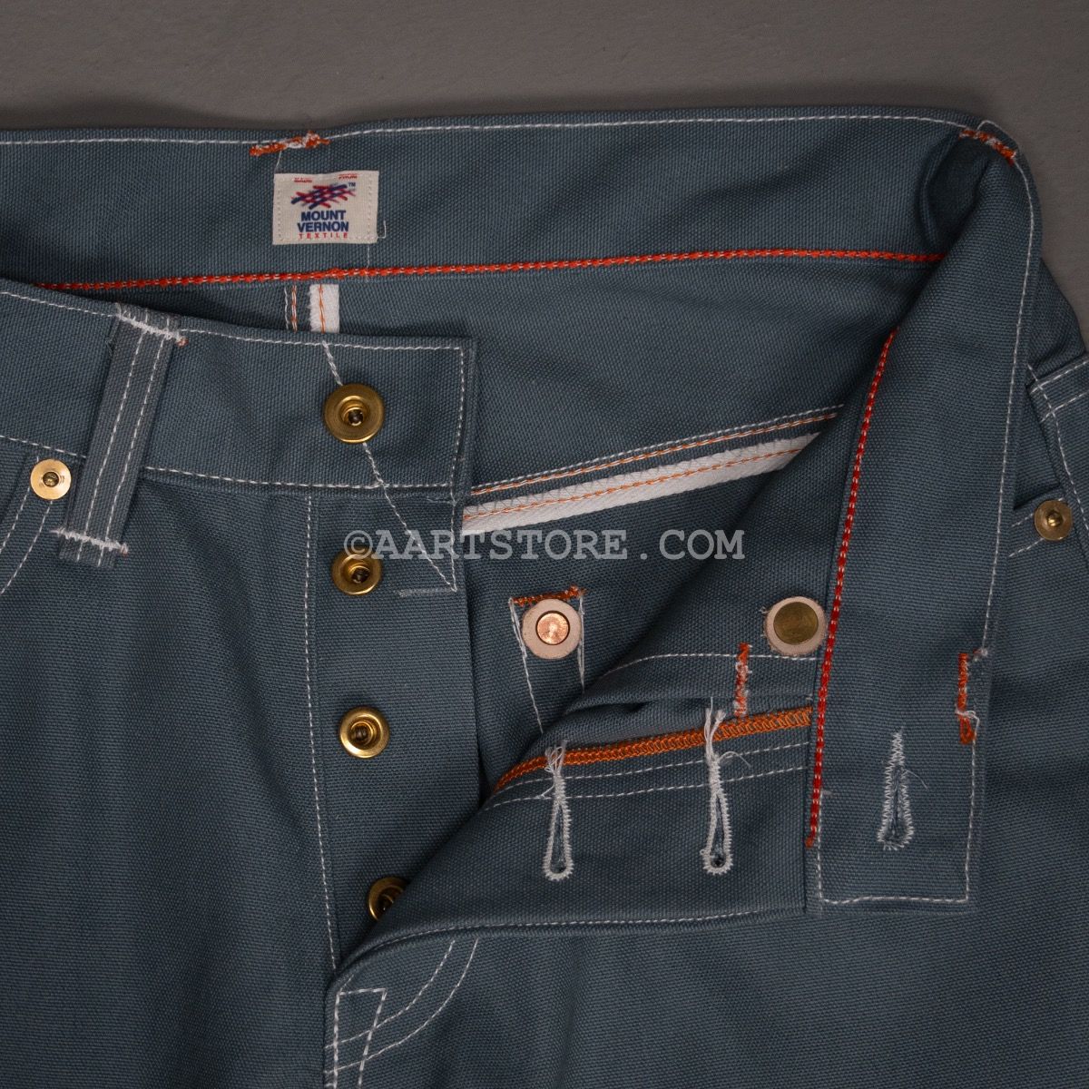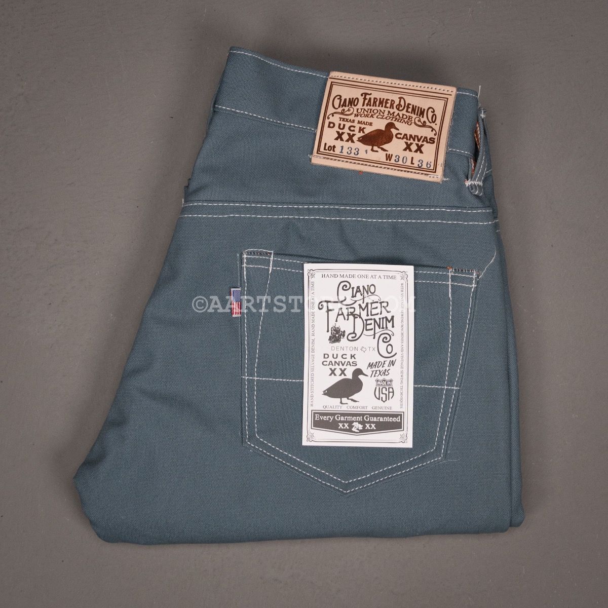Onze vriend Ciano Farmer maakt jeans zoals 100 jaar gelden in zijn kleine werkplaats in Denton, Texas, USA. Alles aan zijn jeans is handgemaakt met materialen en accessoires die 100% gemaakt zijn in de VS. Hij gebruikt doeken die niet meer gemaakt worden, deadstock rollen 'echte' denim die soms wel 60 jaar oud zijn. De knopen en rivets zijn ook afkomstig van oude voorraden, verzameld uit verlaten fabrieken. Daarmee zijn dit de laatste 100% Amerikaanse jeans, een unieke kans om een stuk draagbare geschiedenis te bezitten. Deze broek is gemaakt van Duck Canvas, een stevige stof met een andere (1x1) weving dan denim. Een heel stevige stof die ook gebruikt wordt voor werkkleding.