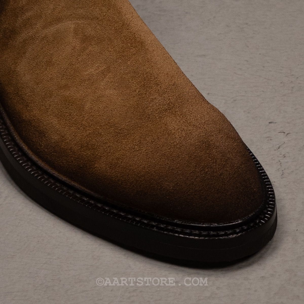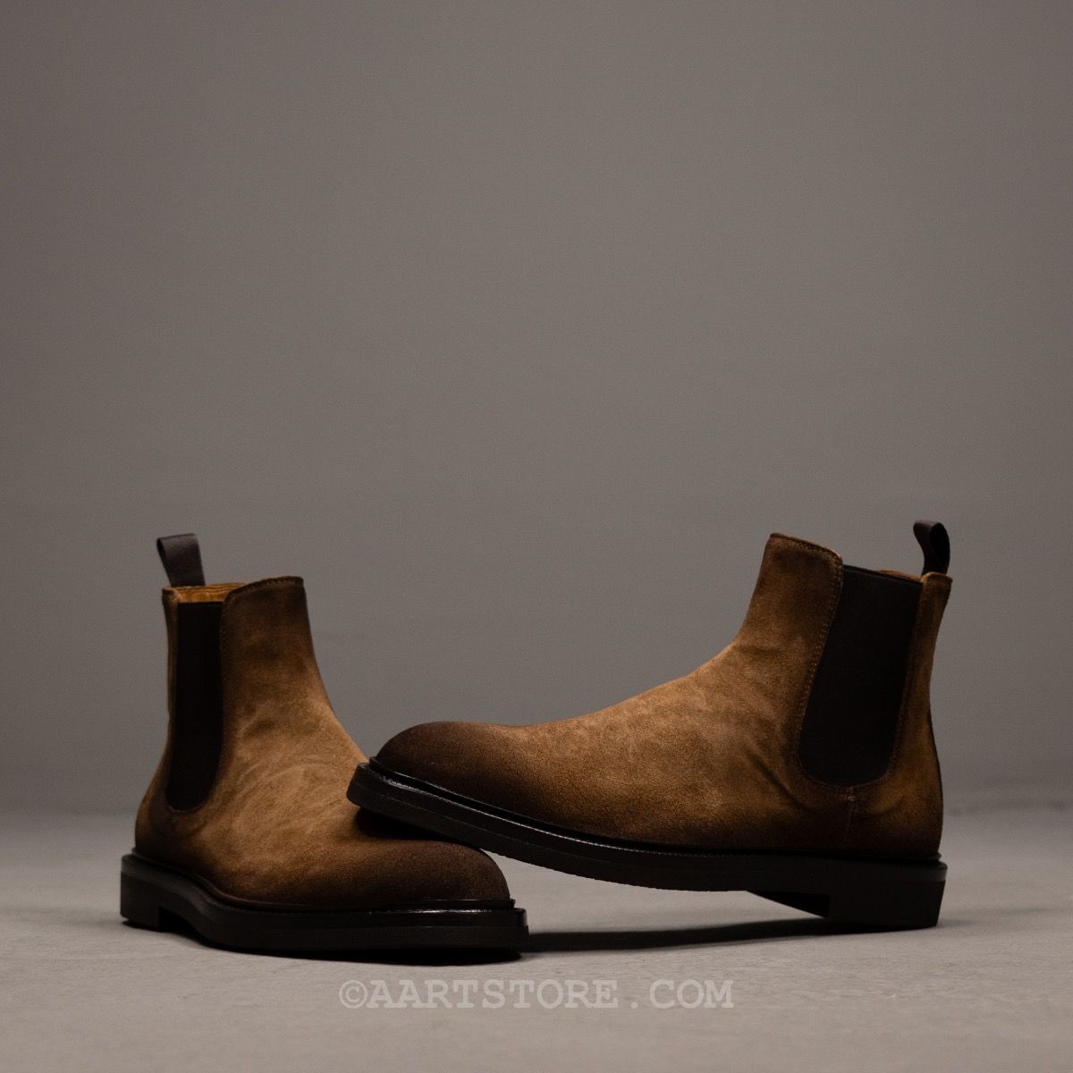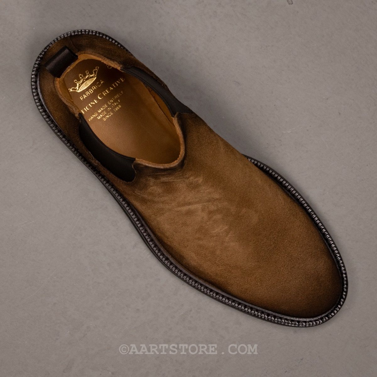 Officine Creative is een Noord-Italiaanse schoenmaker die de dingen op een traditionele manier net anders doet. De schoenen worden met de hand gemaakt op de traditionele (correcte) manier, maar de modellen en de finishing maakt dit juist eigentijds en cool. Deze Dude is een moderne interpretatie van de tijdloze Chelsea boot, een makkelijke laars met comfortabel elastiek aan de zijkanten. Gemaakt van fijne ‘cashmire’ suède, een kwaliteit die een rijke uitstraling combineert met zachtheid. Het hand geverfde kleureffect geeft de schoen een casual effect dat perfect past bij vintage denims en corduroy.