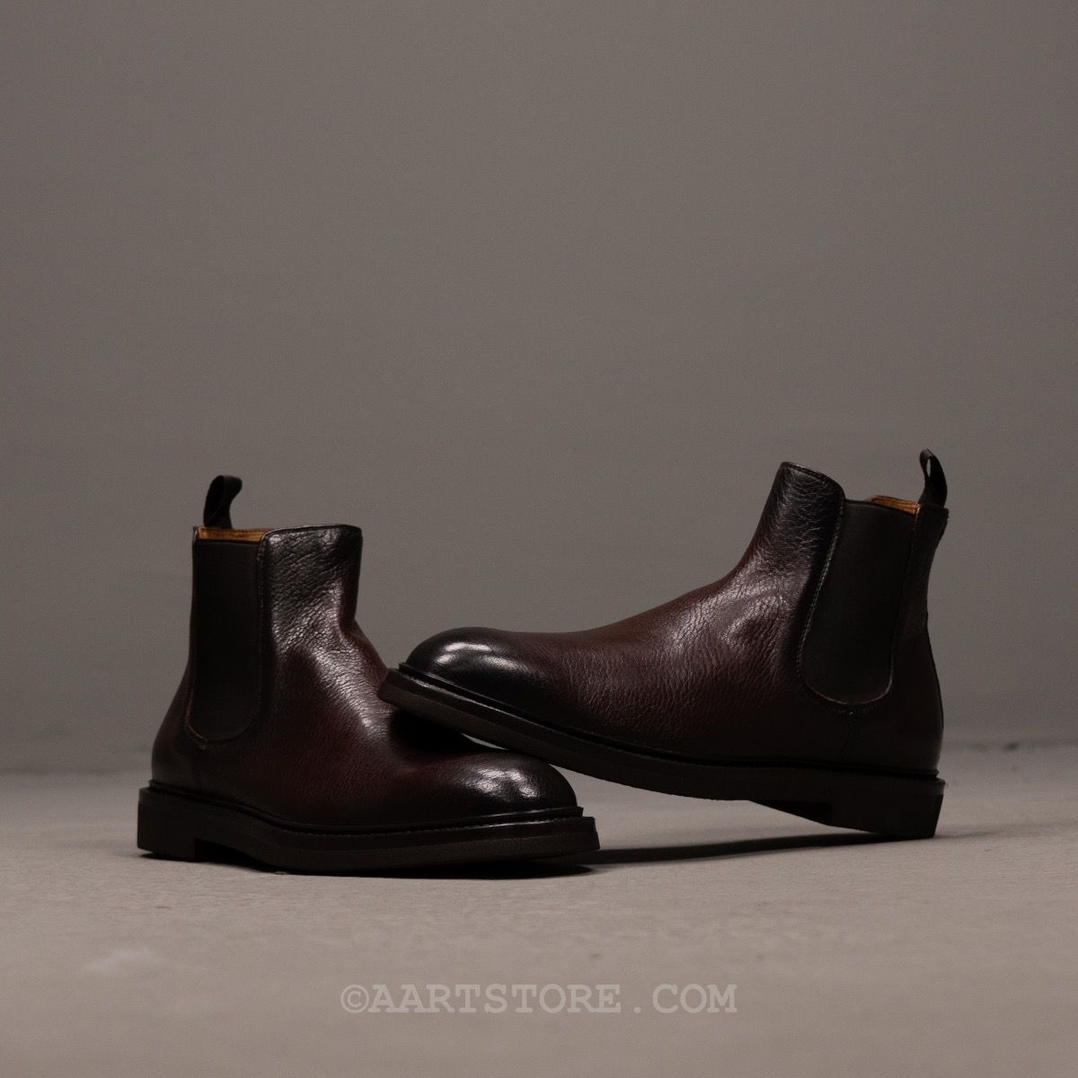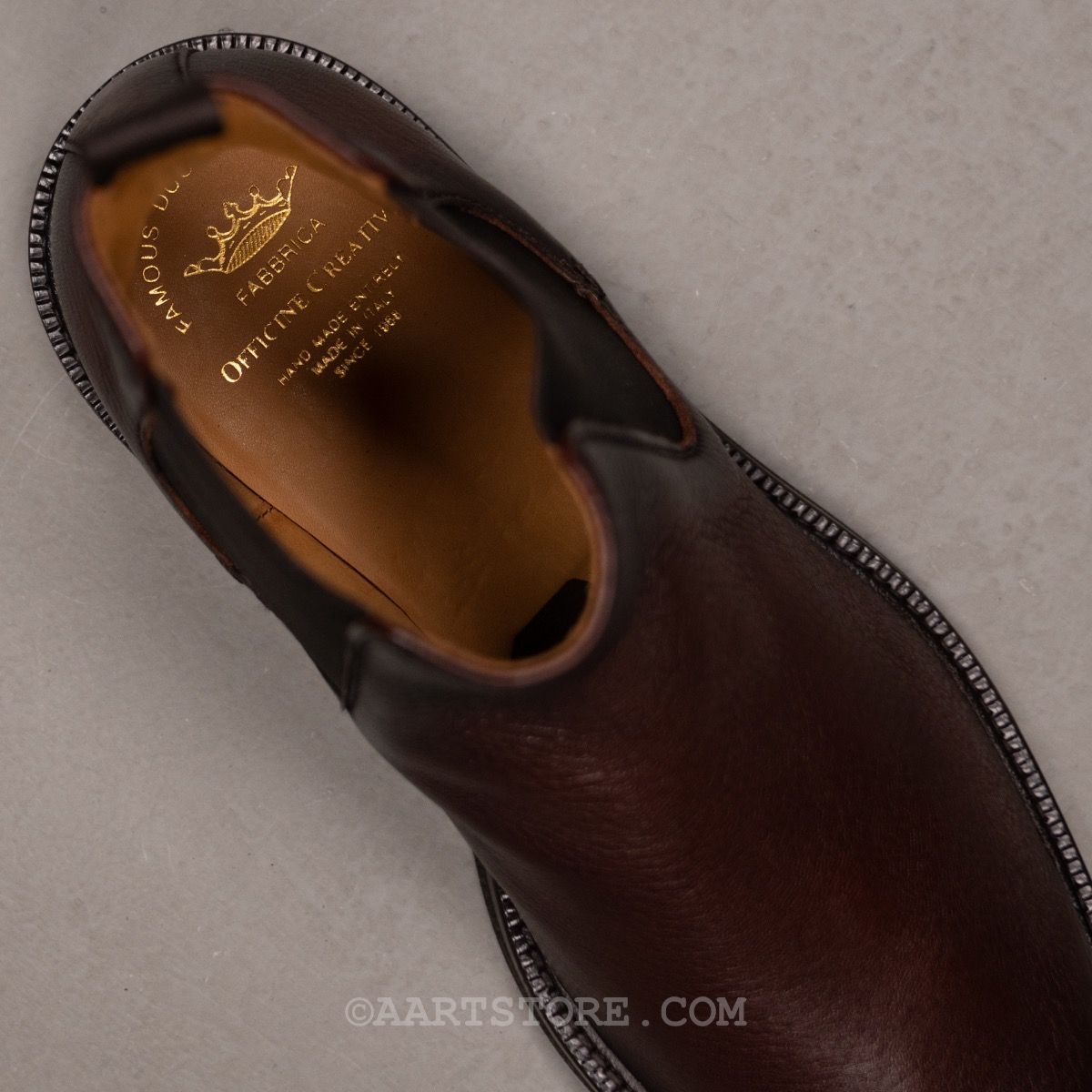 Officine Creative is een Noord-Italiaanse schoenmaker die de dingen op een traditionele manier net anders doet. De schoenen worden met de hand gemaakt op de traditionele (correcte) manier, maar de modellen en de finishing maakt dit juist eigentijds en cool. Deze Dude is een moderne interpretatie van de tijdloze Chelsea boot, een makkelijke laars met comfortabel elastiek aan de zijkanten. Het gebruikte hertenleer is onvoorstelbaar zacht en voegt zich naar de voet en looppatronen van de drager. De constructie heeft een zachte leren tussenzool met daaronder een lichtgewicht caoutchouc (natuurlijk rubber) buitenzool. De schoen ziet er robuust uit maar is juist heel licht en daarmee heel plezierig om te dragen, elke dag weer.