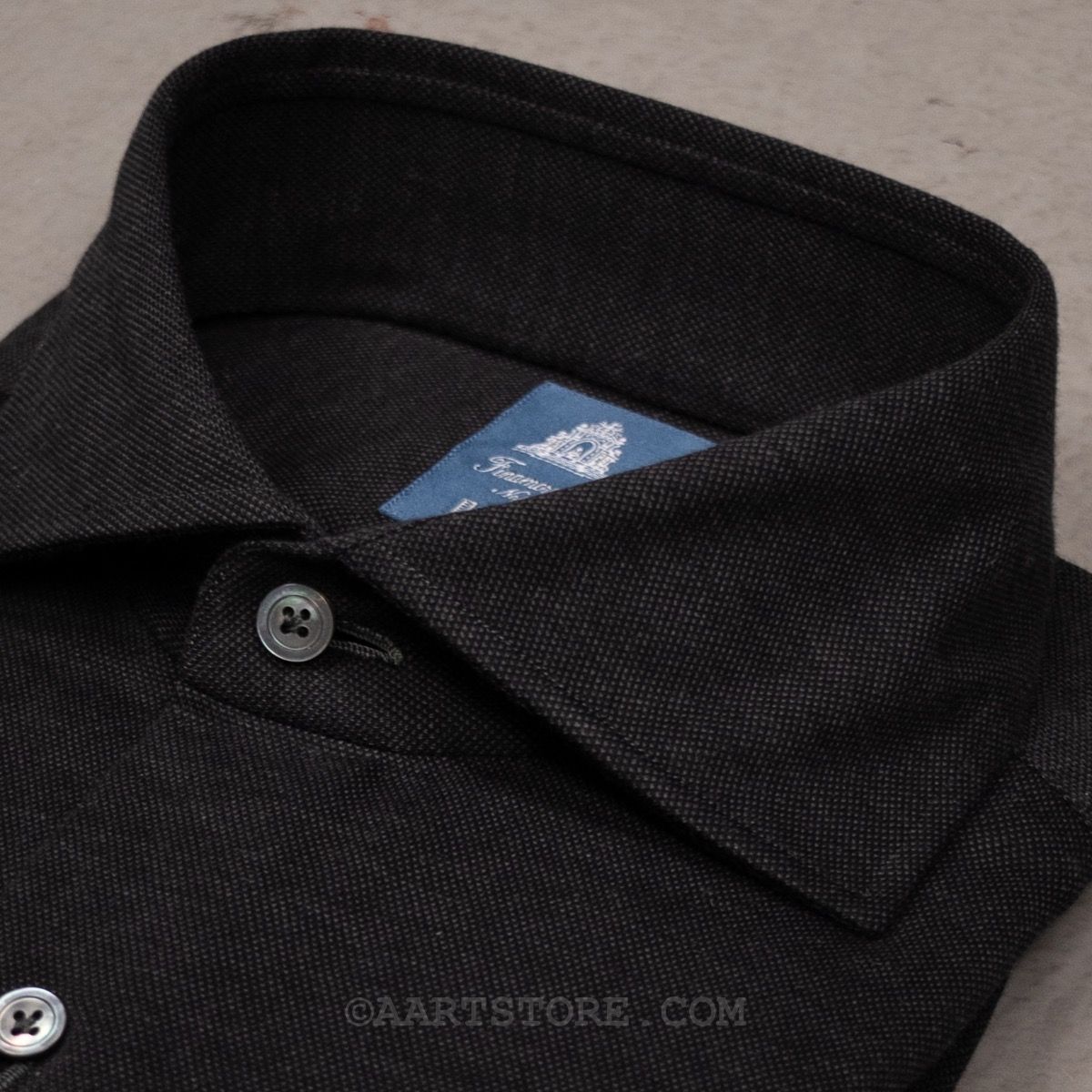 De shirts van Finamore behoren tot de wereldwijde top. Met veel handgemaakte details is dit het perfecte Napolitaanse shirt. De kraag is met een handsteek vastgezet, de mouwen hebben typisch Italiaanse plooitjes. De pasvorm is aan het lichaam gesneden maar wel met voldoende comfort met een genereuze lichaams- en mouwlengte. Dit shirt is een van de bijzondere shirts van de herfstcollectie. Het is gemaakt van een compacte, fijne pique, het materiaal van traditionele polo’s. Toch heeft dit shirt een cleane uitstraling en is het perfect te combineren met een jasje. Tot slot een kleine waarschuwing: het dragen van Finamore shirts kan verslavend werken…
