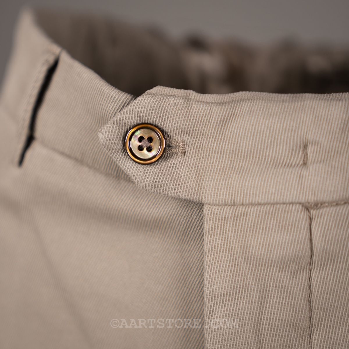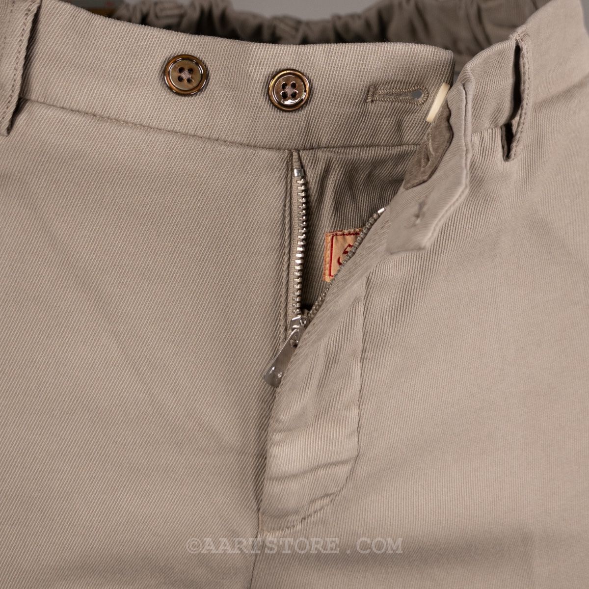 Pescarolo is een Napolitaanse broekenmaker die luxe combineert met een geheel eigen visie op hoe een broek moet zitten en vallen. Een prachtig bedrijf van twee jonge mannen die in staat zijn kunsten en stijlen van voorbije generaties te vertalen naar het nu. De Evo is de Napolitaanse visie op de klassieke chino. Gemaakt met elastiek in de band dat je niet ziet bij het dragen maar wel voelt. Deze stof met zichtbare twill is gemaakt van lyocel, katoen en stretch en voelt boterzacht en luchtig. Dit is een perfecte broek onder een jasje maar de Evo staat ook mooi bij een shirt of polo.