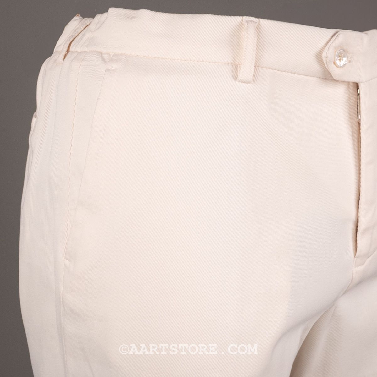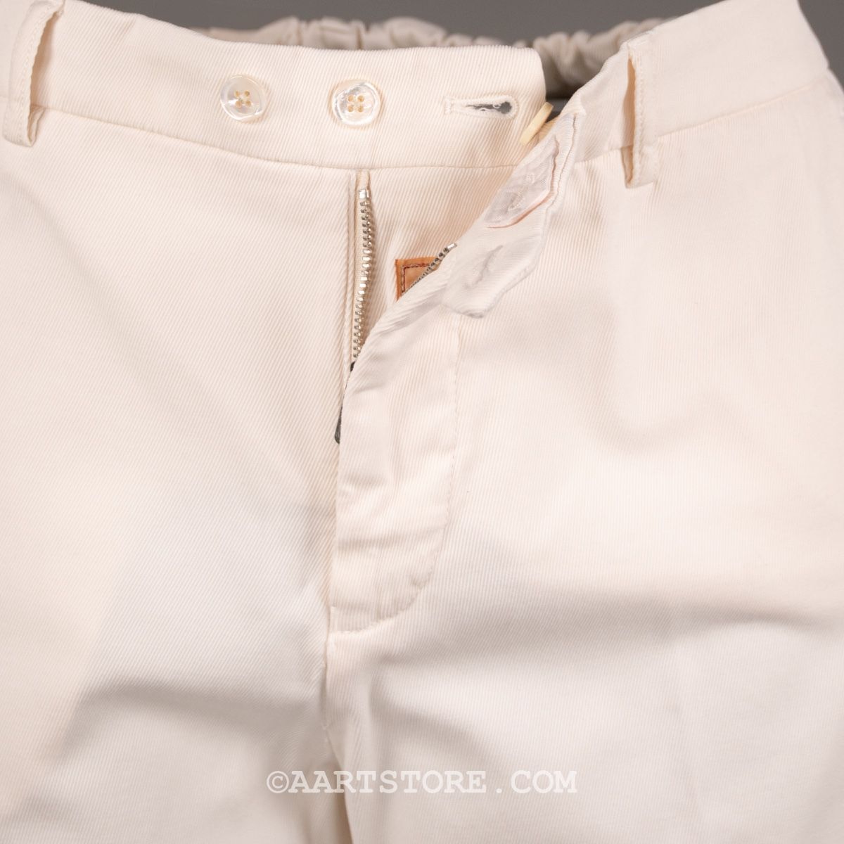 Pescarolo is een Napolitaanse broekenmaker die luxe combineert met een geheel eigen visie op hoe een broek moet zitten en vallen. Een prachtig bedrijf van twee jonge mannen die in staat zijn kunsten en stijlen van voorbije generaties te vertalen naar het nu. De Evo is de Napolitaanse visie op de klassieke chino. Gemaakt met elastiek in de band dat je niet ziet bij het dragen maar wel voelt. Deze stof met zichtbare twill is gemaakt van lyocel, katoen en stretch en voelt boterzacht en luchtig. Dit is een perfecte broek onder een jasje maar de Evo staat ook mooi bij een shirt of polo.