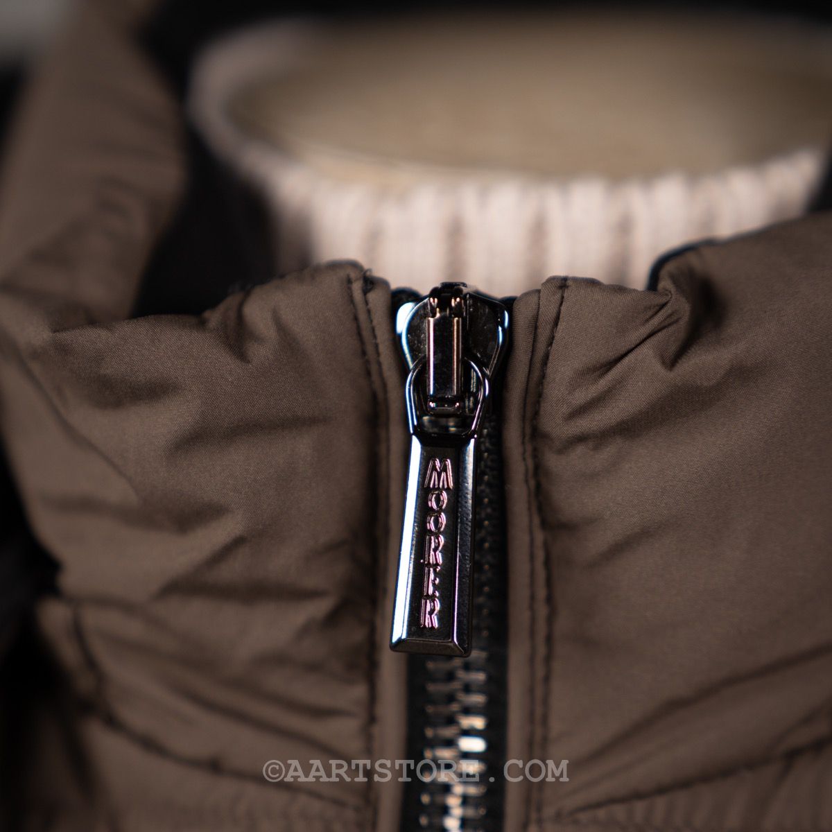 Bij MooRER is het de combinatie van design, de gebruikte materialen én de aandacht voor details waarmee het merk zich onderscheidt van de rest. Dit merk uit Verona behoort tot de absolute top op het gebied van jassen en dat zie en voel je. Deze bodywarmer, de Fire, is speciaal ontwikkeld voor de herfst. Het is een lekker stevig vest, donsgevoerd met een iets langere lengte en een afneembare capuchon. Uiteraard is de Fite gemaakt van een high end materiaal, de naam MooRER waardig. Dit is een perfect stuk voor het Nederlandse klimaat, zeker omdat het zowel los als over een colbert of licht jackje gedragen kan worden.