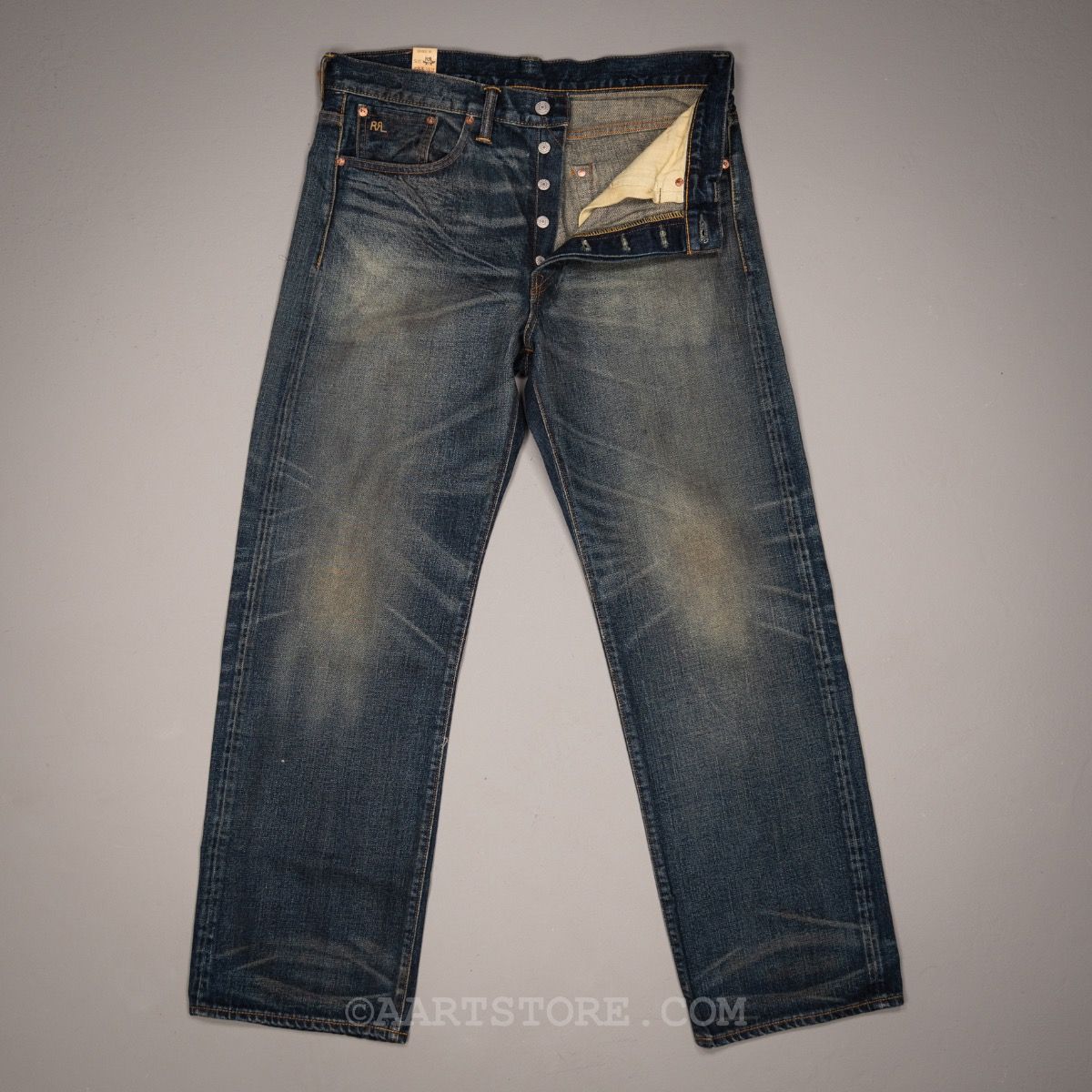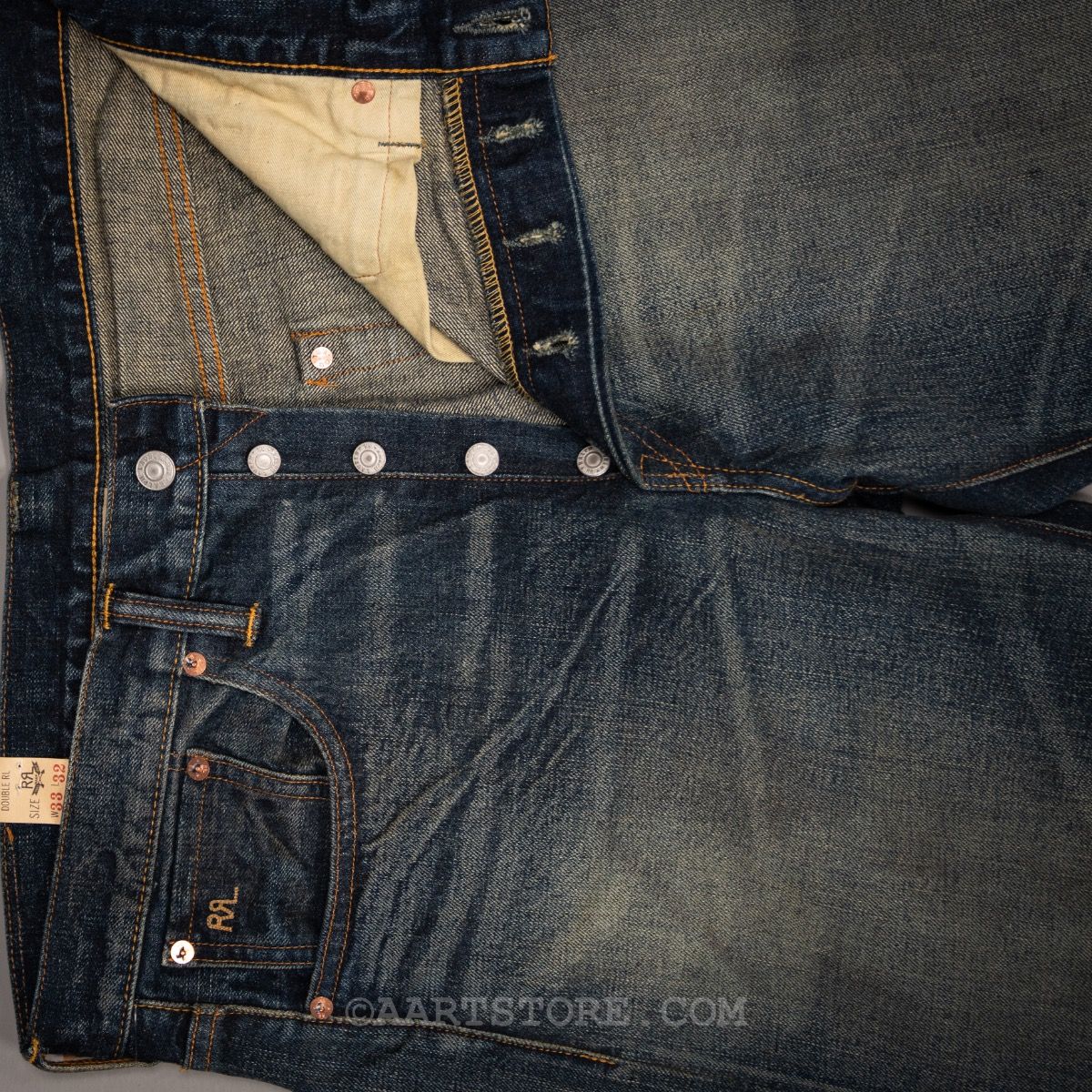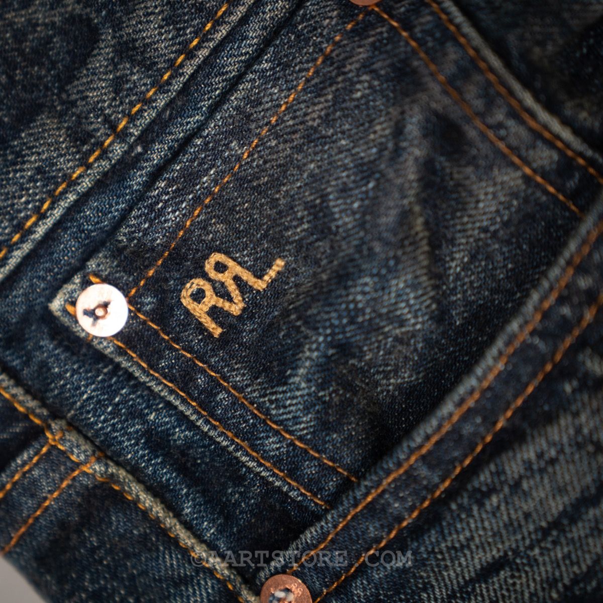RRL (je zegt Double RL) is een van de meest bijzondere labels in onze collectie. Het hobbyproject van grootmeester Ralph Lauren is vernoemd naar zijn ranch (de Ralph & Ricky Lauren ranch) in Colorado. Het label combineert authentieke Americana met traditionele maakwijzen en doeken. Het wordt in Nederland maar op 3 plekken verkocht en wereldwijd op minder dan 200, echt exclusief. Deze Givins denim is in de USA gemaakt van een traditionele non stretch selvedge denim, een echte spijkerbroek. De pasvorm is wijd en vol, een echte not fit denim zoals nu omarmd wordt door high fashion maar dan op een traditionele manier.
