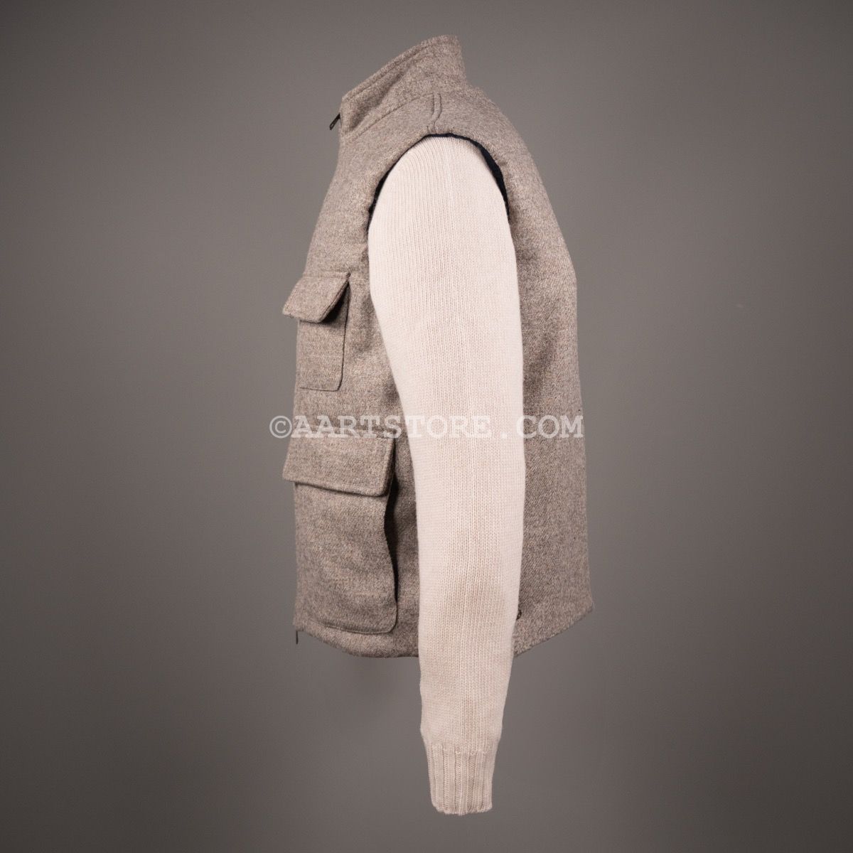 L’impermeabile is een van onze nieuwste merken maar tegelijkertijd is het ook een van de oudste merken in ons arsenaal. Het stamt uit de jaren na de eerste wereldoorlog als Italiaans antwoord op de toen mateloos populaire regenjassen van Britse merken als Aquascutum en Burberry. Daarna is het merk wat in vergetelheid geraakt totdat de huidige eigenaar het ‘vond’ in de nalatenschap van zijn vader… Dit Gunners vest is een lekker stevige bodywarmer die heel goed past bij de stoere uitstraling van de hele wintercollectie. Draag dit vest met een lekkere coltrui, suède boots en een Pescarolo broek en je bent klaar voor de winter.
