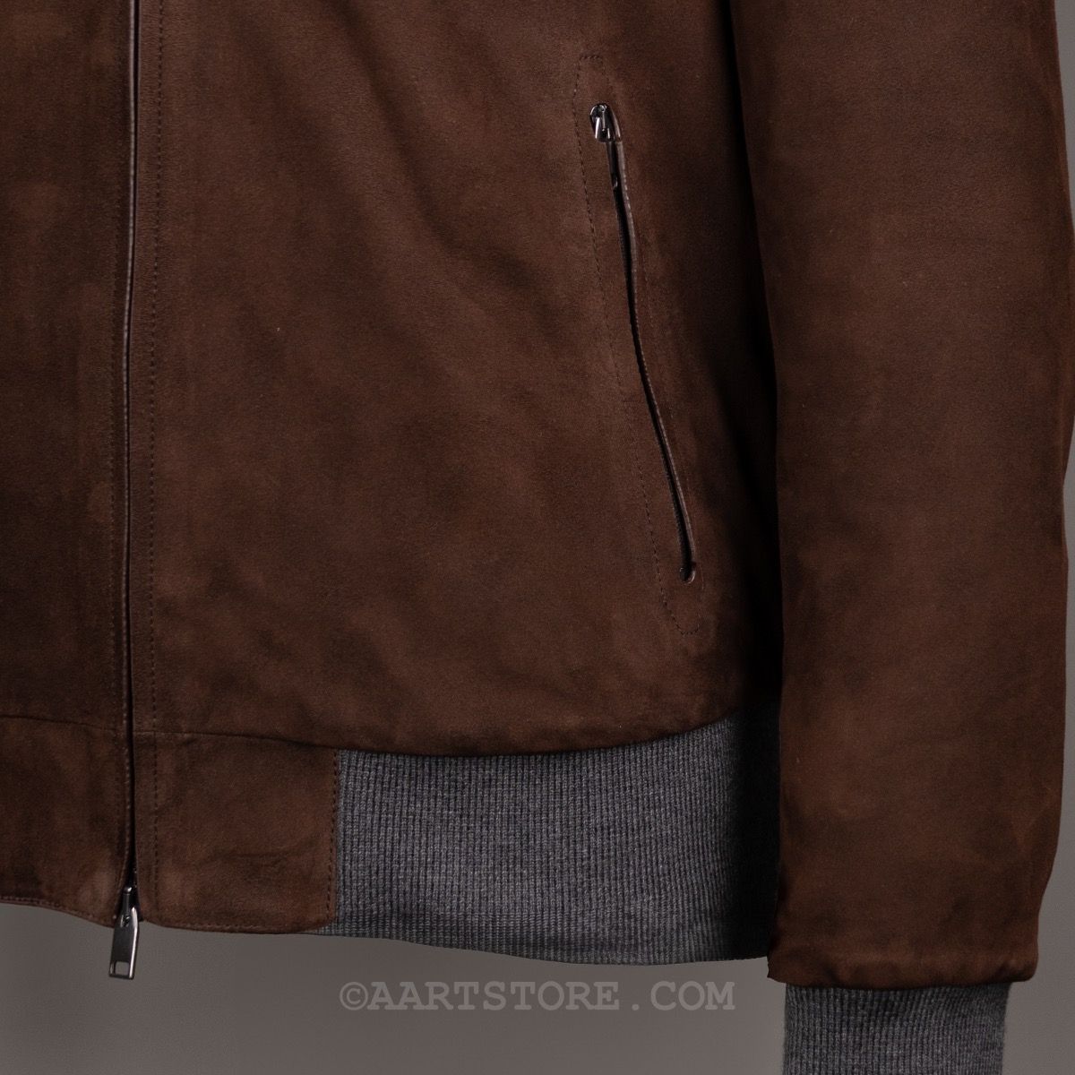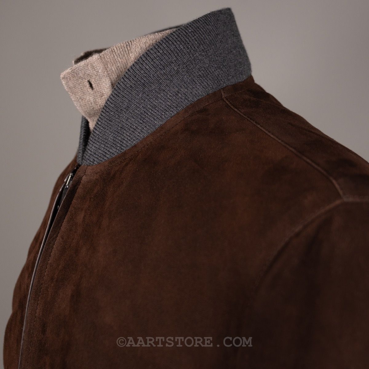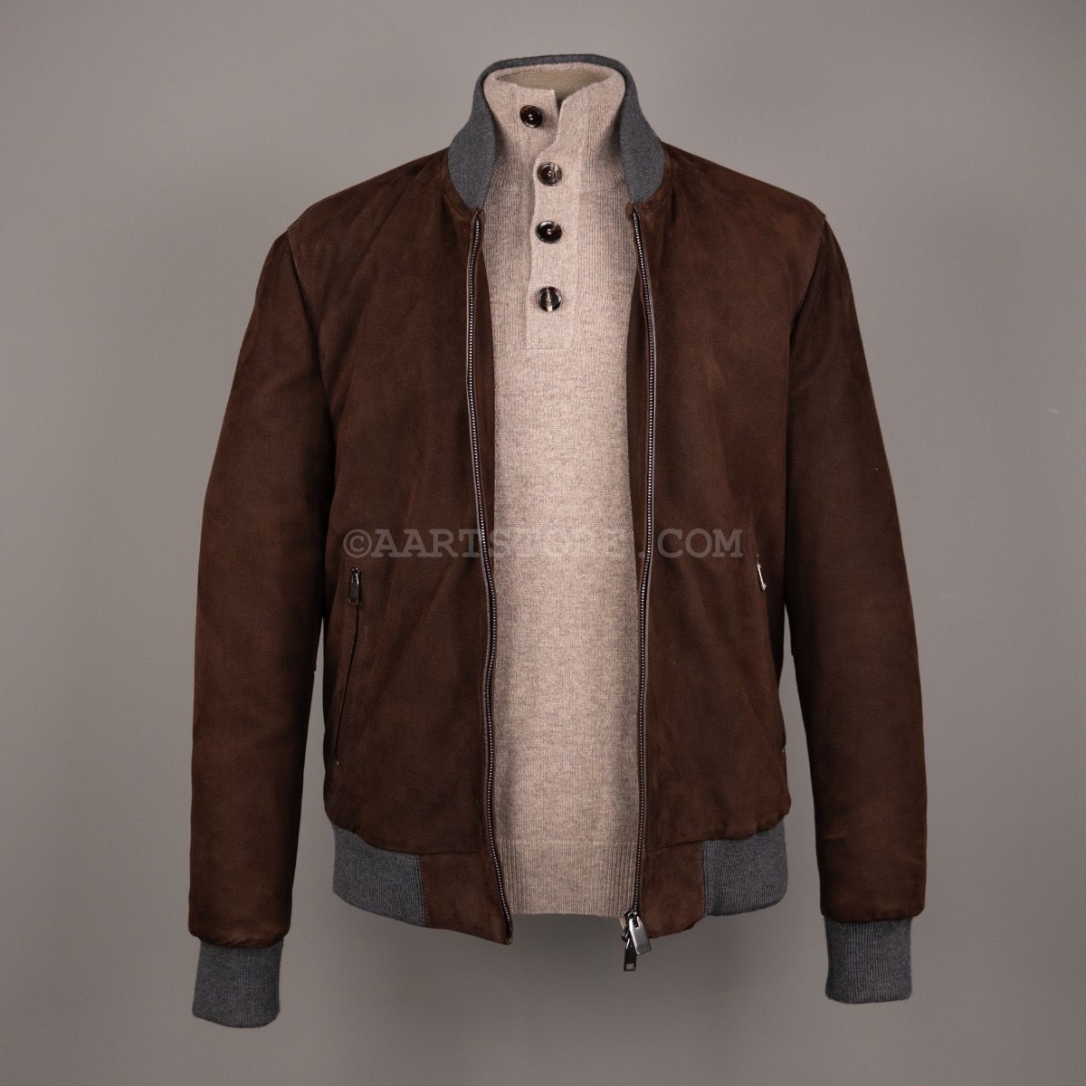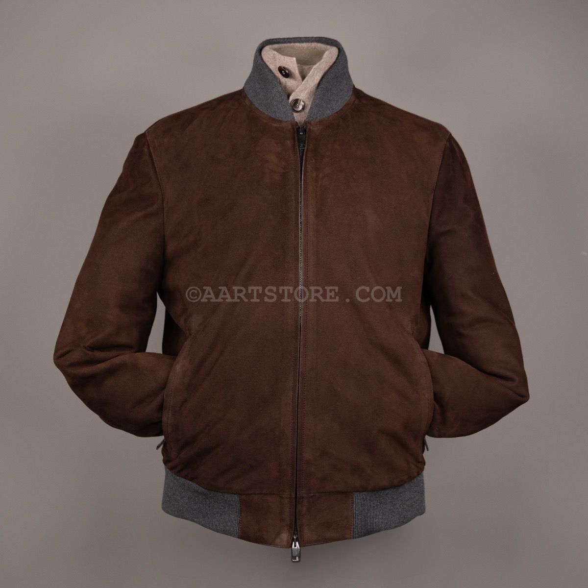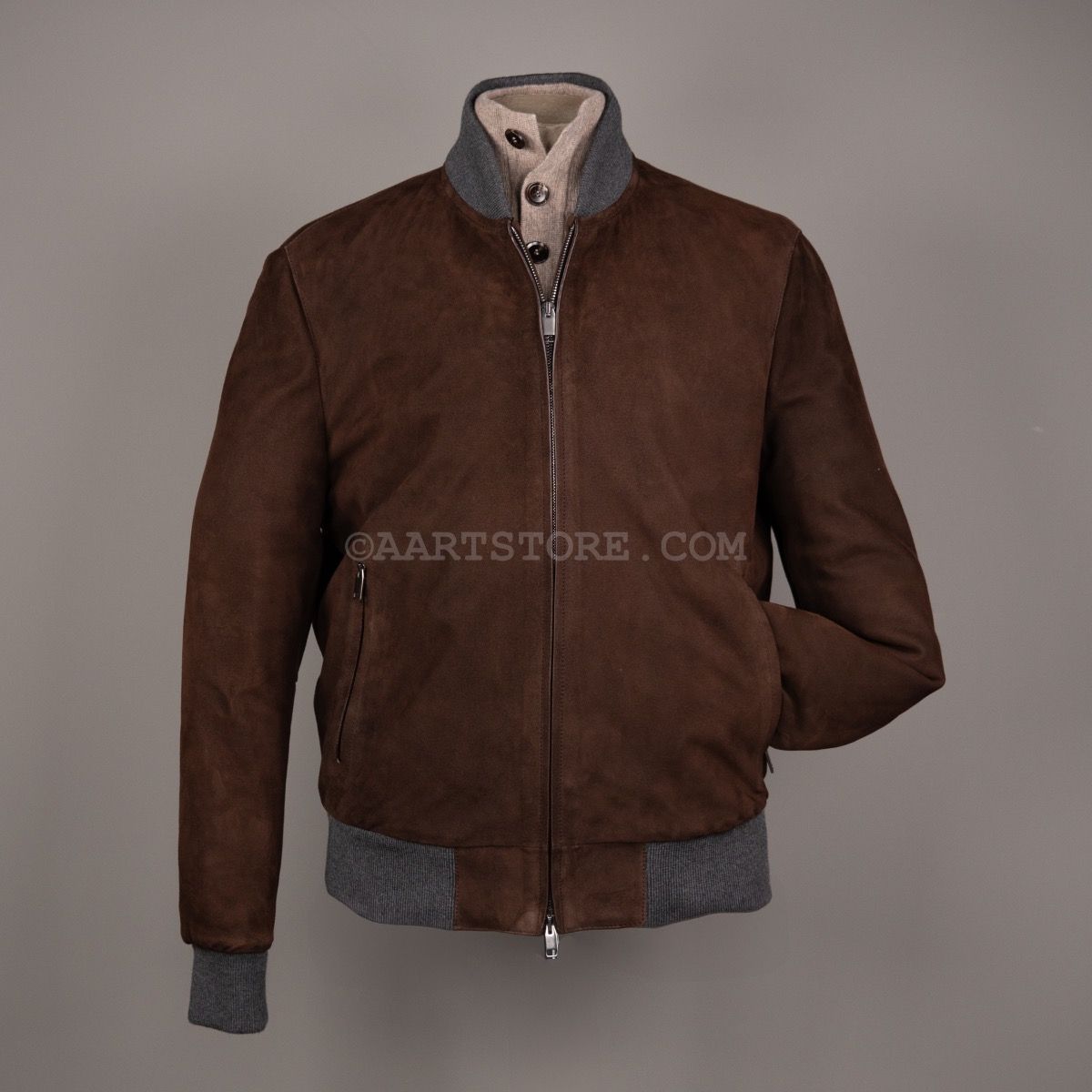 Brioni is een legende die eigenlijk geen introductie nodig heeft… Gesticht in Rome, in 1945 door kleermaker Nazareno Fonticoli en zakenman Gaetano Savini, heeft de kleermakerij sindsdien de grote der aarde gekleed en wordt het gezien als een baken van kwaliteit, kleermakerskunst en stijl. De Harris bomber is de meest hoogwaardige uitvoering van een tijdloze suède jack. Gemaakt van boterzacht suède in precies de juiste kleur. De manchetten en kraag in grijs cashmere geven het geheel een unieke, luxe uitstraling. Let ook even op de hoogte van de kraag, dit kleine verschil is nu precies waarom Brioni wereldberoemd is geworden.