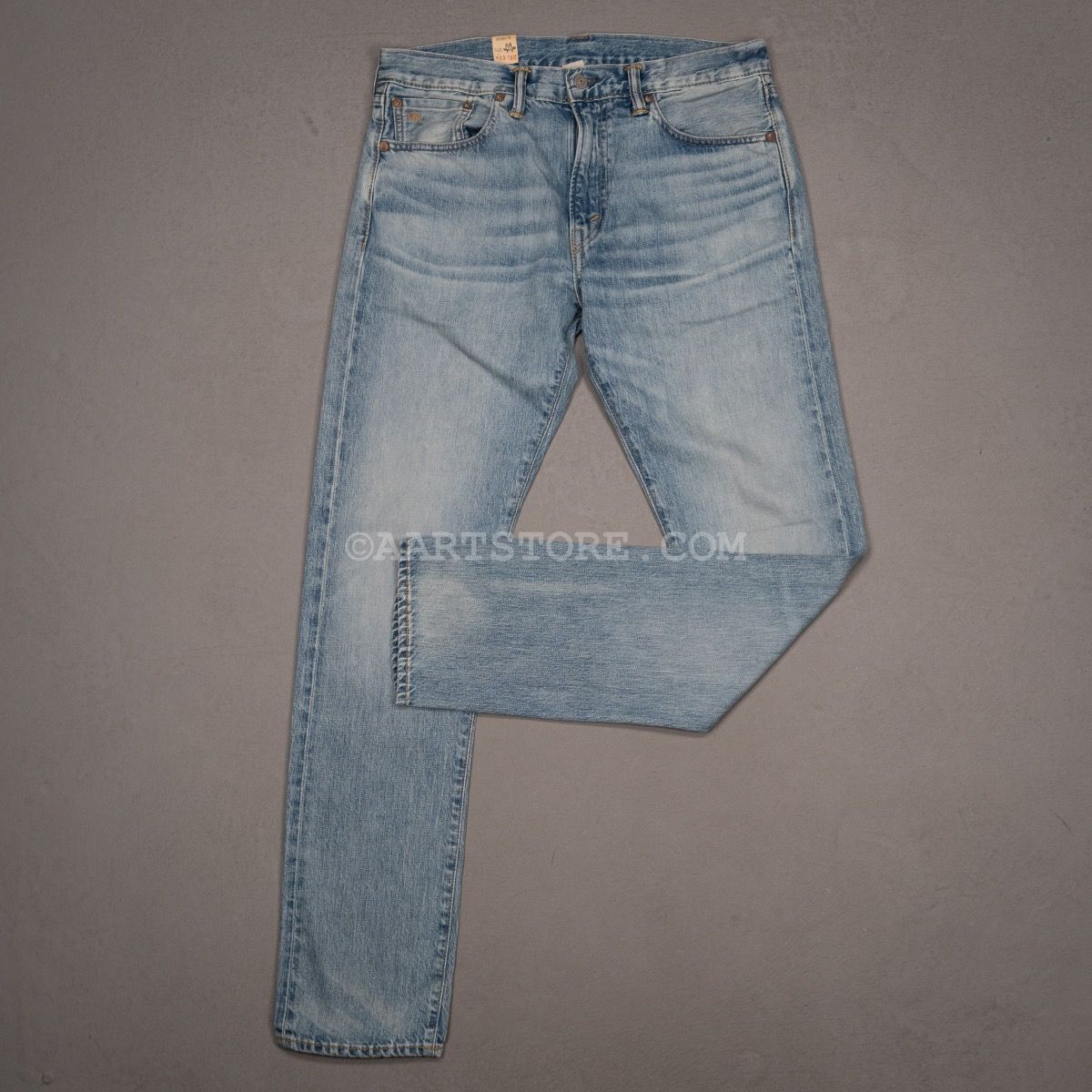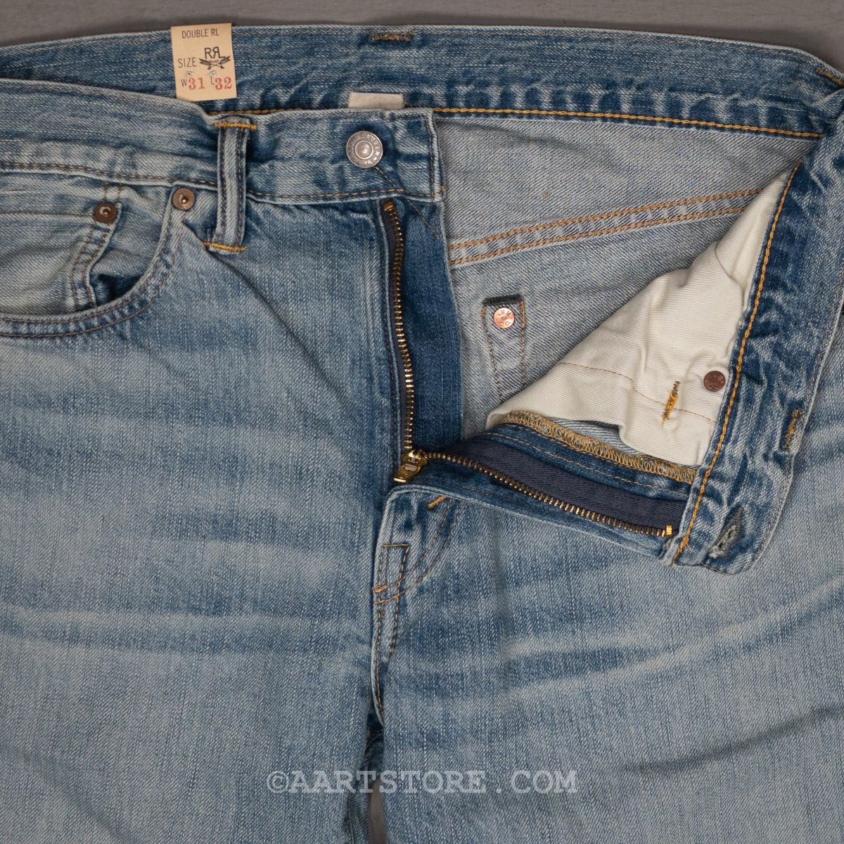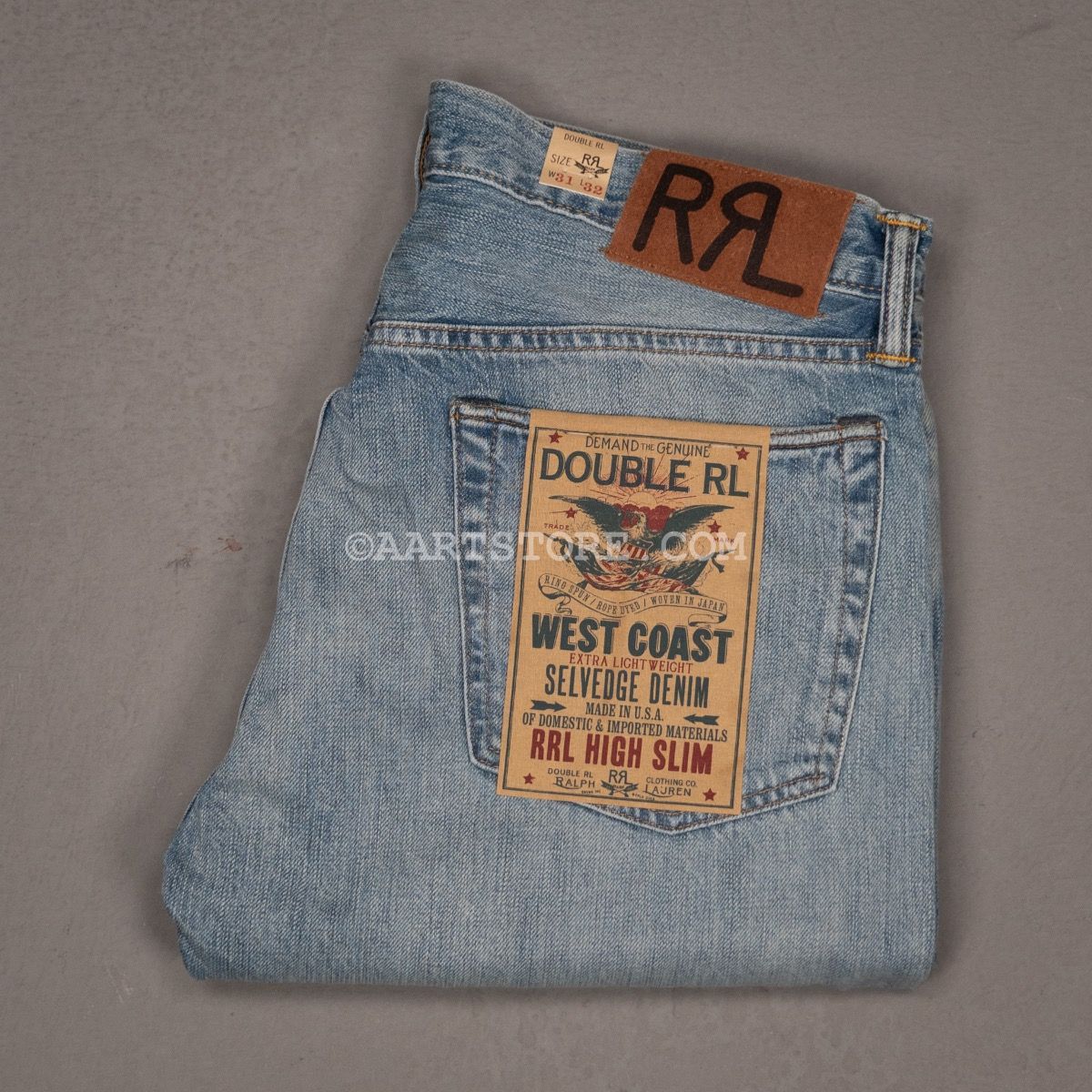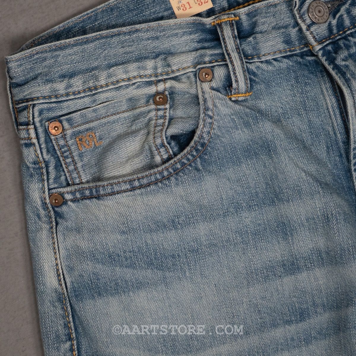 RRL (je zegt Double RL) is een van de meest bijzondere labels in onze collectie. Het hobbyproject van grootmeester Ralph Lauren is vernoemd naar zijn ranch (de Ralph & Ricky Lauren ranch) in Colorado. Het label combineert authentieke Americana met traditionele maakwijzen en doeken. Het wordt in Nederland maar op 3 plekken verkocht en wereldwijd op minder dan 200, echt exclusief. Deze Lawton denim is in de USA gemaakt van een traditionele non stretch denim met selvedge, een echte spijkerbroek, zoals deze horen te zijn. De pasvorm is aan het been, maar niet strak, zeker niet skinny. Deze wassing is extra lang afgewassen of een lichte kleur te bewerkstelligen maar wel met de echte diepte van denim, dat maakt deze broek uniek.