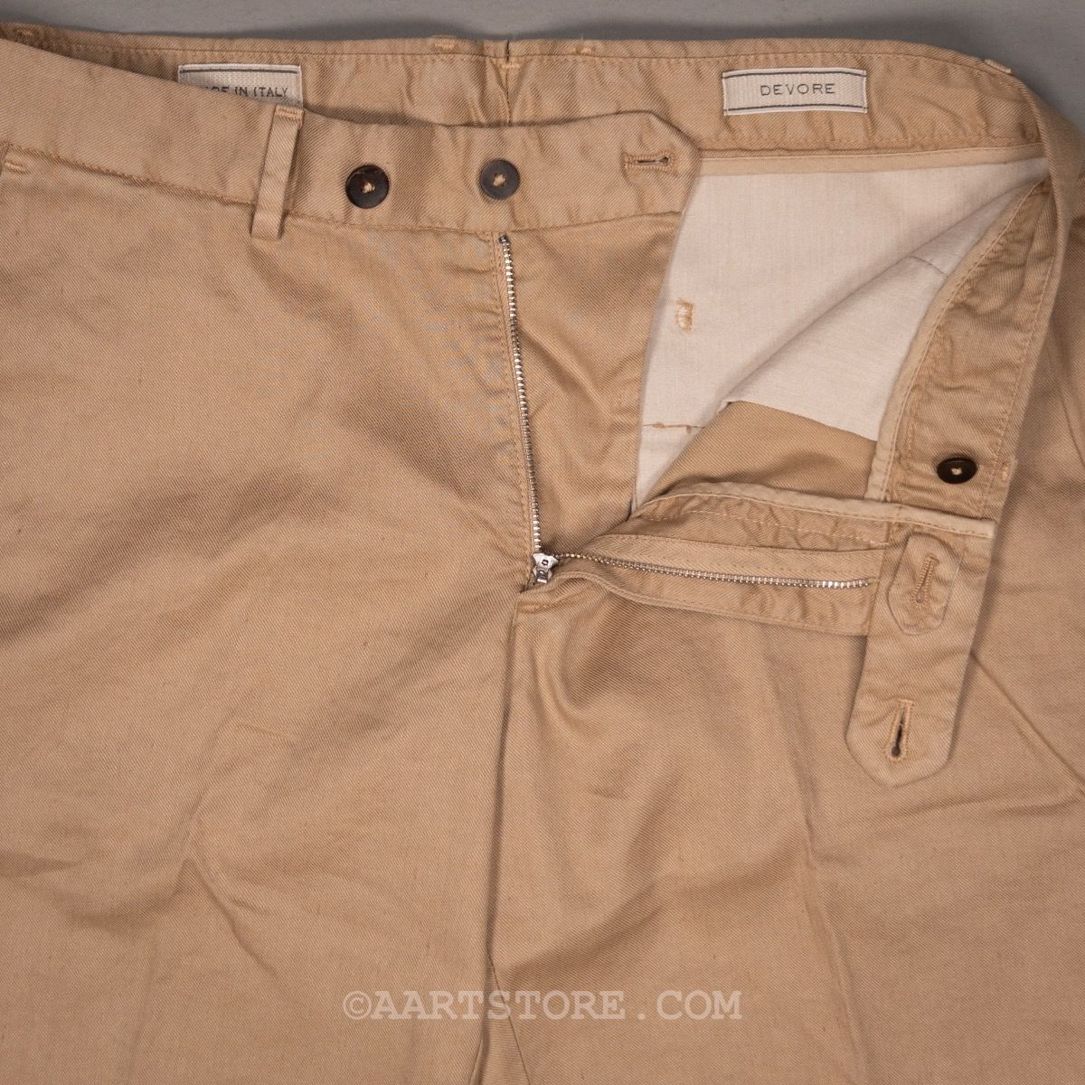 Devore is een Napolitaanse broekenspecialist. Jarenlang maakte dit familiebedrijf vooral broeken voor andere partijen en hierdoor staan ze in de business bekend als een uiterst vakkundige en betrouwbare partner. Sinds een paar jaar maakt Devore hun eigen collectie; bijzonder mooi gemaakte broeken voor een alleszins redelijke prijs. De constructie is prachtig gemaakt van verschillende materialen waardoor een speels effect ontstaat. Deze short is een mix van linnen, katoen en stretch. Een uitgesproken luchtige bermuda die casual elegantie mengt met draagcomfort onder alle omstandigheden. De stof heeft een luxe uitstraling zonder dat het te formeel is, perfect voor een short en perfect is deze bermuda zeker.