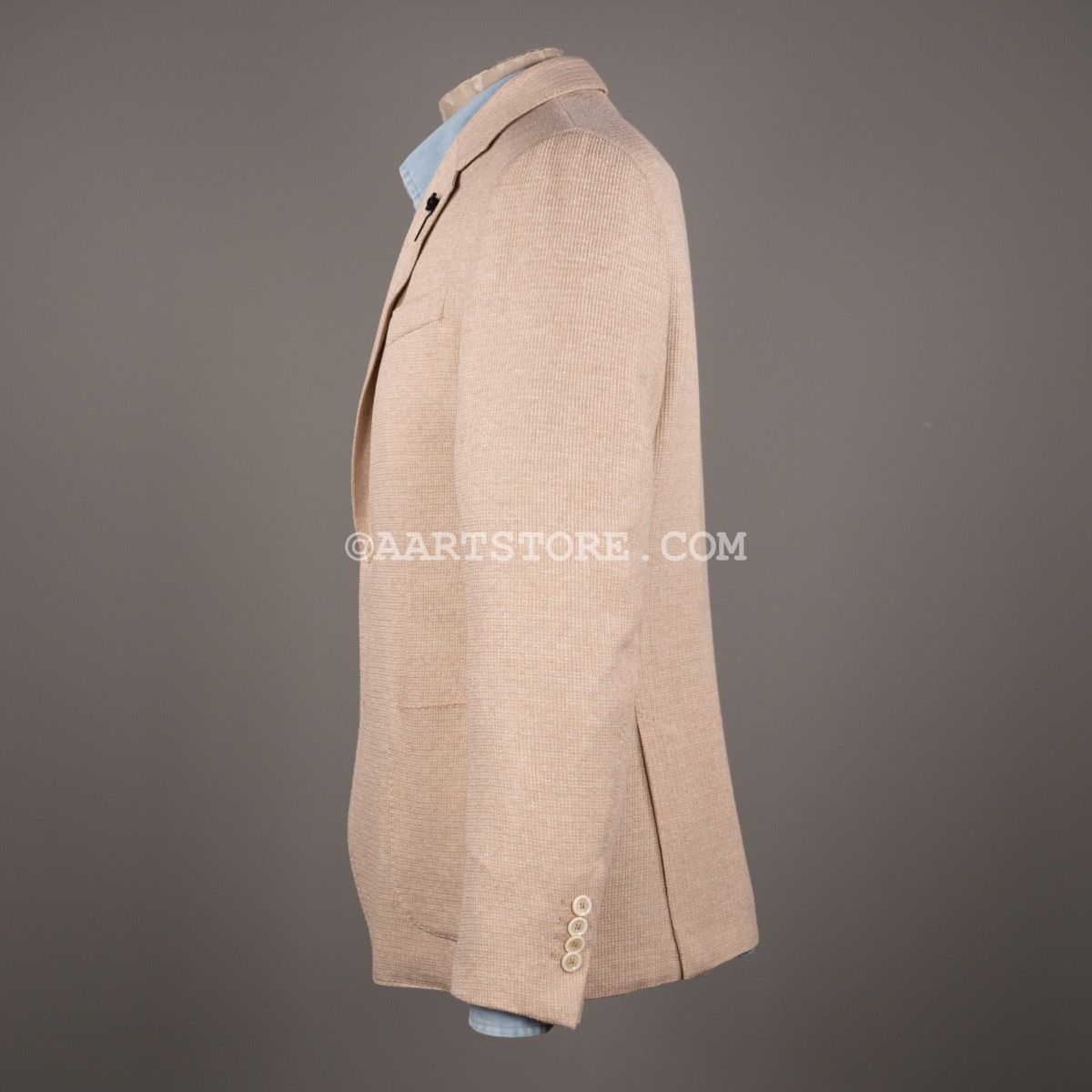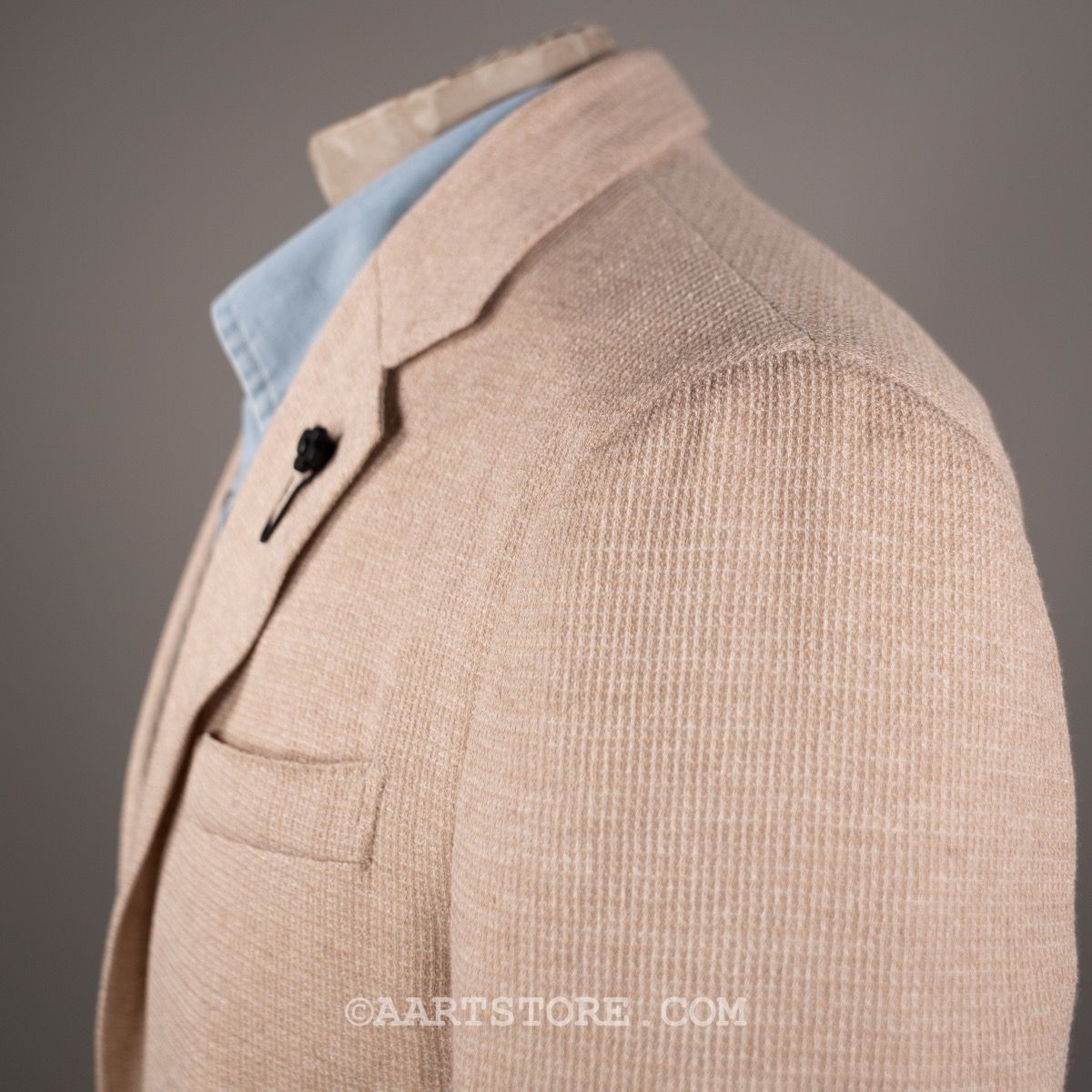 Lardini heeft een heel eigen kijk op de goed geklede man. Jasjes gemaakt met een soort relaxte touch, maar toch wel draagbaar voor meer formele aangelegenheden. Het idee is dat de colberts gemaakt zijn met minimale structuur, maar net voldoende om wel de kleermakers uitstraling te behouden; uniek en prachtig. Het materiaal van dit jasje is een nieuwe ontwikkeling. Litknit wordt gemaakt door een gebreid materiaal te voorzien van een technische backer dat zorgt voor de stevigheid van een normale stof terwijl ook het comfort en de rekbaarheid van het breisel behouden blijft. Dit lichte jasje is ultiem zomers, perfect bij een jeans maar net zo mooi op een witte broek.