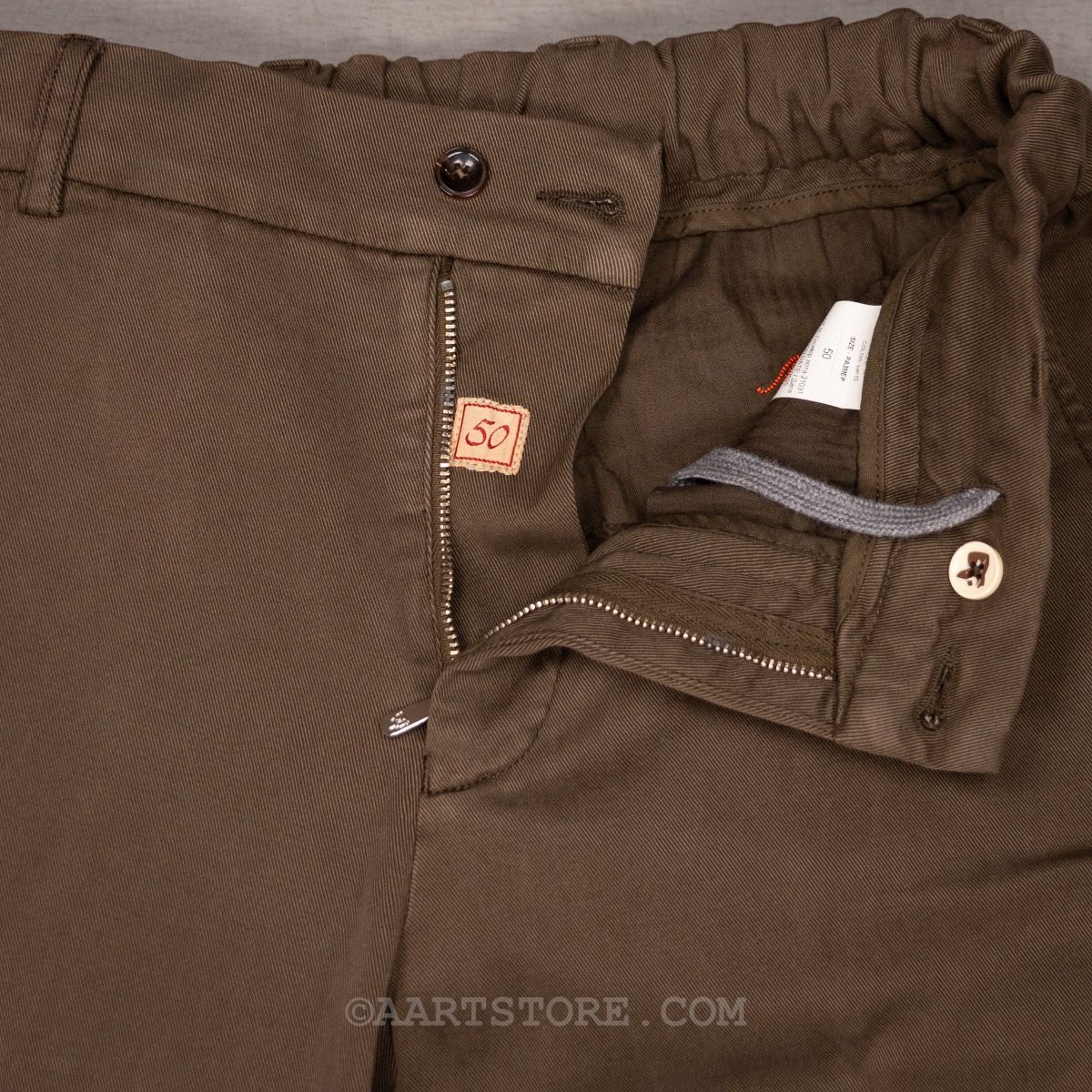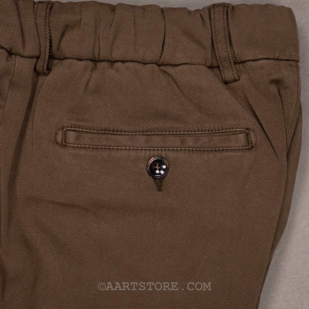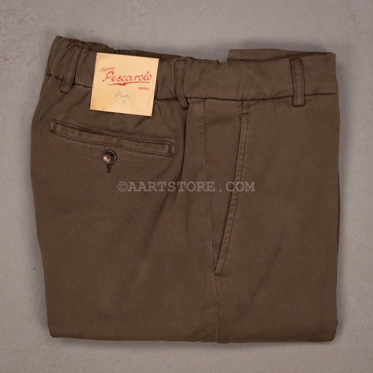 Pescarolo is een Napolitaanse broekenmaker die luxe combineert met een geheel eigen visie op hoe een broek moet zitten en vallen. Een prachtig bedrijf van twee jonge mannen die in staat zijn kunsten en stijlen van voorbije generaties te vertalen naar het nu. De Manu is de kruising tussen een chino en een relaxte drawstring. Een elegant silhouet in combinatie met verfijnde details en onvoorstelbaar draagcomfort. Het voelt als een sweatpant maar oogt als een pantalon. Deze Pescarolo is gemaakt van een twill in katoen met Lyocel en stretch. Het voelt stevig maar niet dik of zwaar. Typisch een broek die je het hele jaar kunt dragen; onder een jasje, maar net zo mooi bij een luxe (col)trui.