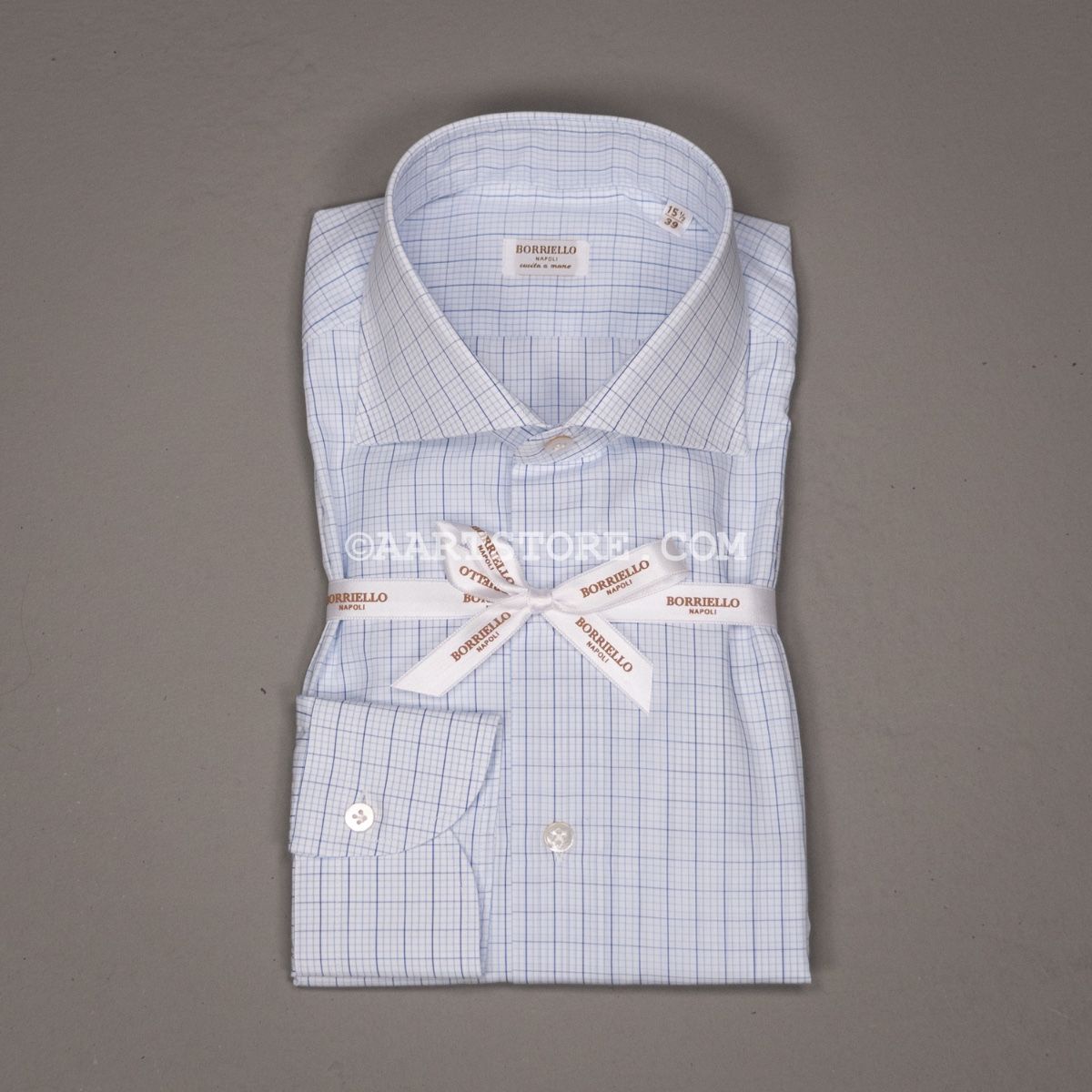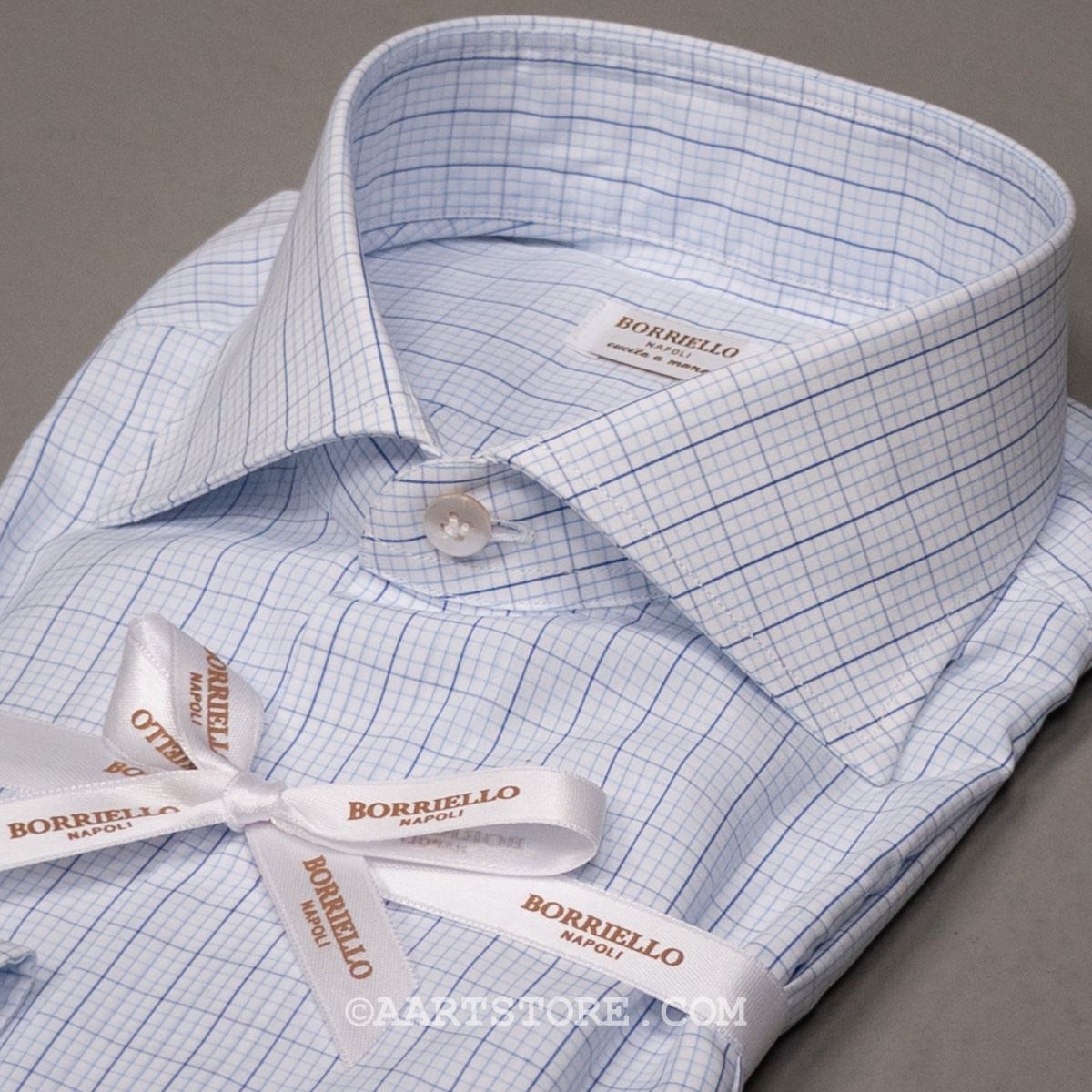 Borriello is een vakkundige shirtmaker uit Napels. De fijne stitching, de parelmoeren knopen en natuurlijk de pasvorm maken het een heerlijk shirt. De combinatie van een traditionele, hand gestikte maakwijze met rijke stoffen maken het een bijzonder shirt en een perfecte manier om kennis te maken met de shirts volgens de Napolitaanse school. De Cahier check heeft -zoals de naam doet vermoeden een subtiel ruit design. Mooi en rijk maar toch een universeel inzetbaar hemd; het mooi bij een effen pak, met een das, maar kan ook perfect bij een blazer of een dun truitje.