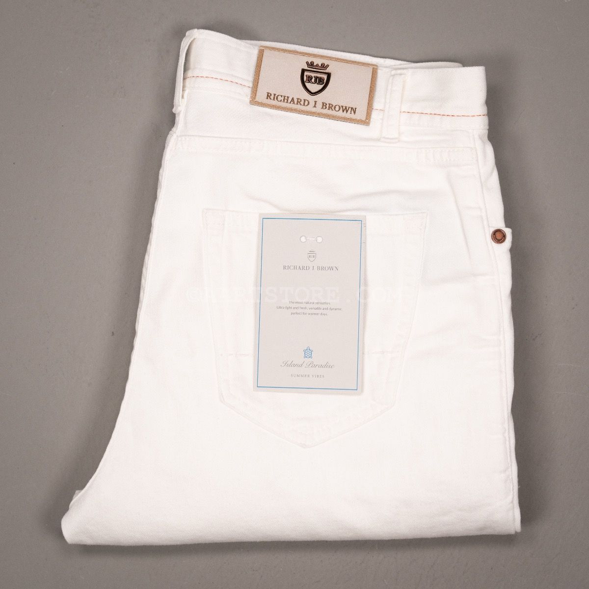 Richard J. Brown is ons favoriete jeanslabel. De toewijding aan kwaliteit en detail maakt het simpelweg de mooiste broek op de markt. Luxe denim, in de zachtste doeken en een pasvorm die de rest overstijgt. De Milano is een nieuwe pasvorm met iets meer wijdte op het bovenbeen en een hogere lijfhoogte, maar wel in combinatie met een slanke voetwijdte, de trend in jeans. De Paradiso is een bull denim, een authentieke jeans stof maar dan in kleur. Deze kwaliteit is een mix van katoen, Lyocel en linnen, dun, lichtgewicht, stretchy, boterzacht en dus extreem comfortabel. Dit is waarschijnlijk de lekkerste broek die je komende zomer kan dragen.