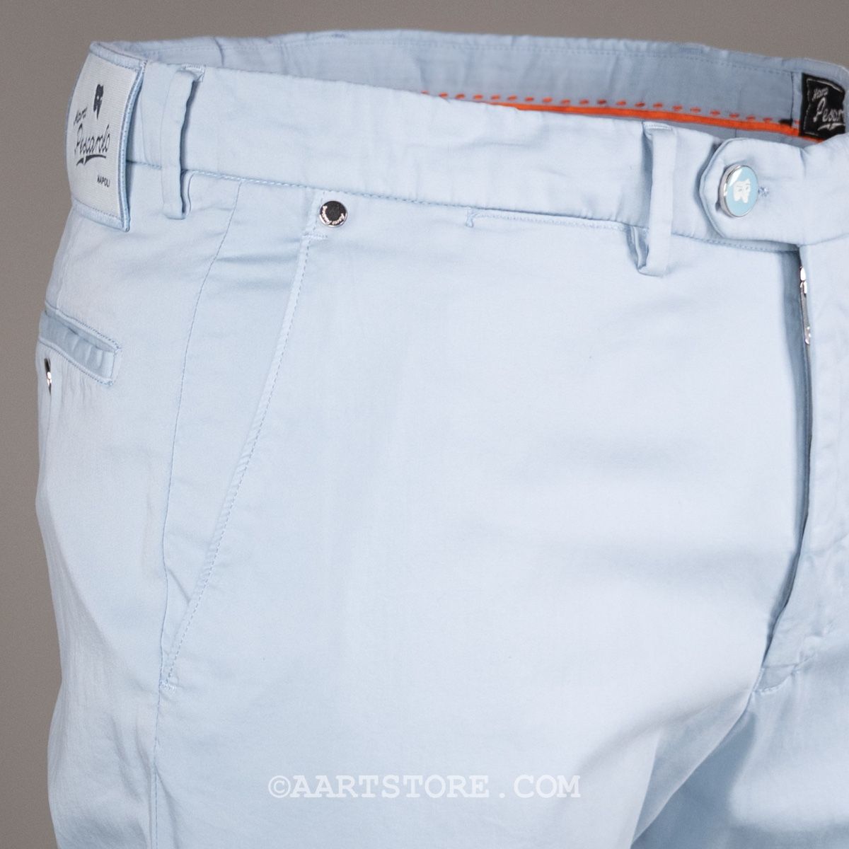 Pescarolo is een Napolitaanse broekenmaker die luxe combineert met een geheel eigen visie op hoe een broek moet zitten en vallen. Een prachtig bedrijf van twee jonge mannen die in staat zijn kunsten en stijlen van voorbije generaties te vertalen naar het nu. De New York is weer (ze verzinnen graag wat nieuws) een nieuw model uit Napels. Het is een een iets gekledere versie van de chino. Gemaakt van een combinatie van katoen en zijde, waardoor deze New York een mooie, elegante val heeft. Deze broek heeft een iets wijdere pasvorm op het bovenbeen maar is niet wijd, comfortabel en chique. Een broek die goed past bij een jasje of met een gebreide polo, voor die chique ontspannen look.