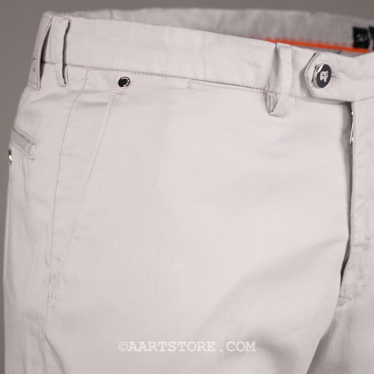Pescarolo is een Napolitaanse broekenmaker die luxe combineert met een geheel eigen visie op hoe een broek moet zitten en vallen. Een prachtig bedrijf van twee jonge mannen die in staat zijn kunsten en stijlen van voorbije generaties te vertalen naar het nu. De New York is weer (ze verzinnen graag wat nieuws) een nieuw model uit Napels. Het is een een iets gekledere versie van de chino. Gemaakt van een combinatie van katoen en zijde, waardoor deze New York een mooie, elegante val heeft. Deze broek heeft een iets wijdere pasvorm op het bovenbeen maar is niet wijd, comfortabel en chique. Een broek die goed past bij een jasje of met een gebreide polo, voor die chique ontspannen look.