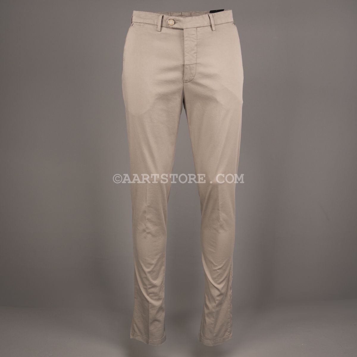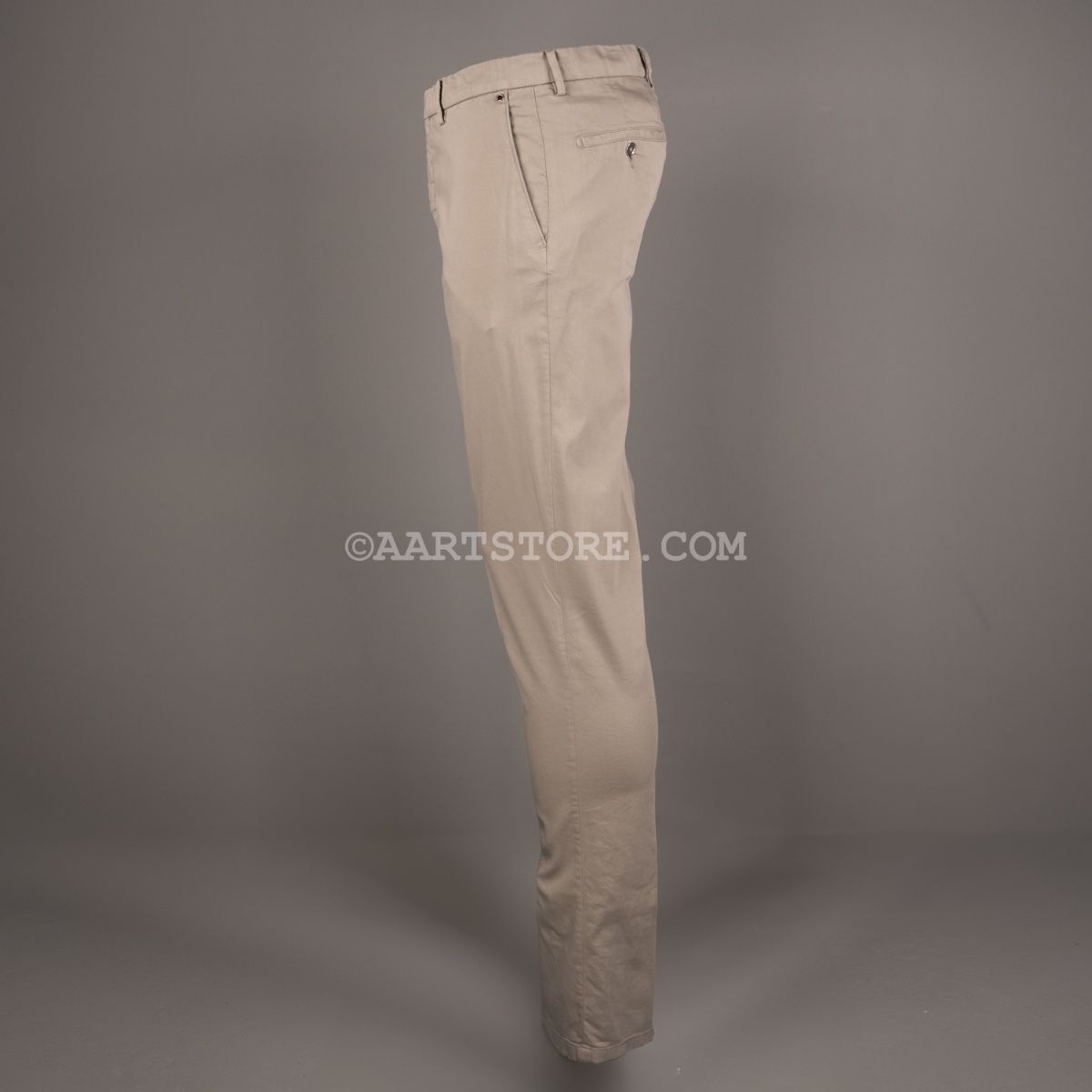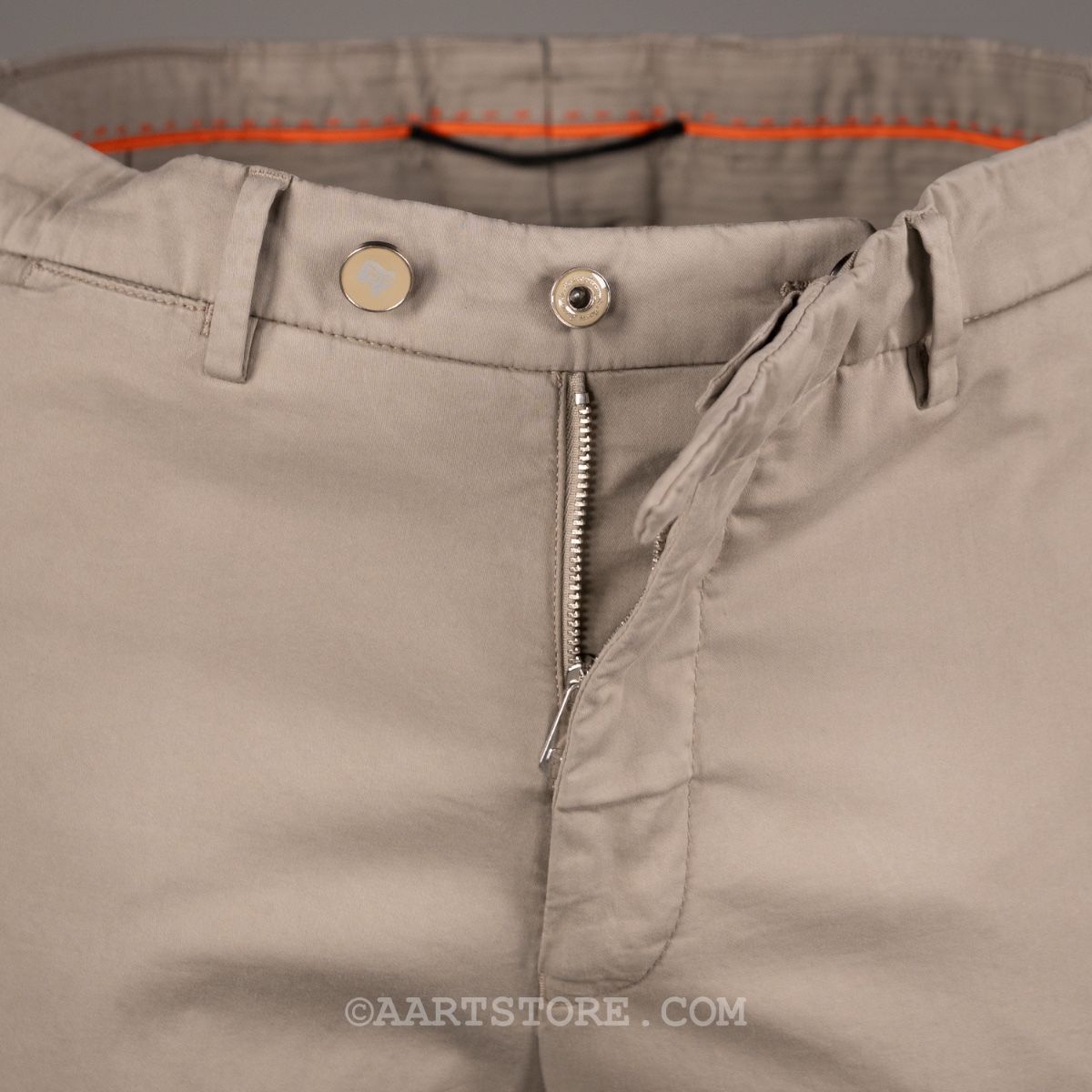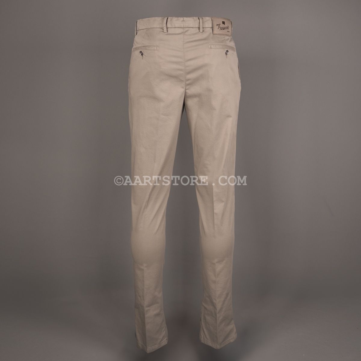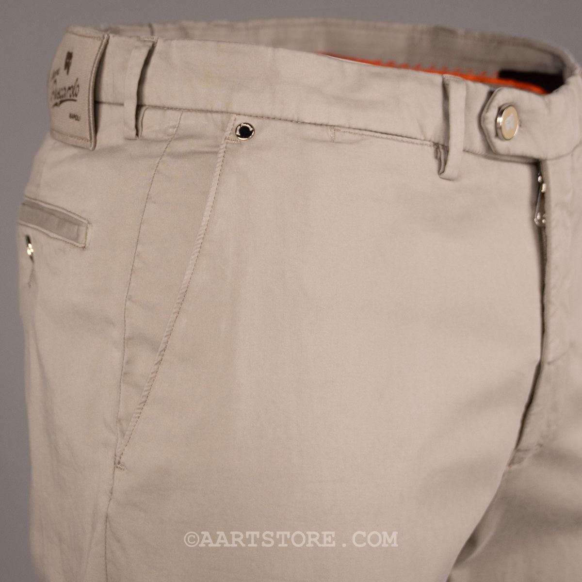 Pescarolo is een Napolitaanse broekenmaker die luxe combineert met een geheel eigen visie op hoe een broek moet zitten en vallen. Een prachtig bedrijf van twee jonge mannen die in staat zijn kunsten en stijlen van voorbije generaties te vertalen naar het nu. De New York is weer (ze verzinnen graag wat nieuws) een nieuw model uit Napels. Het is een een iets gekledere versie van de chino. Gemaakt van een combinatie van katoen en zijde, waardoor deze New York een mooie, elegante val heeft. Deze broek heeft een iets wijdere pasvorm op het bovenbeen maar is niet wijd, comfortabel en chique. Een broek die goed past bij een jasje of met een gebreide polo, voor die chique ontspannen look.