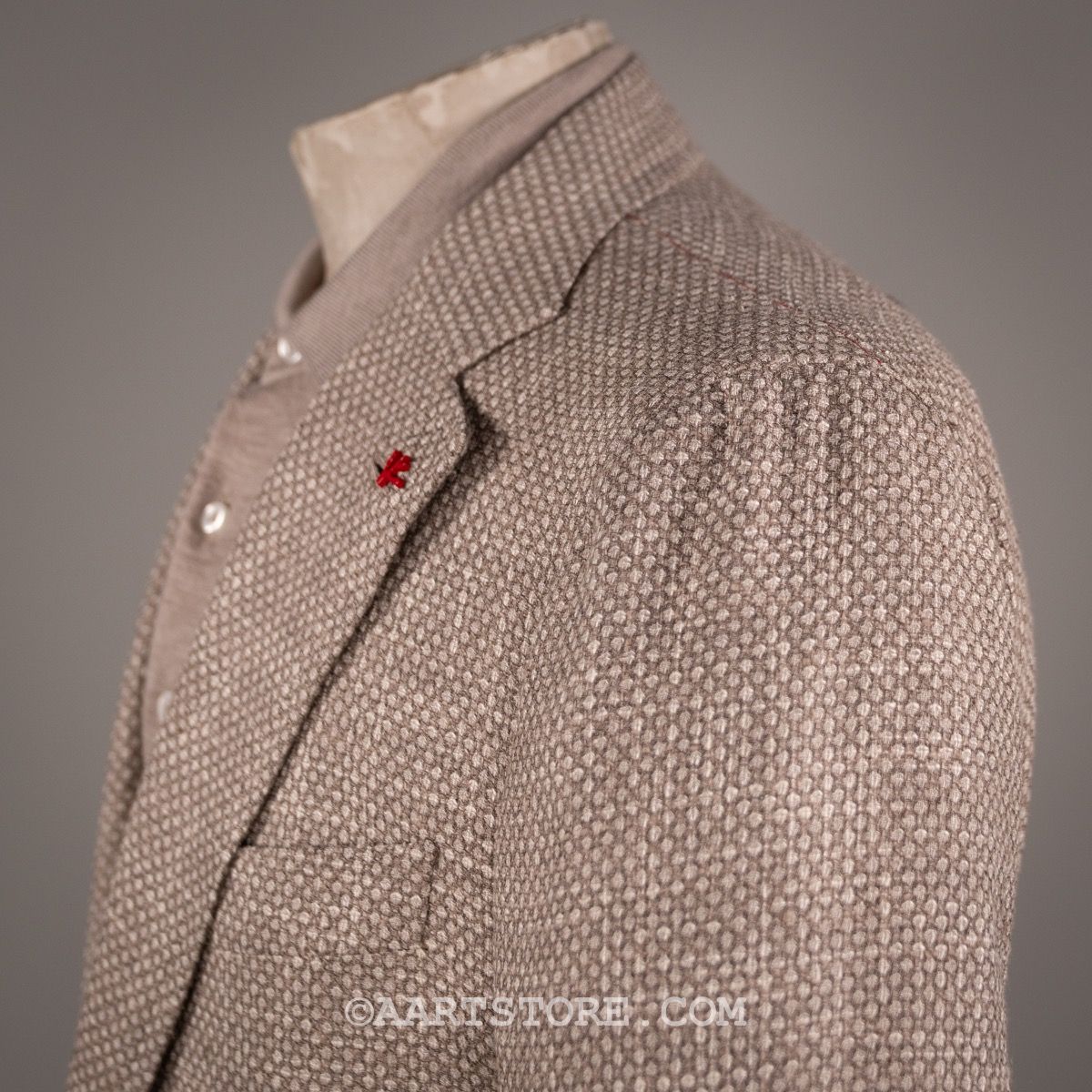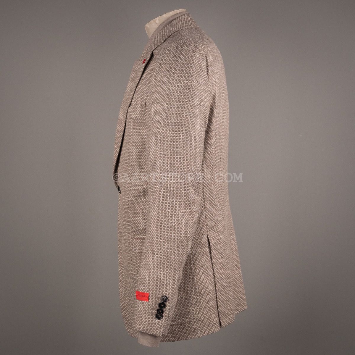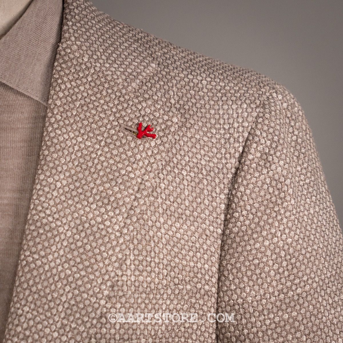 Isaia is synoniem met de absolute top in Napolitaanse kleermakerskunst. De mooist materialen en heel veel handwerk maken het unieke stuks die je als drager omarmen en verwennen. De pakken en jasjes van dit Iconische Napolitaanse merk worden helemaal met de hand gemaakt en dat zie en voel je. De pasvorm is aan het lichaam gesneden, maar het voelt nooit belemmerend of zwaar. De ware kunst zit in het draagcomfort in combinatie met de elegante pasvorm. Dit zomerjasje combineert een iets grovere structuur met een heel subtiel spel van kleuren, hierdoor is het niet saai maar wel heel draagbaar. Dit pauwenoog motief laat zich uitstekend combineren met een denim en een paar sneakers, voor de dress casual look.