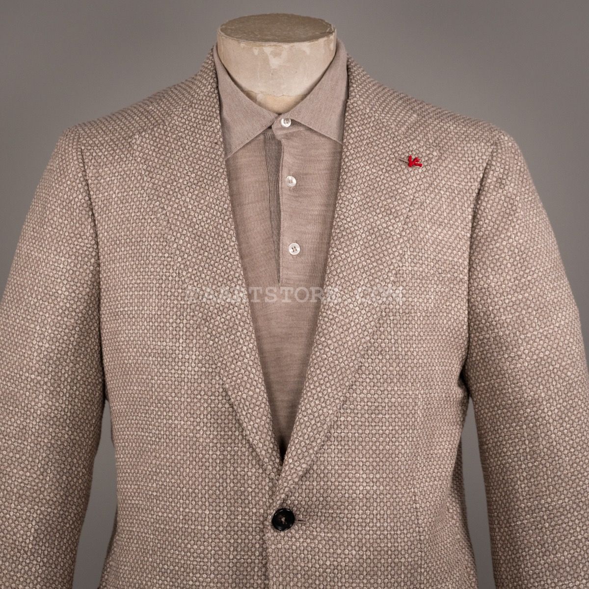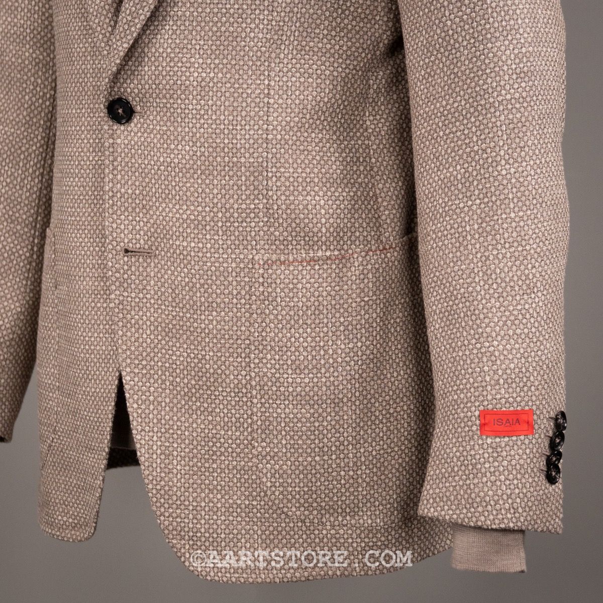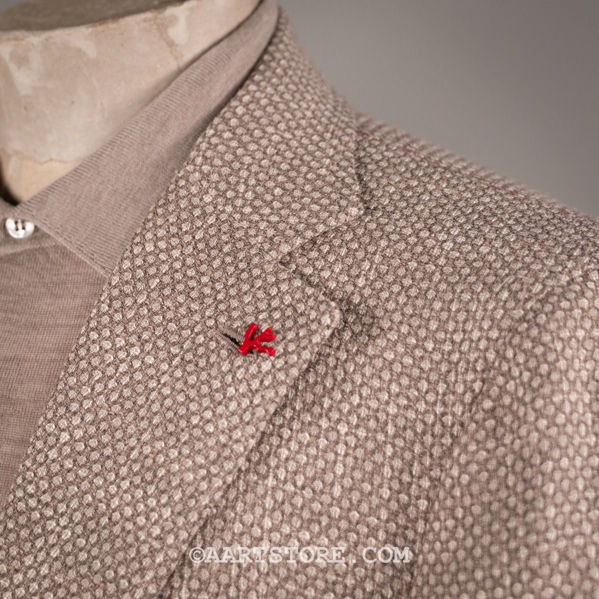 Isaia is synoniem met de absolute top in Napolitaanse kleermakerskunst. De mooist materialen en heel veel handwerk maken het unieke stuks die je als drager omarmen en verwennen. De pakken en jasjes van dit Iconische Napolitaanse merk worden helemaal met de hand gemaakt en dat zie en voel je. De pasvorm is aan het lichaam gesneden, maar het voelt nooit belemmerend of zwaar. De ware kunst zit in het draagcomfort in combinatie met de elegante pasvorm. Dit zomerjasje combineert een iets grovere structuur met een heel subtiel spel van kleuren, hierdoor is het niet saai maar wel heel draagbaar. Dit pauwenoog motief laat zich uitstekend combineren met een denim en een paar sneakers, voor de dress casual look.