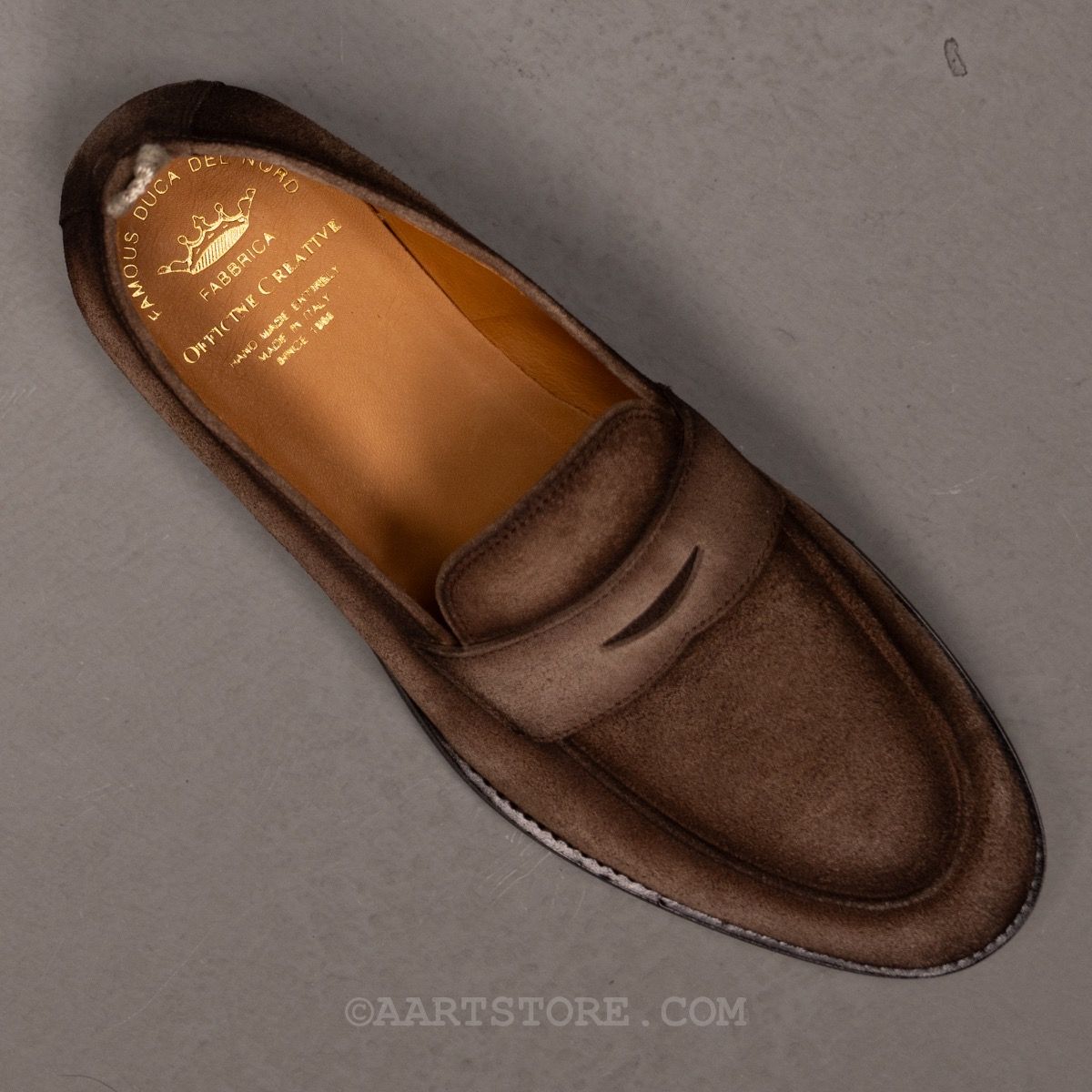 Officine Creative is een Noord-Italiaanse schoenmaker die de dingen op een traditionele manier net anders doet. De schoenen worden met de hand gemaakt op de traditionele (correcte) manier, maar de modellen en de finishing maakt dit juist eigentijds en cool. De Opera is gebaseerd op een geklede loafer maar dan in een moderner, iets meer casual jasje. Gemaakt van fijne ‘cashmire’ suède, een kwaliteit die een rijke uitstraling combineert met zachtheid. Het hand geverfde kleureffect geeft de schoen een casual effect dat perfect past bij denim en zware katoen en dan bij voorkeur in een iets wijdere fit zodat de sok verdwijnt onder de broek.