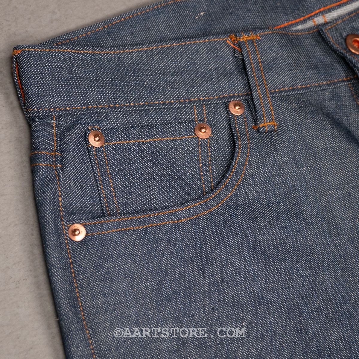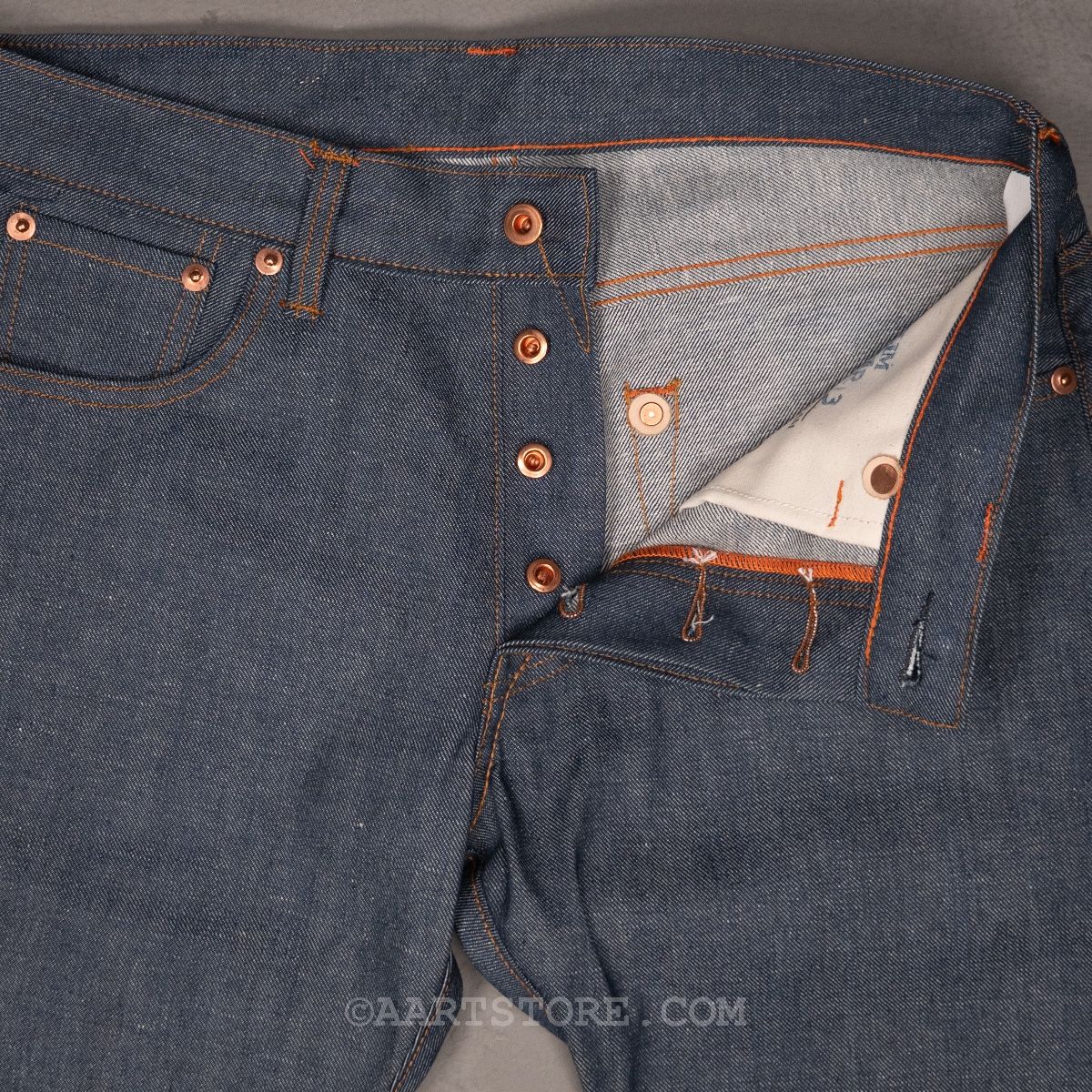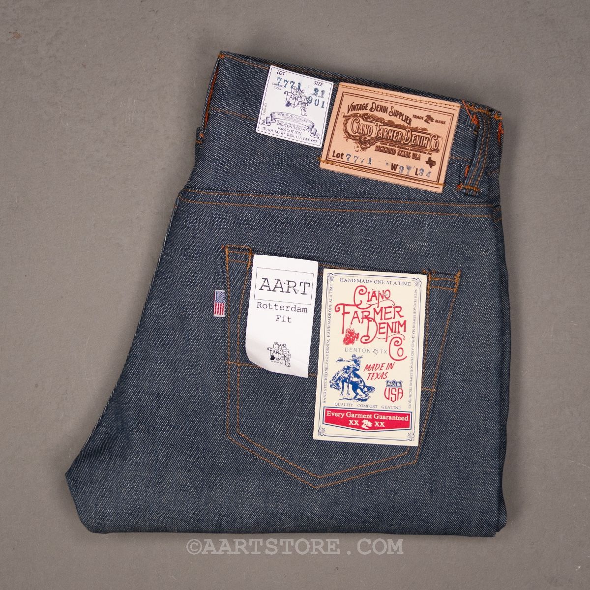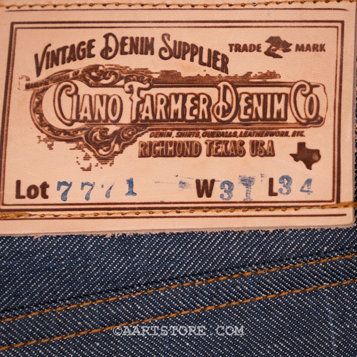 Onze vriend Ciano Farmer maakt jeans zoals 100 jaar gelden in zijn kleine werkplaats in Denton, Texas, USA. Alles aan zijn jeans is handgemaakt met materialen en accessoires die 100% gemaakt zijn in de VS. Hij gebruikt doeken die niet meer gemaakt worden, deadstock rollen echte denim die soms wel 60 jaar oud zijn. De knopen en rivets zijn ook afkomstig van oude voorraden, verzameld uit verlaten fabrieken. Daarmee zijn dit de laatste 100% Amerikaanse jeans, een unieke kans om een stuk draagbare geschiedenis te bezitten. Deze jeans is gemaakt van een 16 OZ Texaanse denim uit een van de laatste denim weverijen van de VS, alweer 30 jaar gesloten. Deze jeans is 100% Amerikaans en daarmee een unieke kans om een stukje draagbare geschiedenis te bezitten en je eigen denim af te wassen en dragen. Een broek die alleen maar mooier wordt, bij elke keer dragen en wassen. NB. Deze stof is volledig ongewassen, dus de broek gaat langzaam afwassen maar ook blauwer worden over tijd. De kleur is blauwgrijs maar kan uiteindelijk afwassen naar echt denim blauw, net afhankelijk van hoe vaak en intens de jeans gewassen wordt.