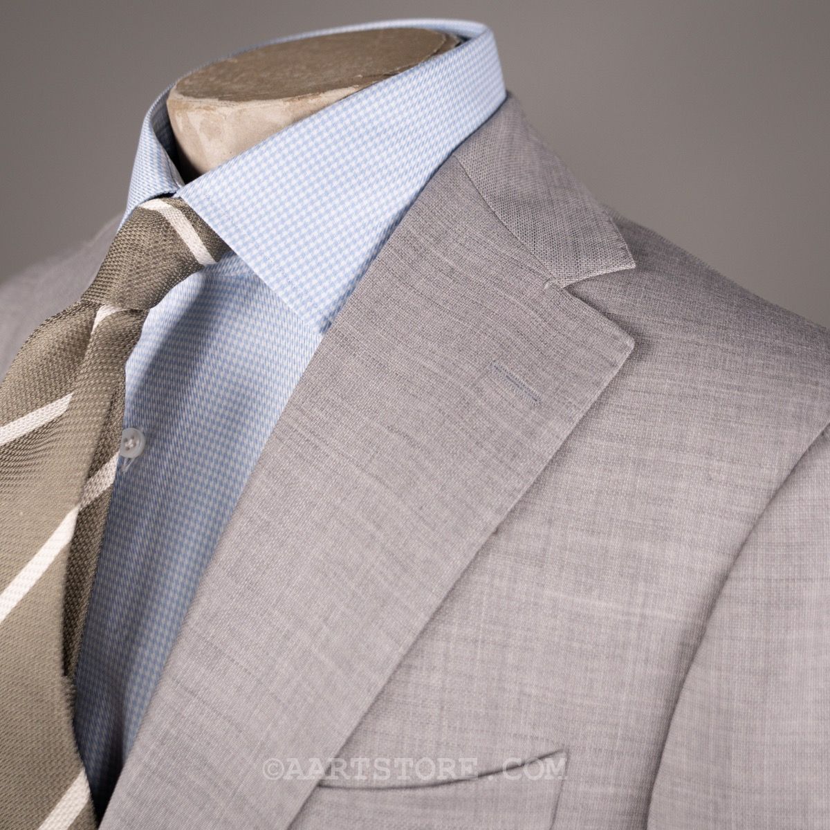 Dit voorjaar brengen we de AART Business lijn terug. Pakken en jasjes met kleermakersdetails en gesneden uit luxe stoffen maar wel voor een realistische prijs. De Preston is ons nieuwe Business pak, gemaakt met een slanke (maar niet slim) pasvorm en een zachte maar correcte schouder. Dit lichtgrijze exemplaar is gemaakt van een stof met een lichte structuur, dat geeft dit pak een iets casual, zomerse uitstraling.