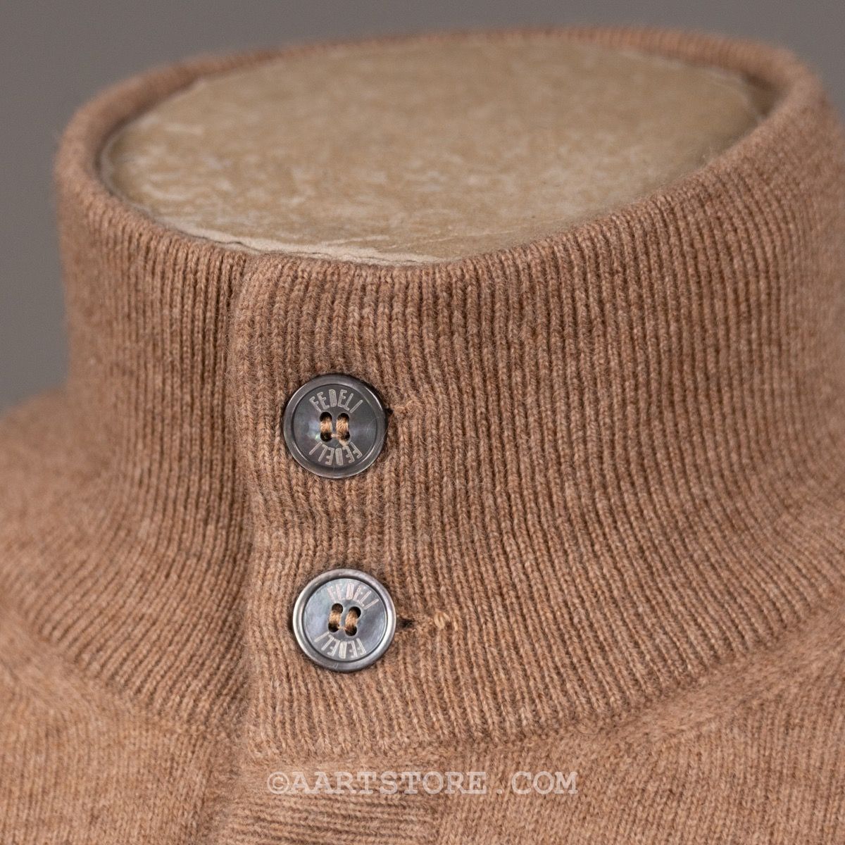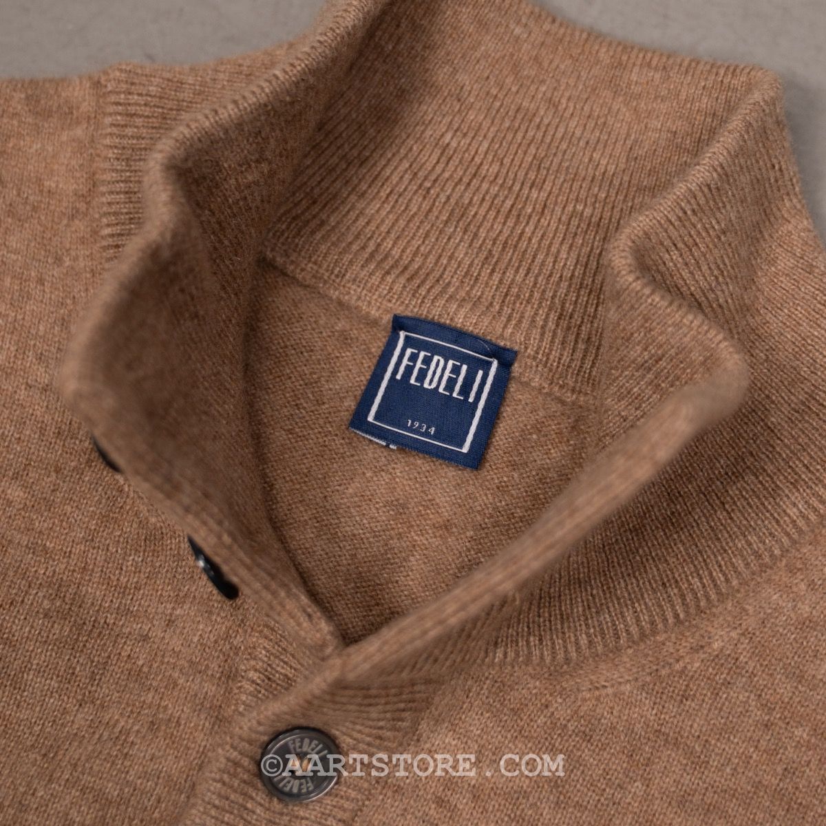 Fedeli staat bekend om hun sublieme breiwerk, het is een van de fijnste knitwear specialisten van Italië. Niet voor niets hebben zowel Zegna als Prada een belang genomen in dit bedrijf om zich te verzekeren van het vakmanschap van dit familiebedrijf. Deze Scirocco heeft een mooie licht staande kraag met knopen. Deze kun je over een T-shirt dragen maar ook -met een extra knoopje open- over een shirt. Gemaakt van 100% cashmere is dit een luxe stuk voor iedere dag.